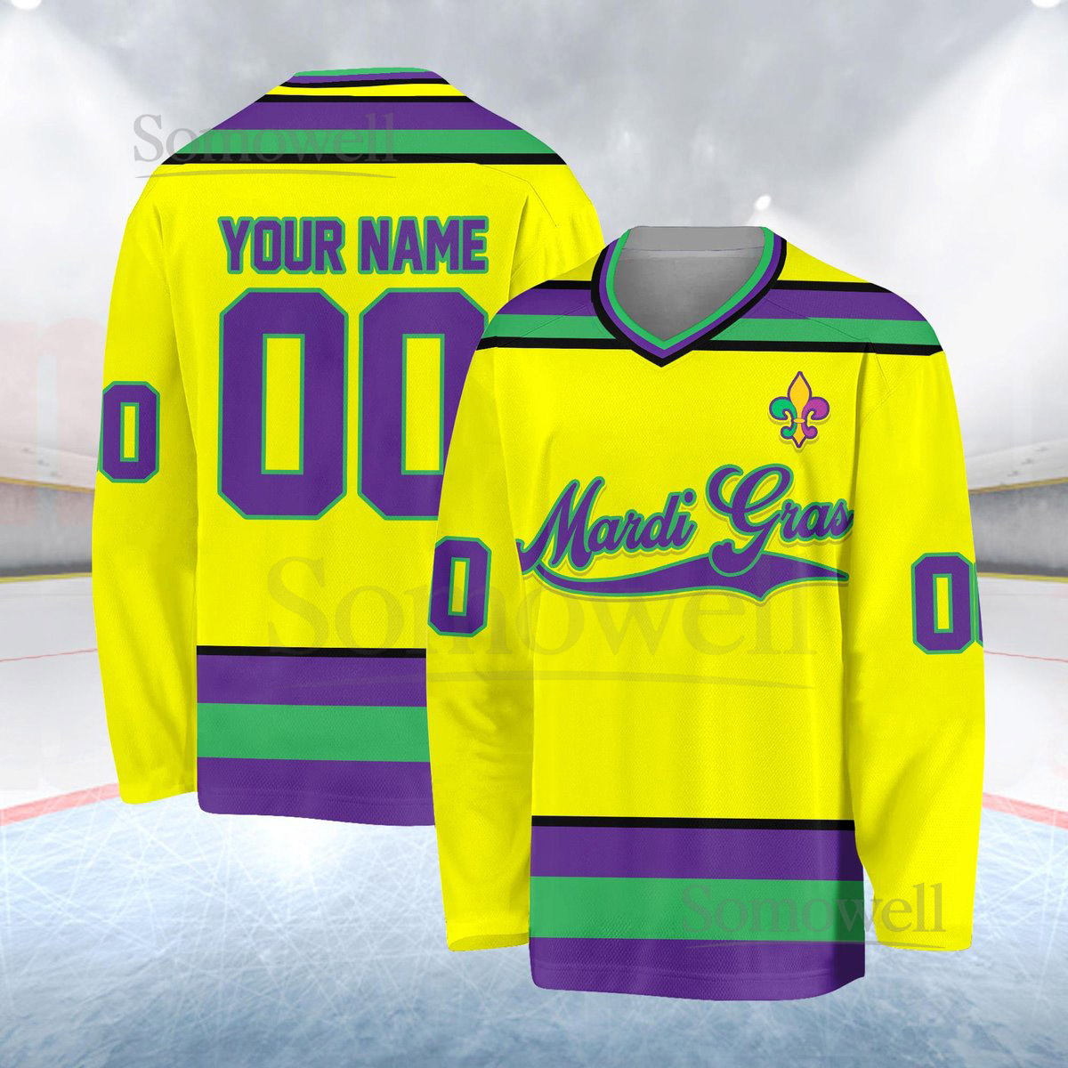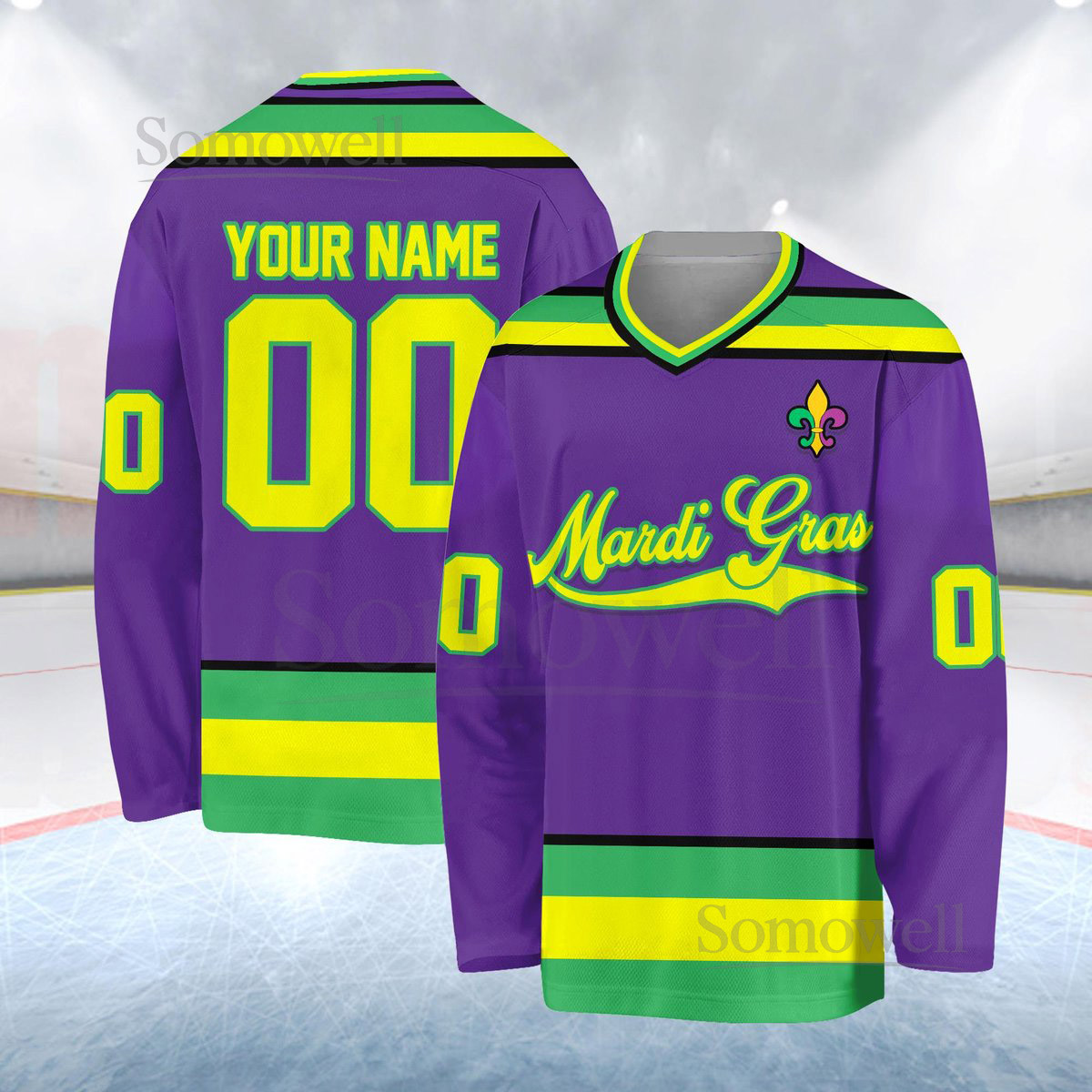Personalized Mardi Gras Hockey Jersey Custom Name Mardi Gras Hockey Jersey Hockey Jersey Uniform For Hockey Fans Mardi Gras Outfit_273
