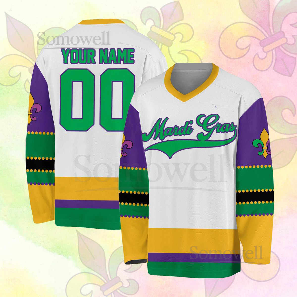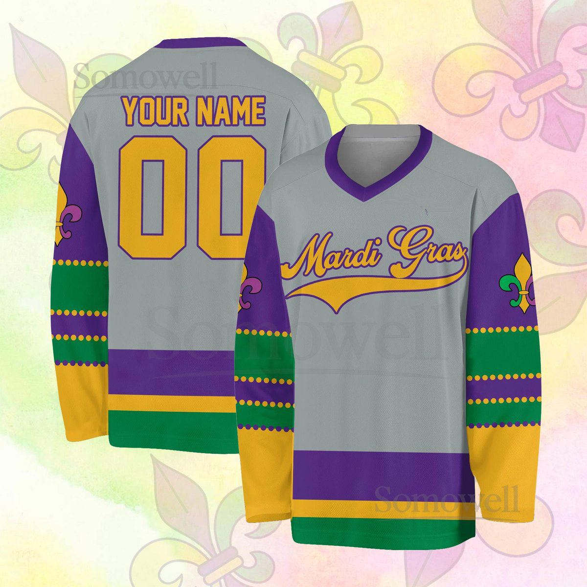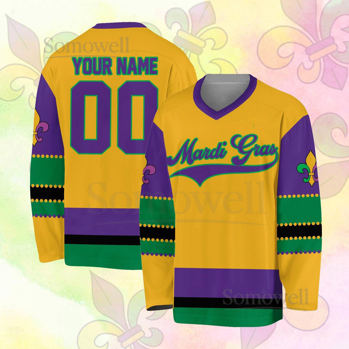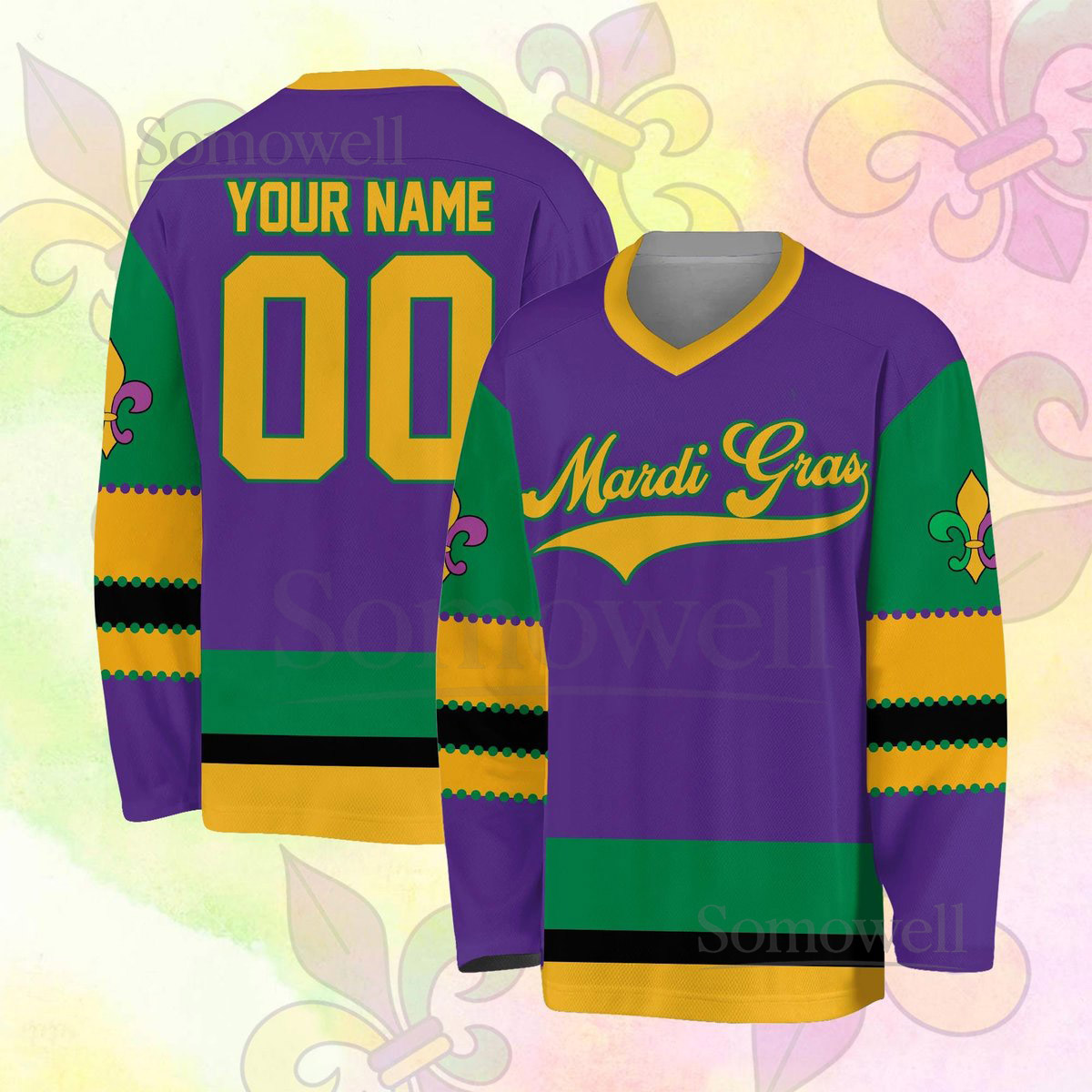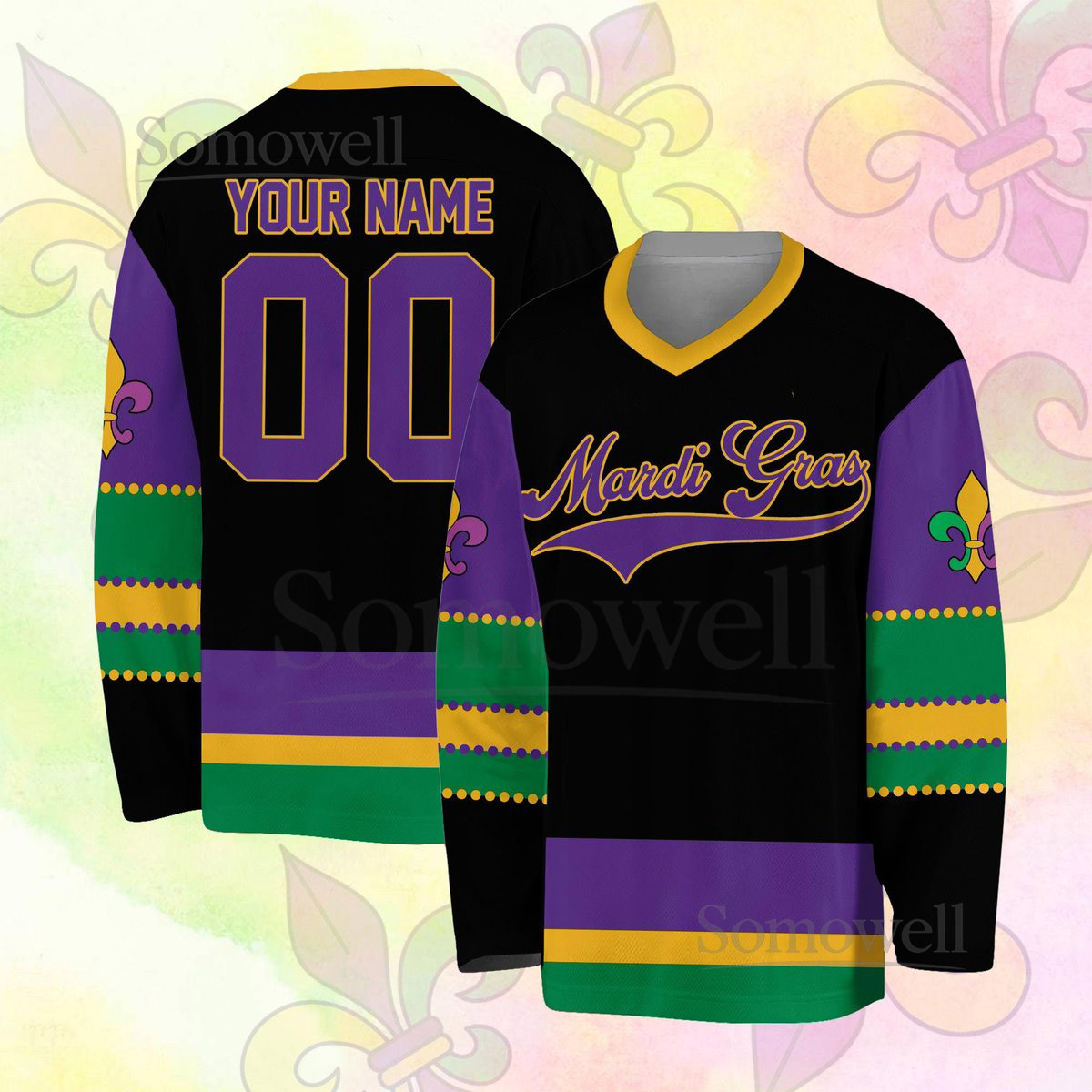 Personalized Mardi Gras Hockey Jersey Custom Name Mardi Gras Hockey Jersey Hockey Jersey Uniform For Hockey Fans Mardi Gras Outfit_276