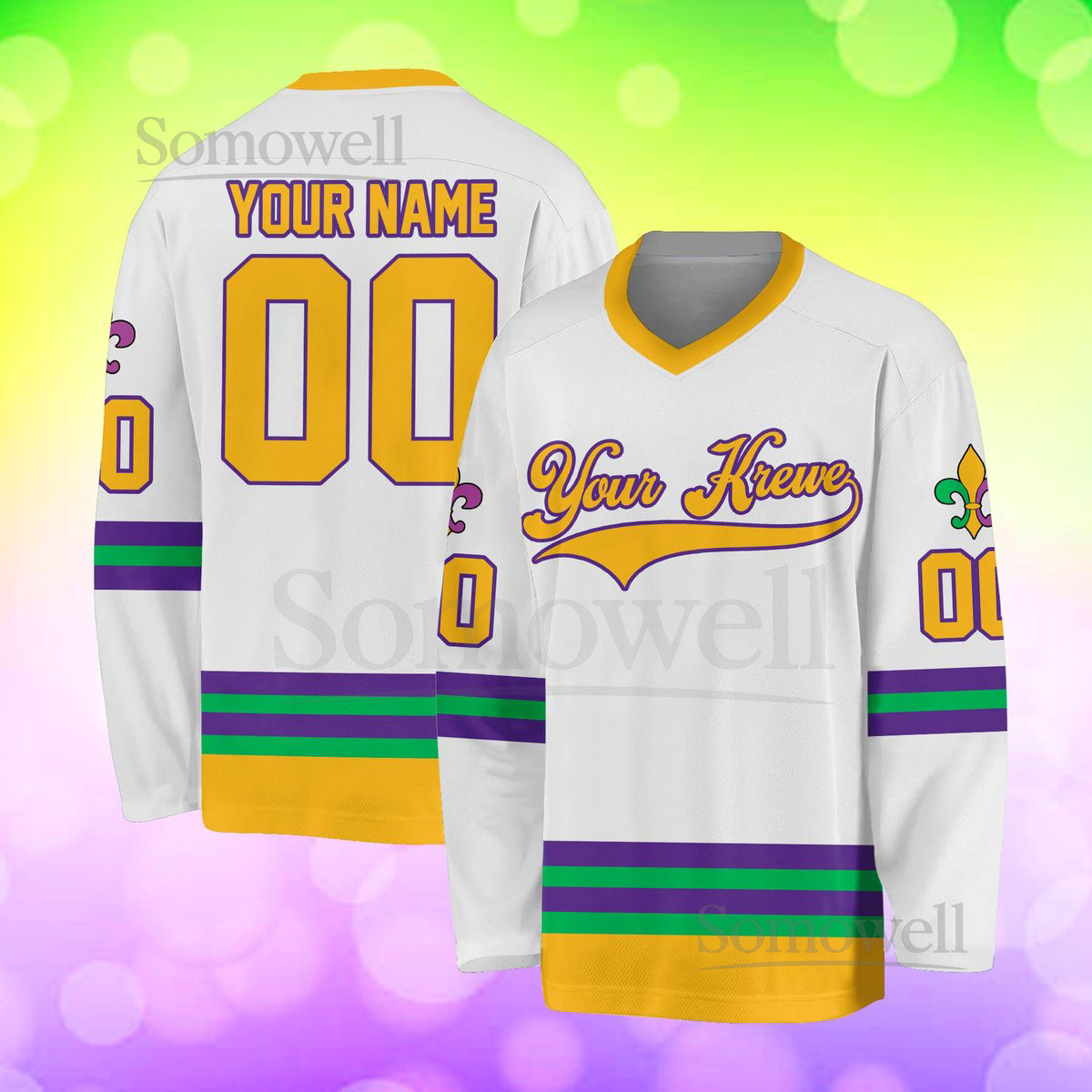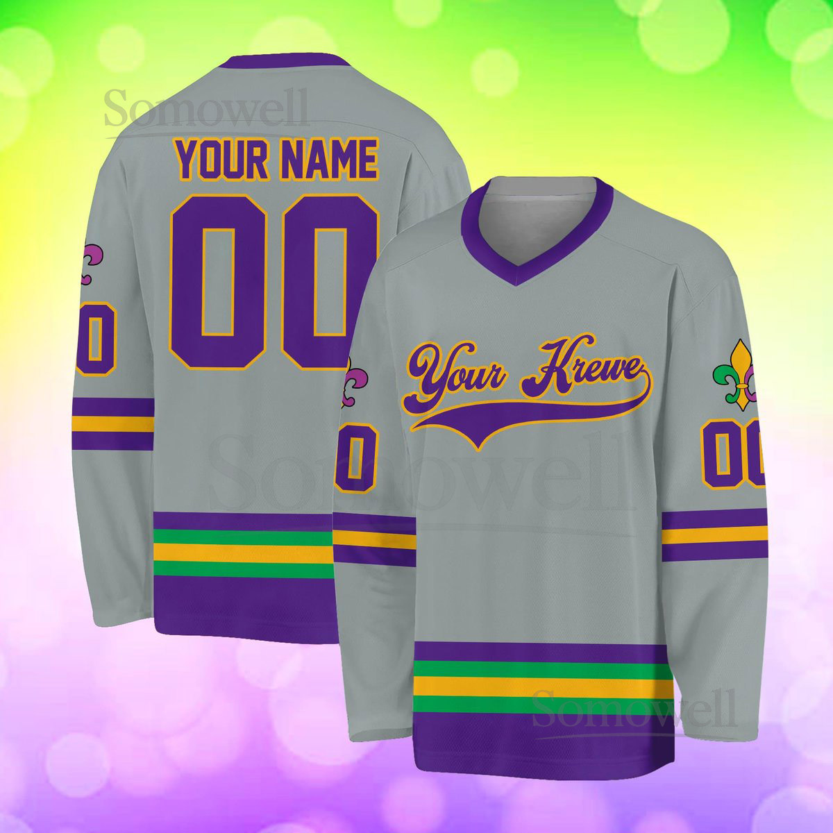 Personalized Mardi Gras Hockey Jersey Custom Your Krewe Name Number Hockey Jersey Hockey Jersey Uniform For Hockey Fans Mardi Gras Outfit_280