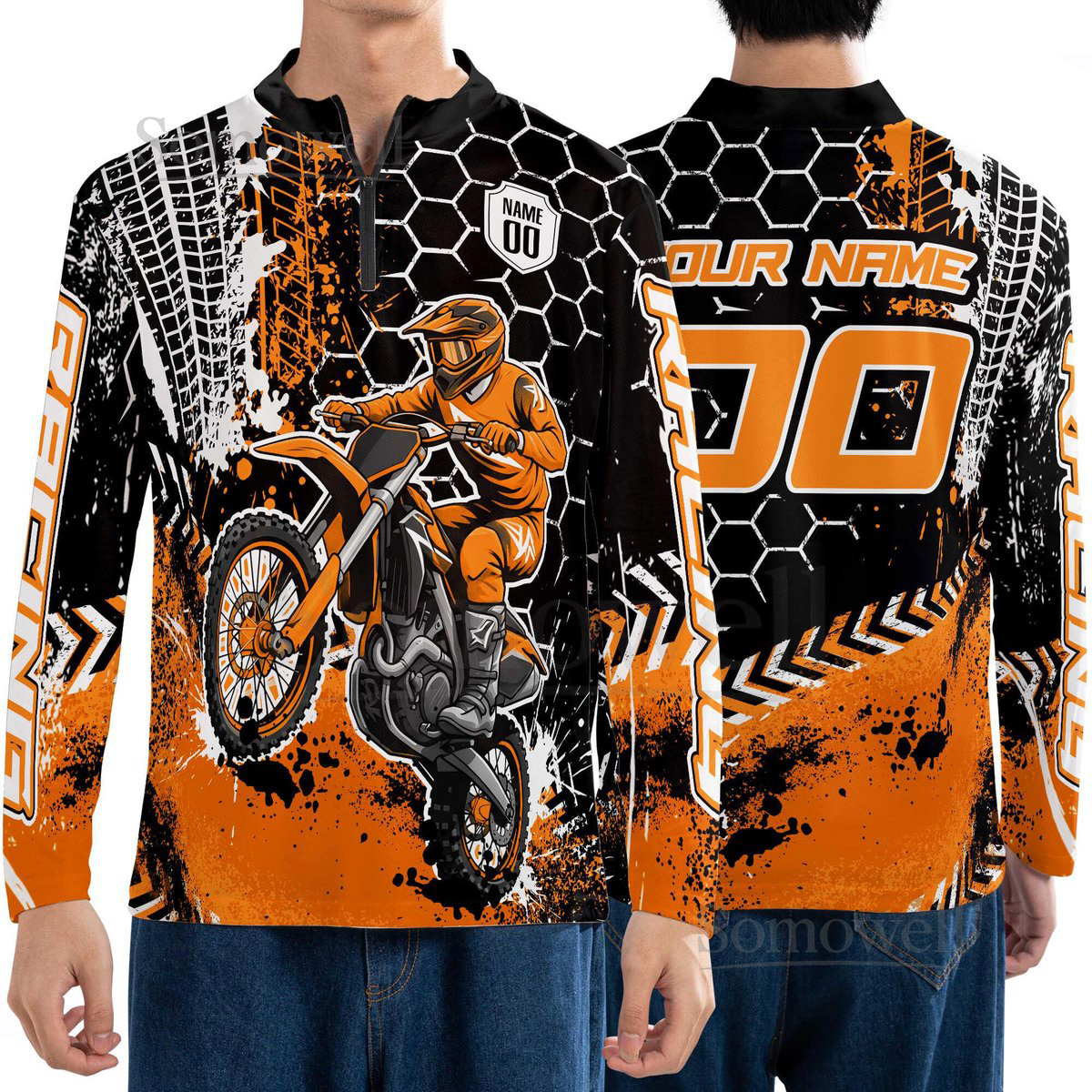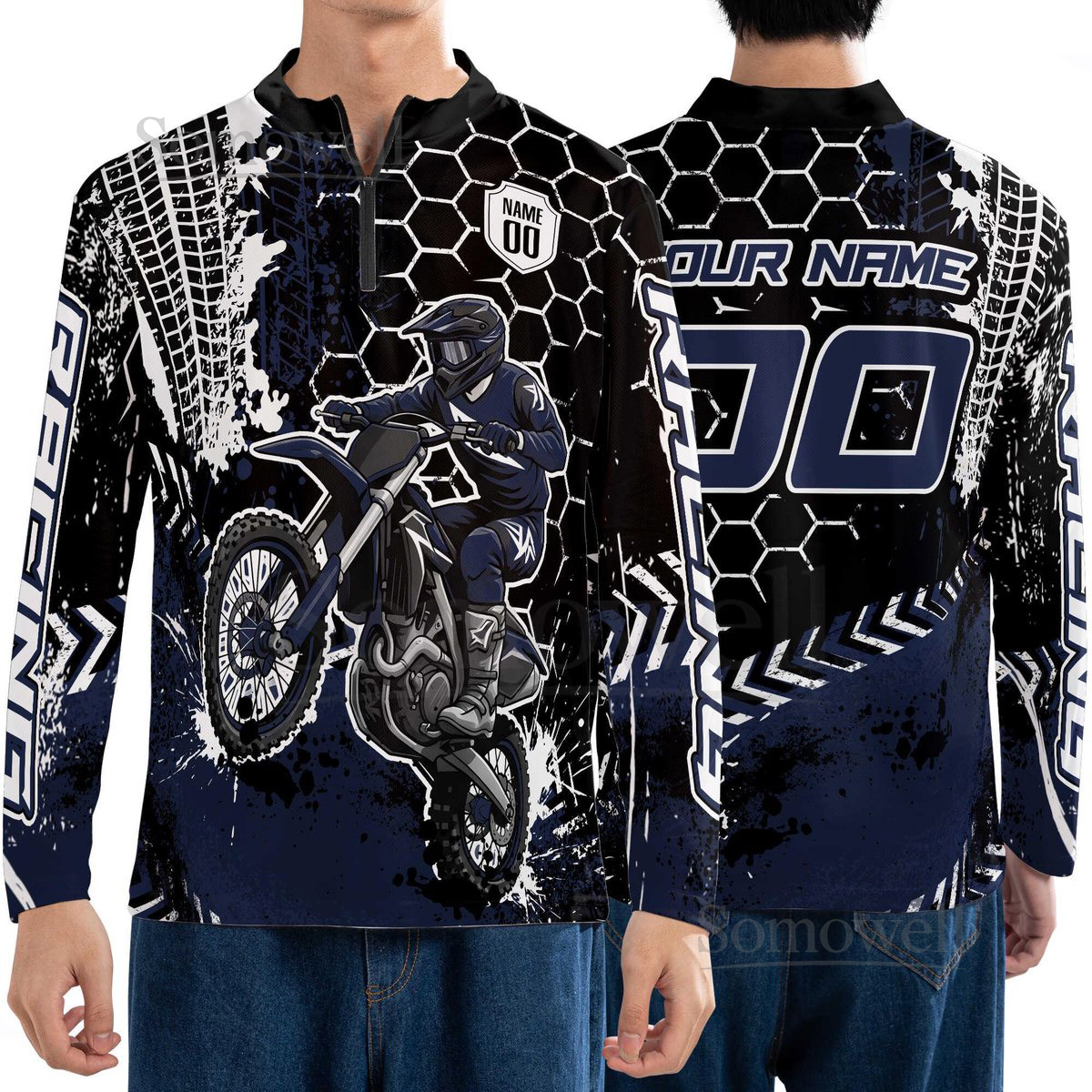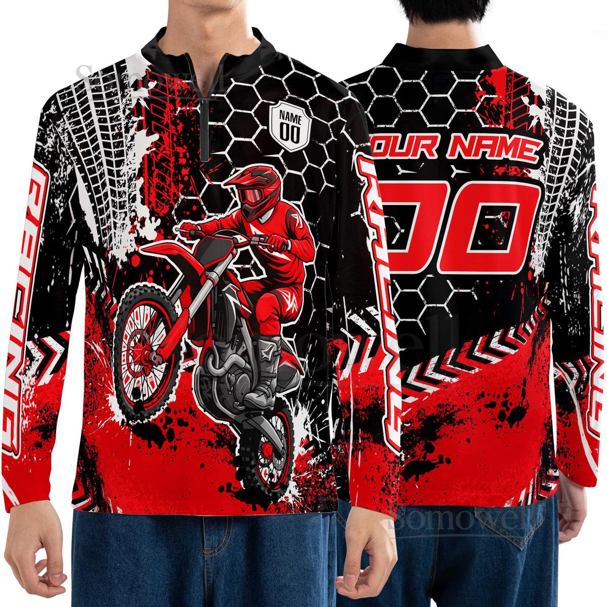 Personalized Motocross Zip Jersey Custom Dirt Bike Racing Shirt Long Sleeve Zip Jersey with Name Number Biker Gear for Riders Team_323