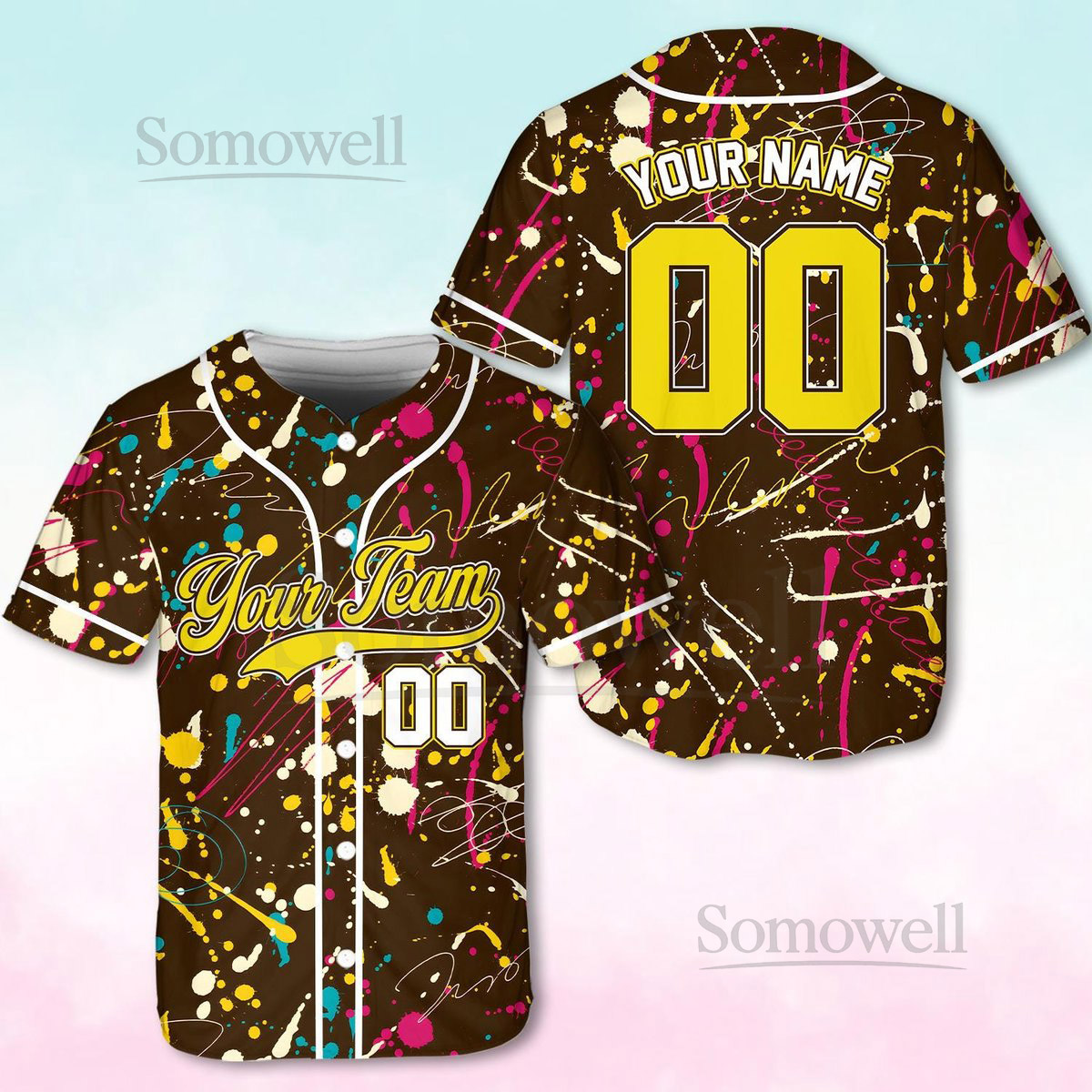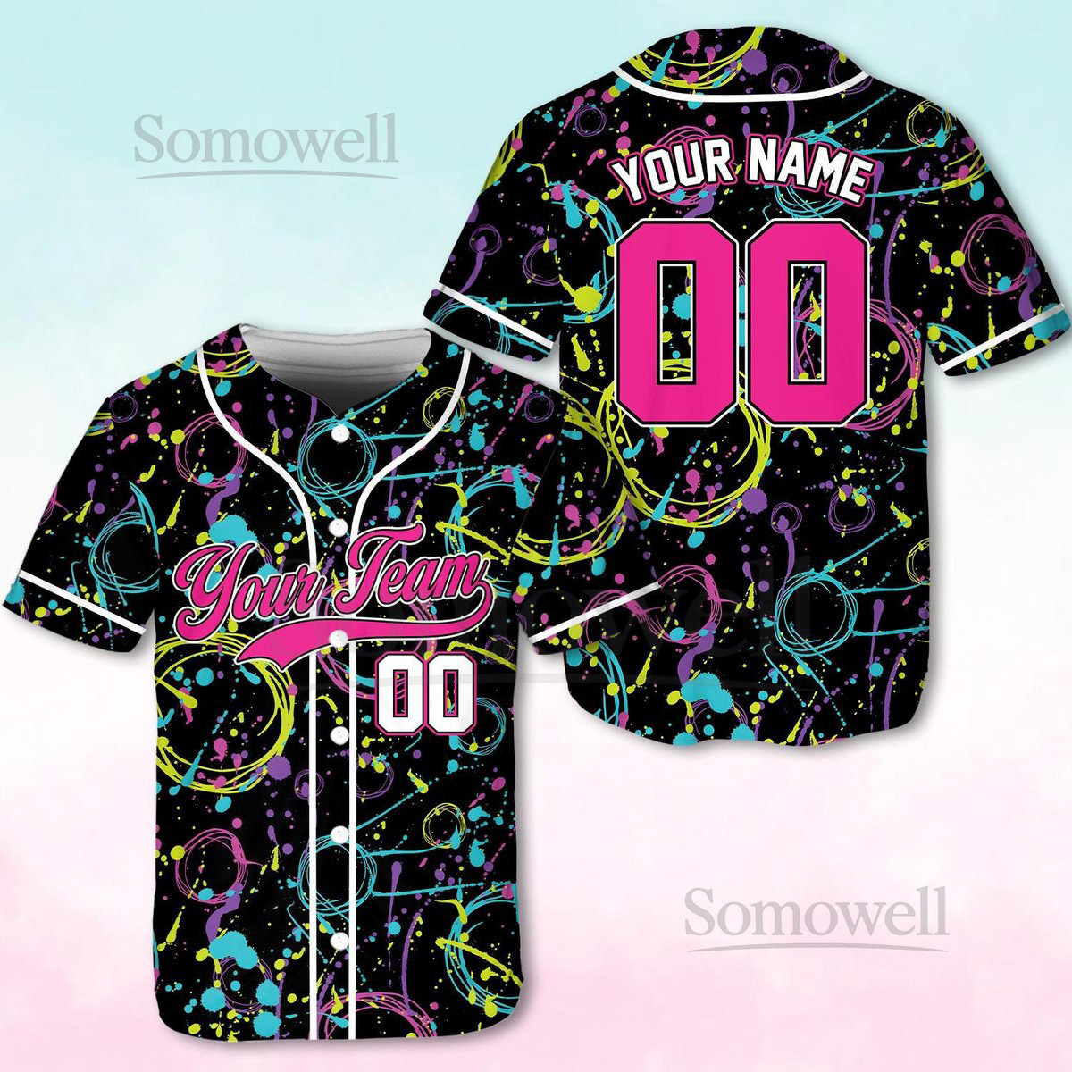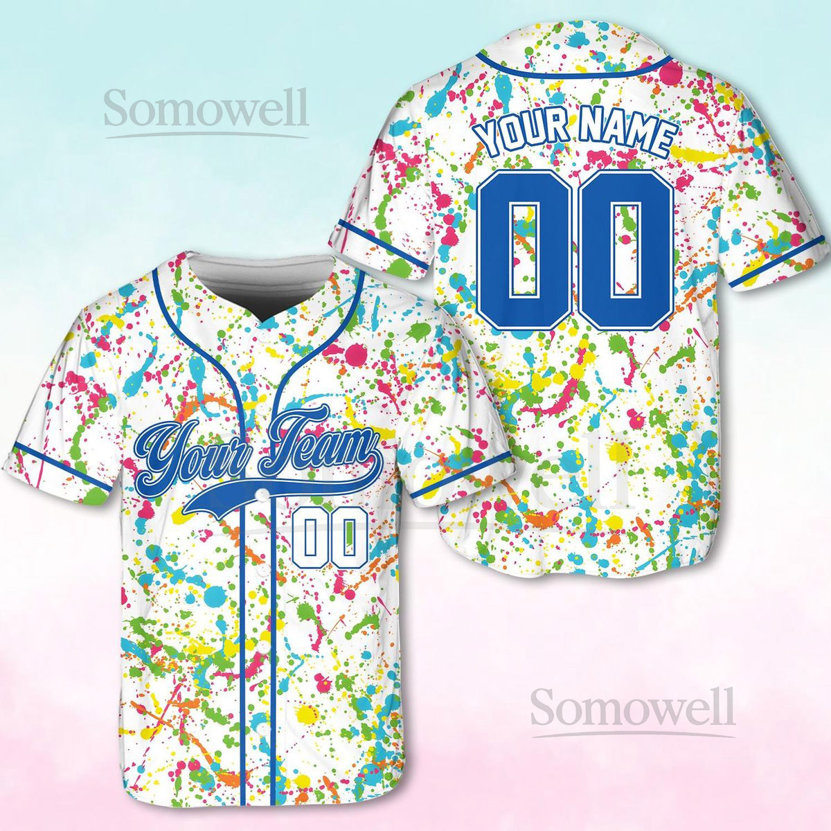 Personalized Paint Splatter Baseball Jersey for Adult Kid Youth Custom Name Number Neon Street Art Shirt Colorful Graffiti Team Shirt_338
