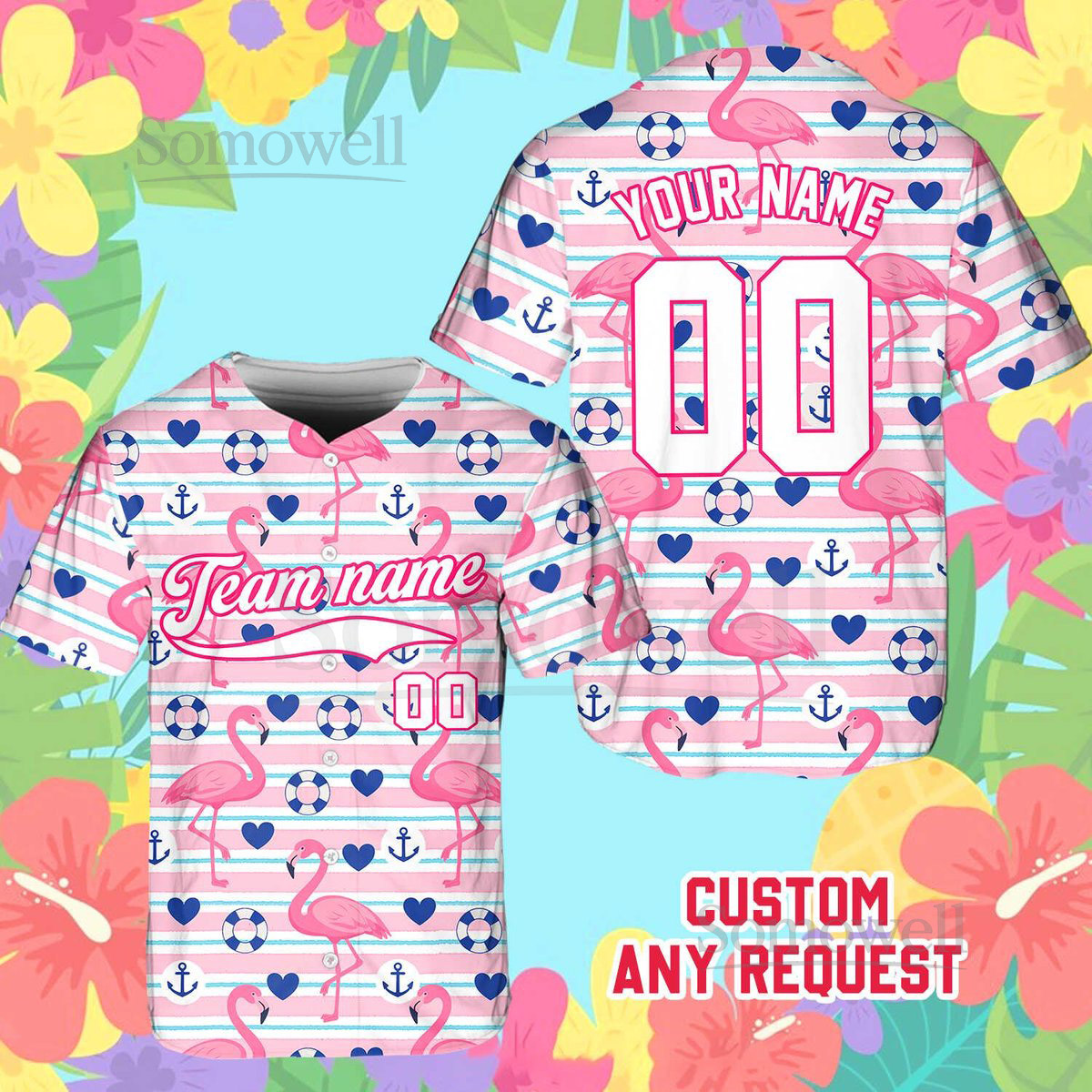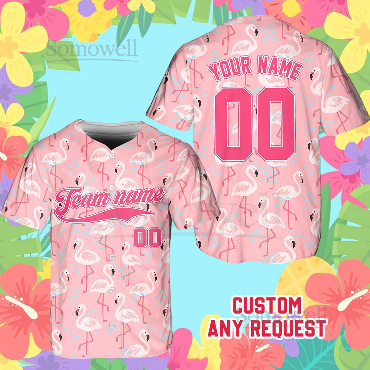 Personalized Team Name And Number Baseball Jersey Custom Flamingo Baseball Shirt Baseball Jersey Uniform For Baseball Fans Baseball Lovers_588