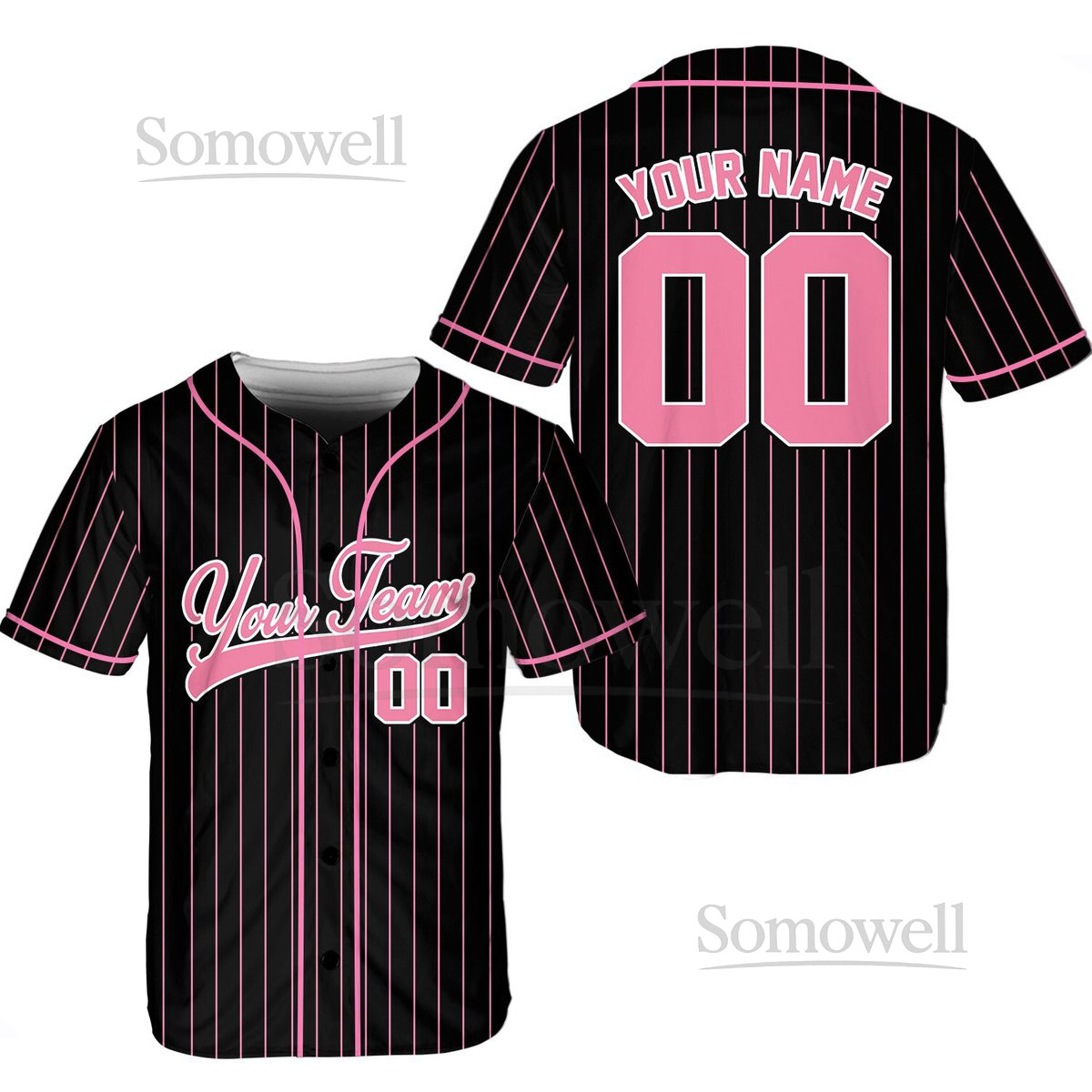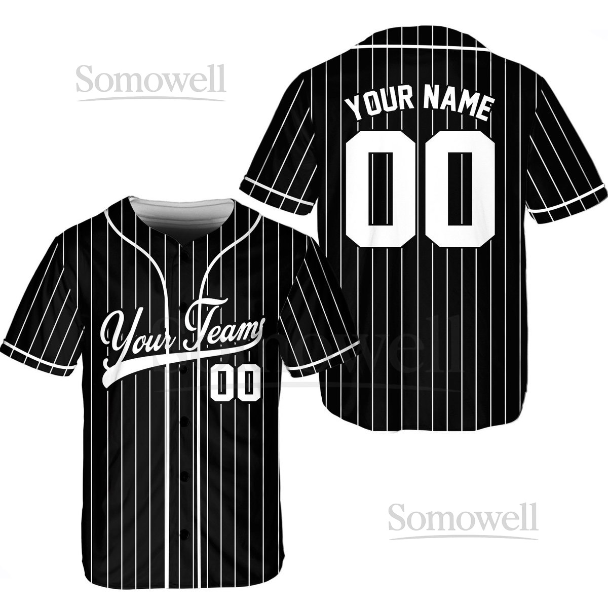 Personalized Team Name And Number Pinstripe Baseball Jersey Custom Stripe Line Color Baseball Jersey Baseball Jersey Uniform Baseball Fans_682