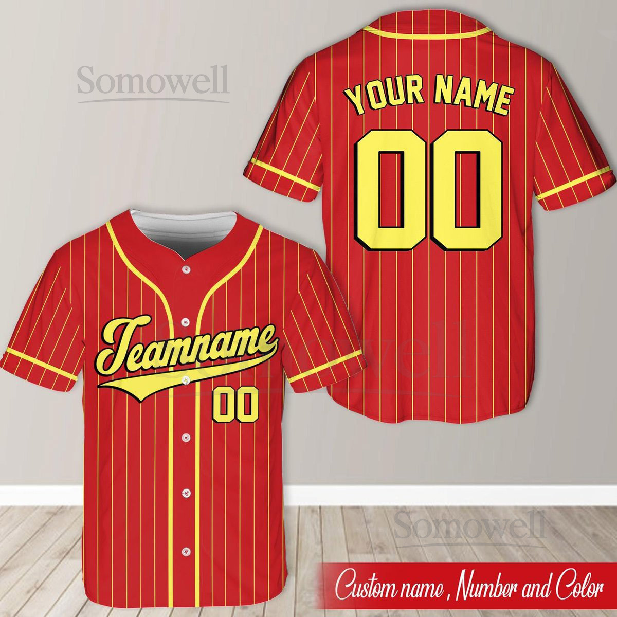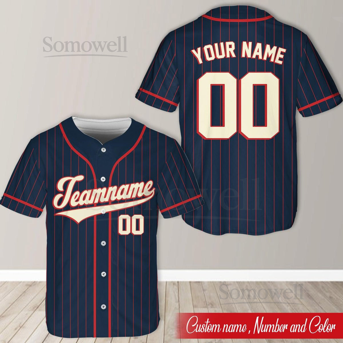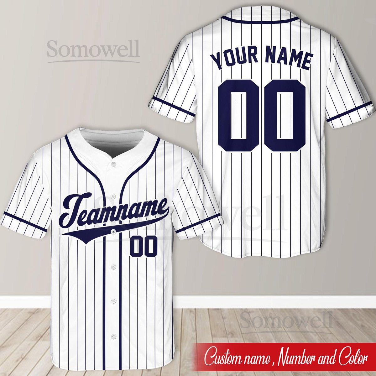 Personalized Team Name And Number Pinstripe Baseball Jersey Custom Stripe Line Color Baseball Jersey Baseball Jersey Uniform Baseball Fans_692