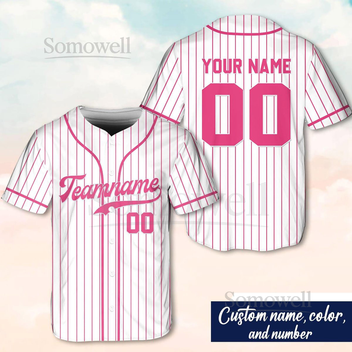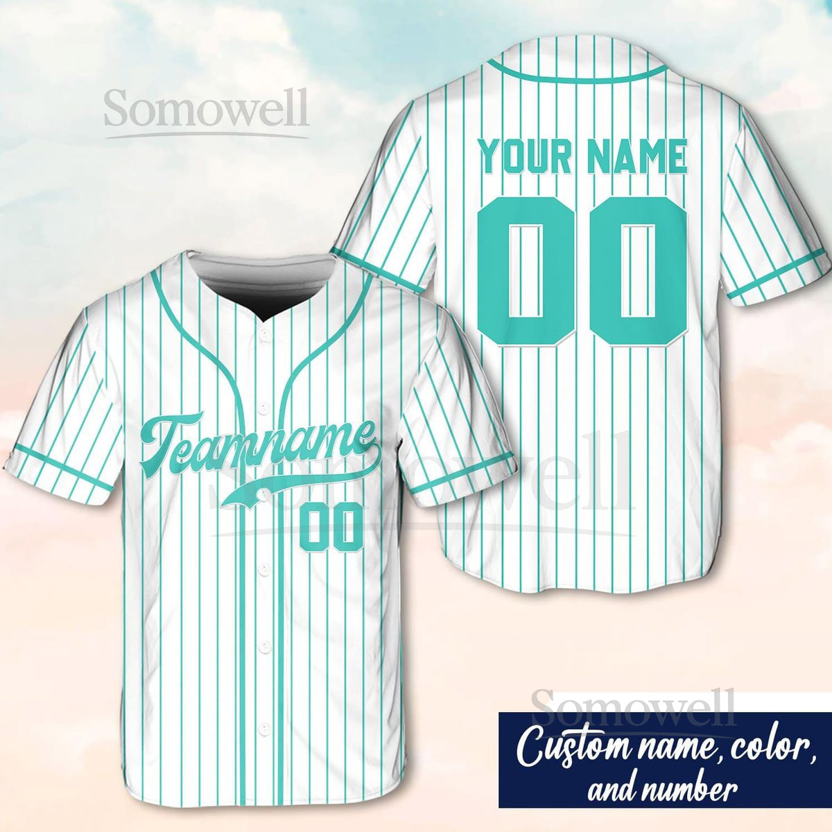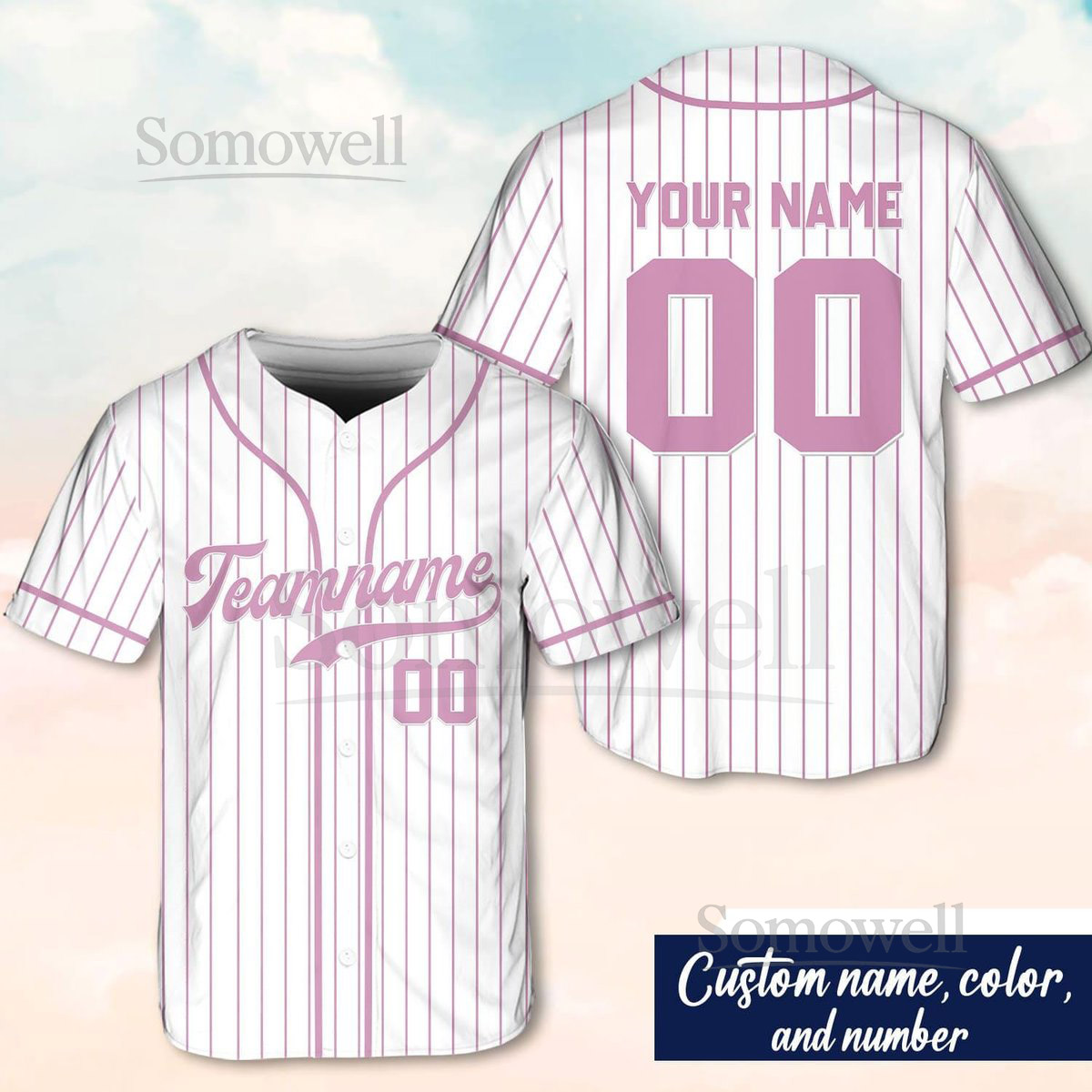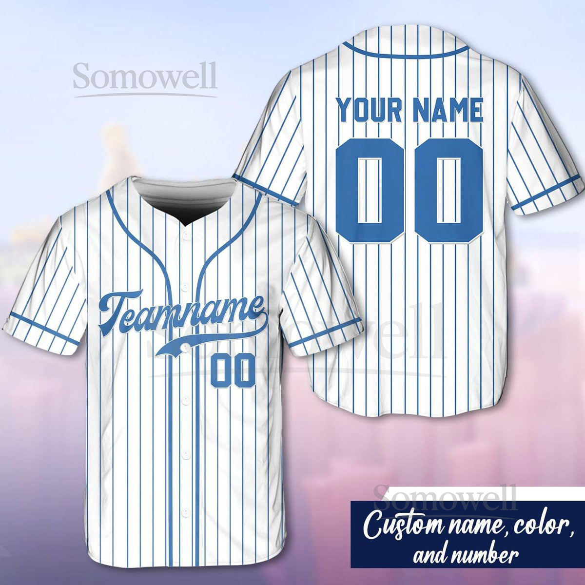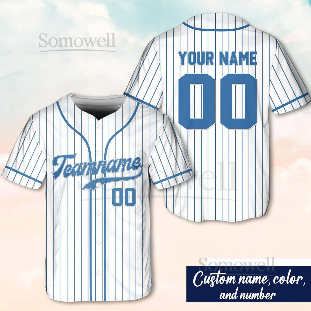 Personalized Team Name And Number Pinstripe Baseball Jersey Custom Stripe Line Color Baseball Jersey Baseball Jersey Uniform Baseball Fans_693