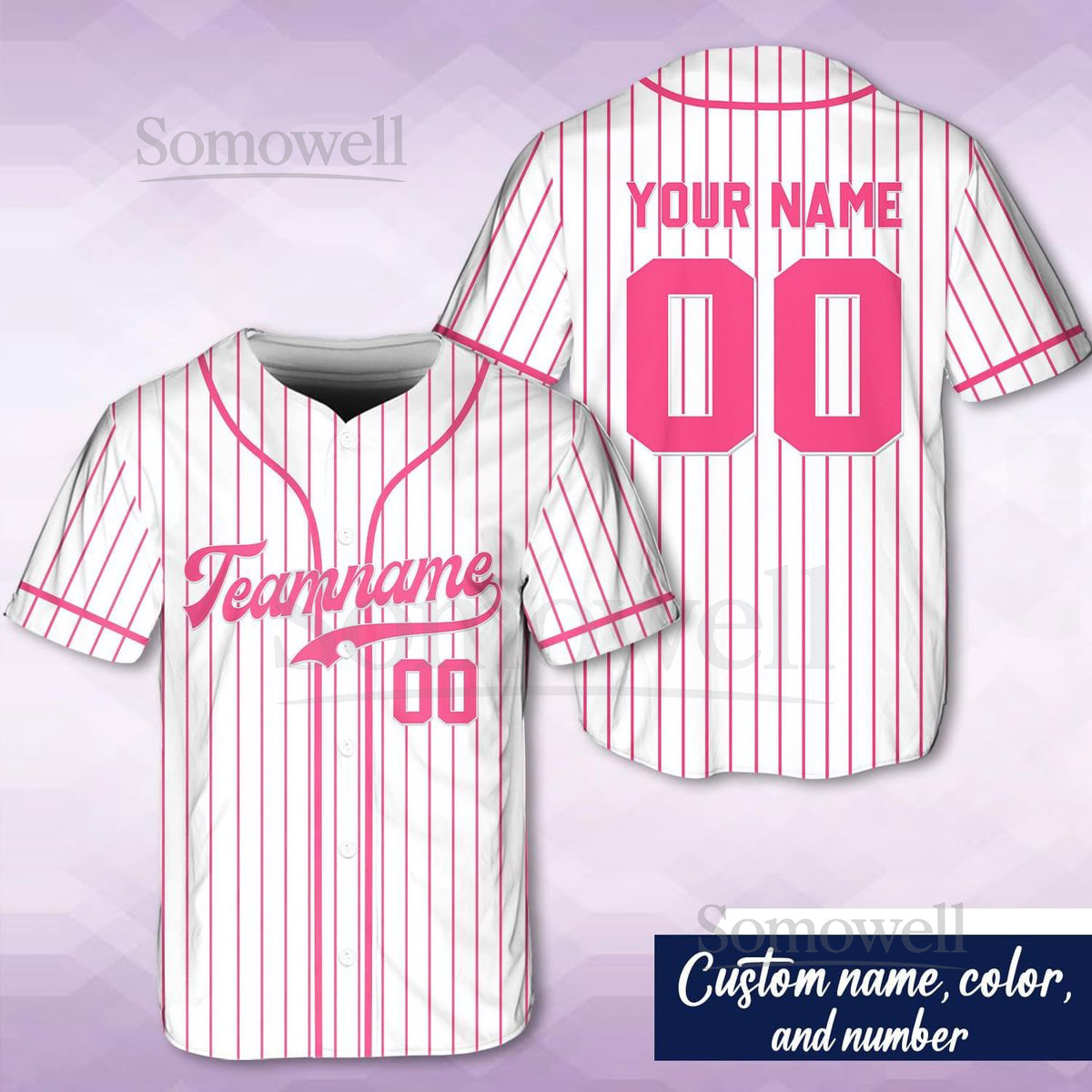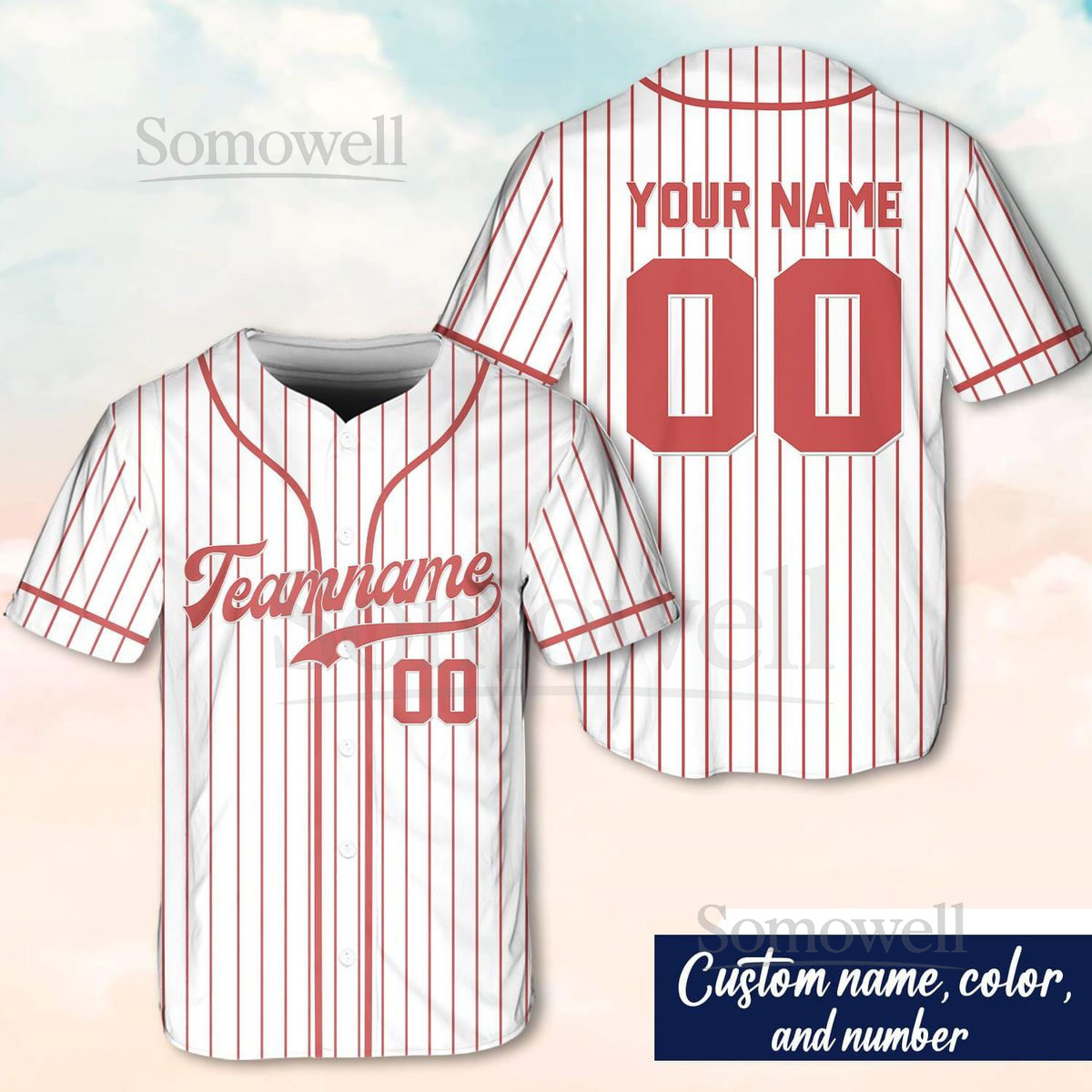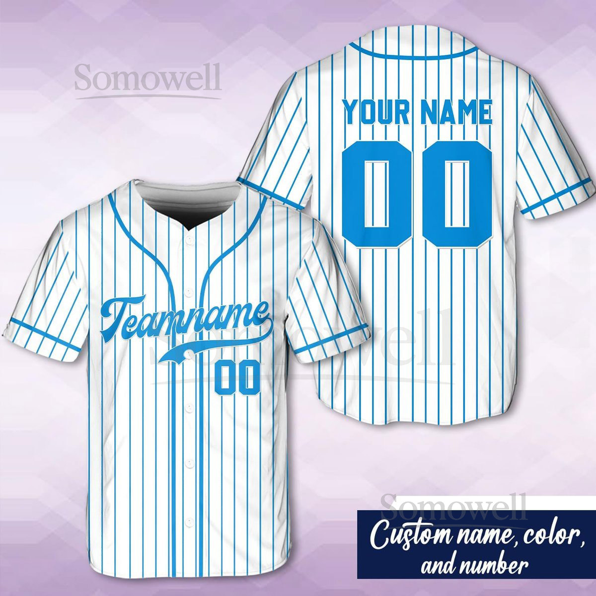 Personalized Team Name And Number Pinstripe Baseball Jersey Custom Stripe Line Color Baseball Jersey Baseball Jersey Uniform Baseball Fans_695