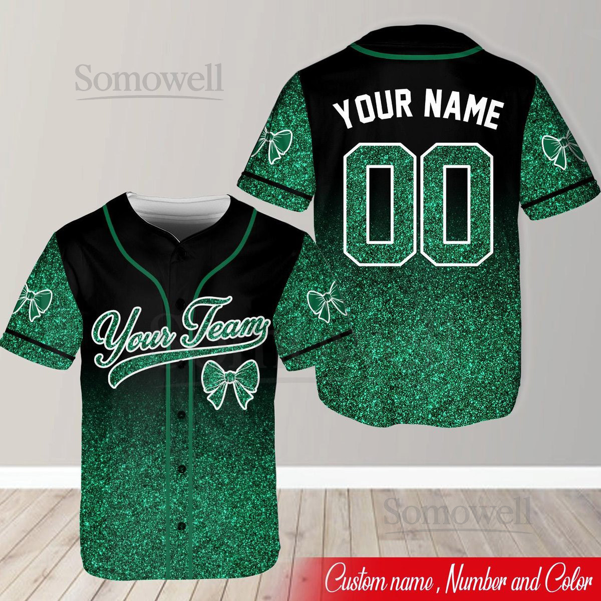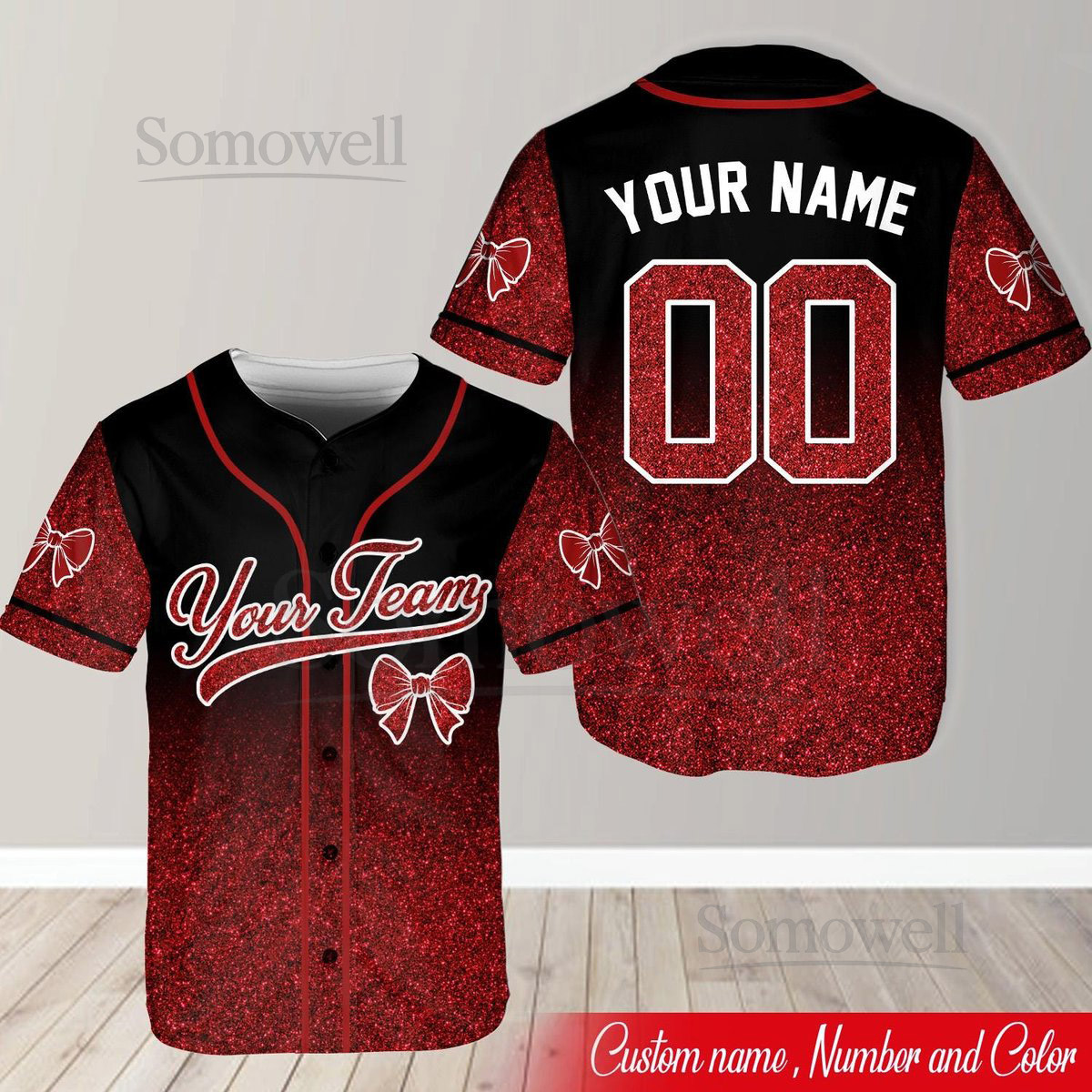 Personalized Team Name Number Bow Ribbon Baseball Jersey Custom Cheer Baseball Jersey Glitter Jersey Printed Glitter Not Glitter Fabric_739