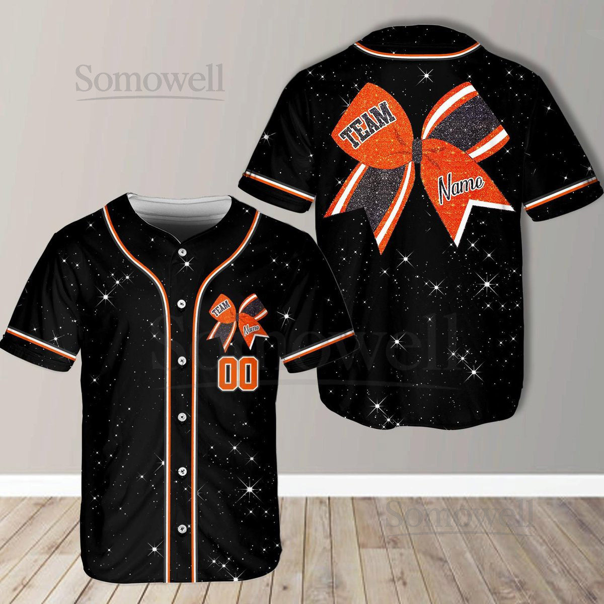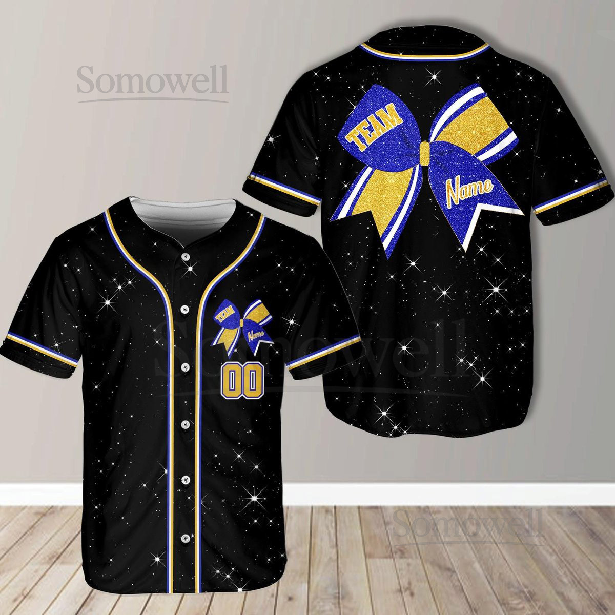 Personalized Team Name Number Bow Ribbon Baseball Jersey Custom Cheer Baseball Jersey Glitter Jersey Printed Glitter Not Glitter Fabric_743