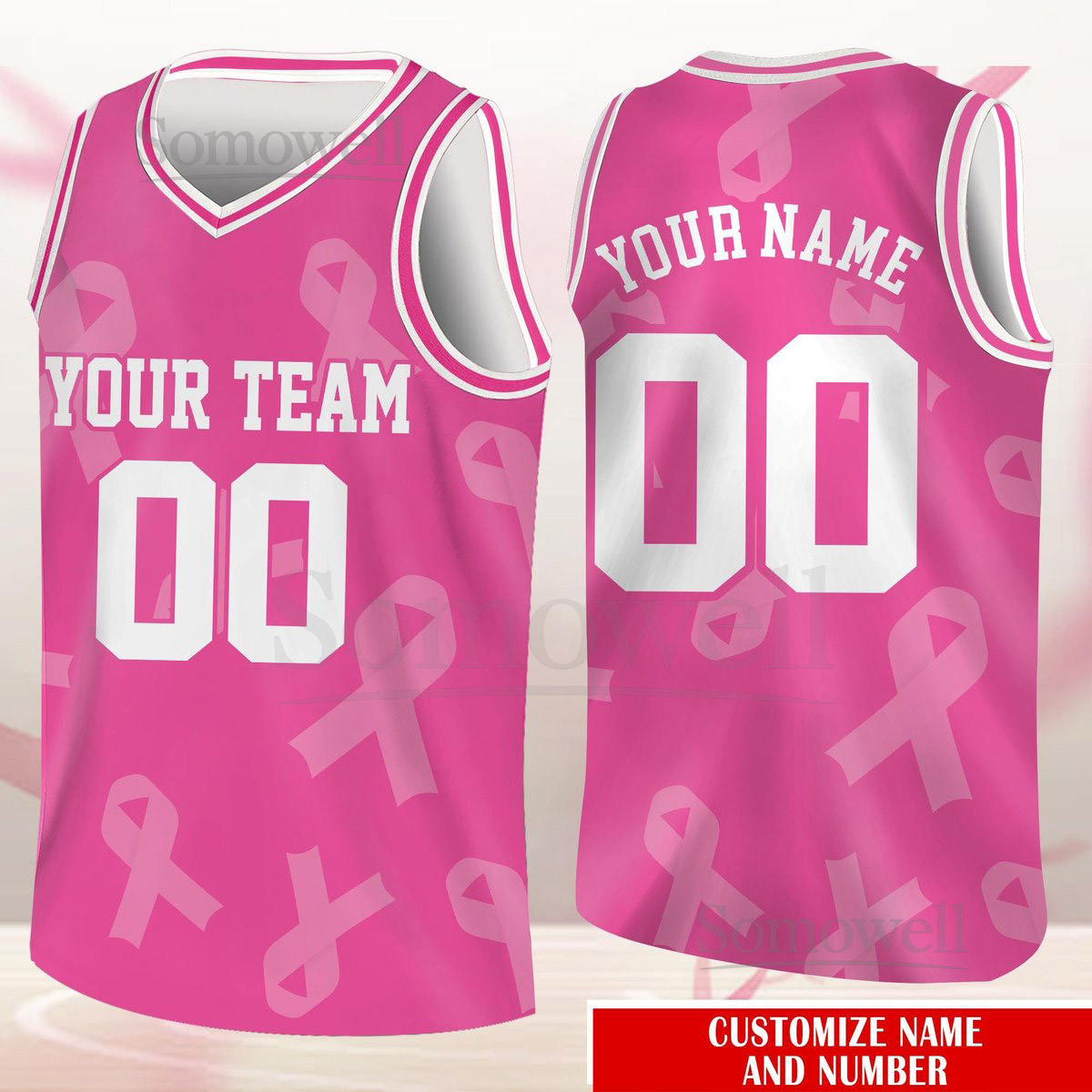 Custom Breast Cancer Basketball Jersey Name Number Personalized Breast Cancer Awareness Jersey Hope Jersey Pink Ribbon Jersey_142