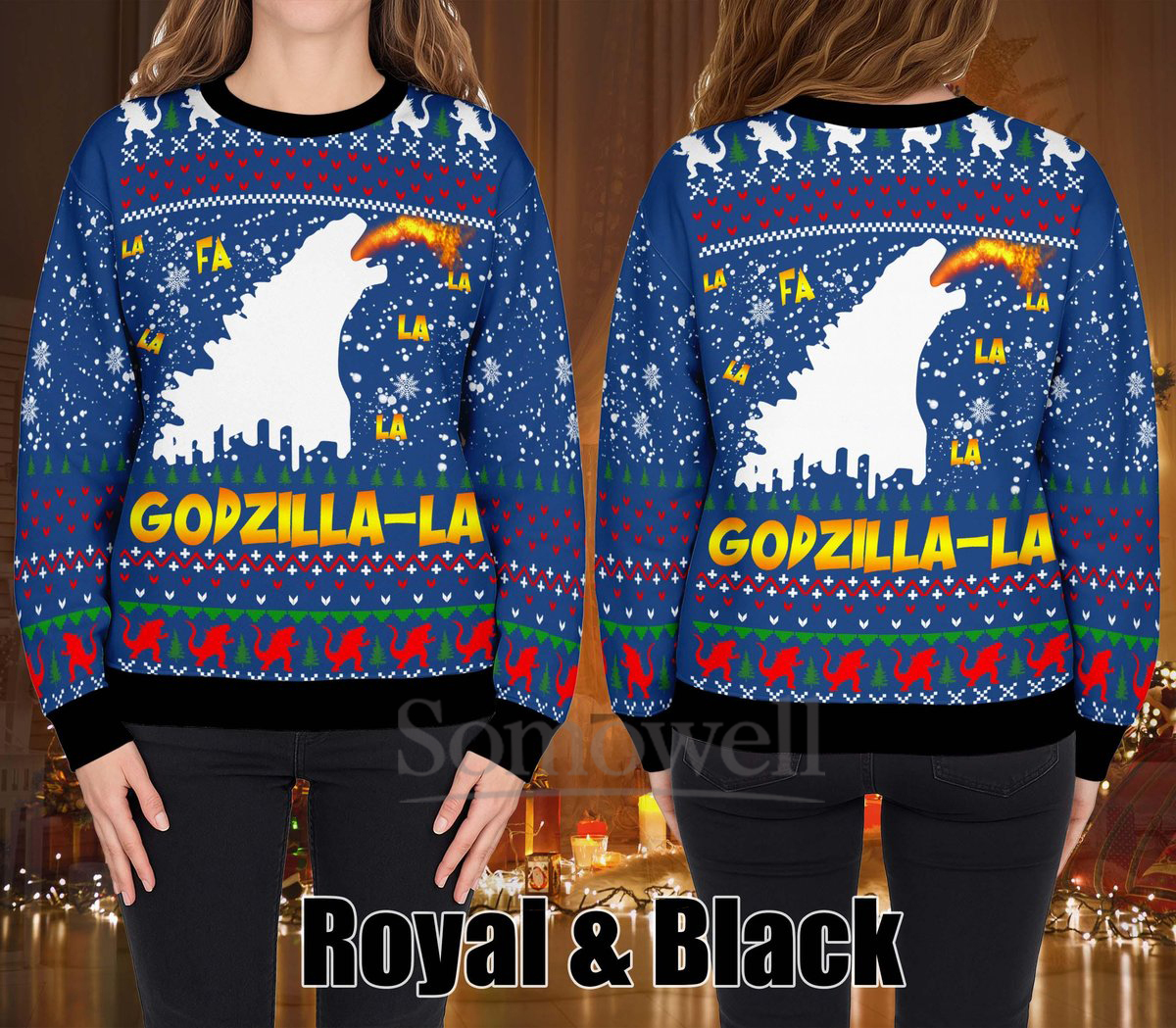 Godzilla La Ugly Christmas Sweater Funny Movie Monster Black Holiday Knit Jumper Gift
