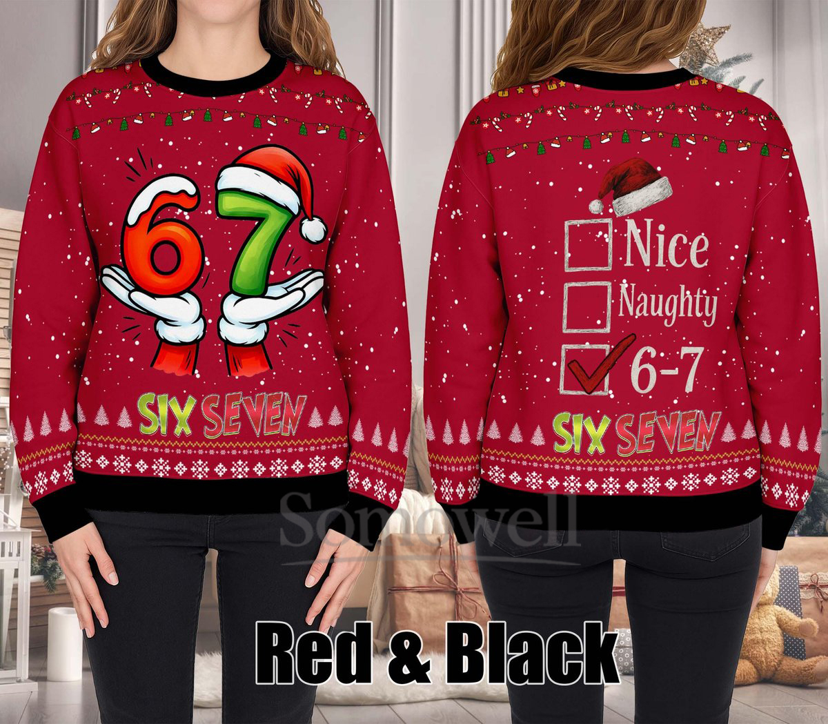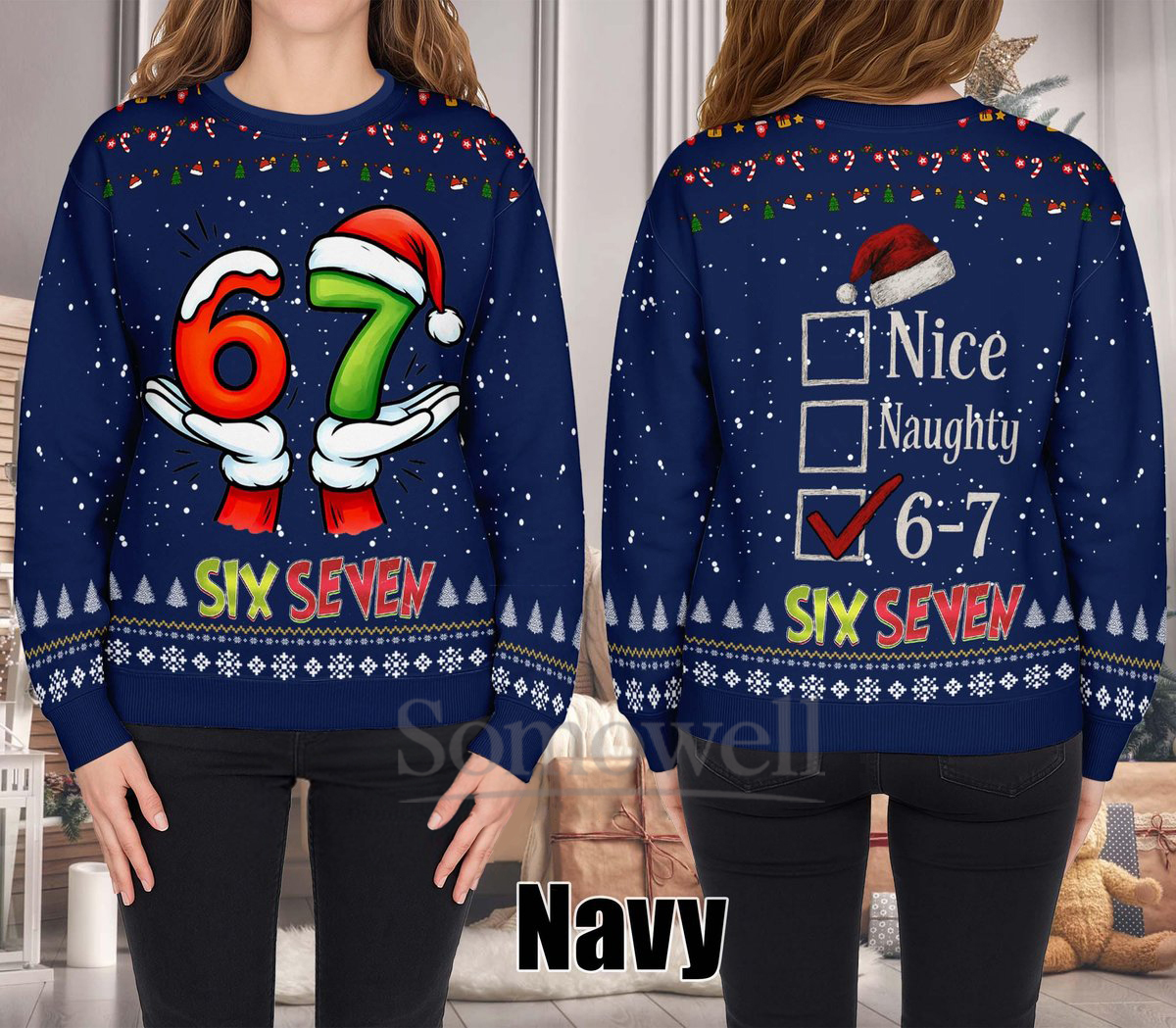 Six Seven Christmas Ugly Christmas Sweater Funny Naughty Nice List Green Knit Jumper