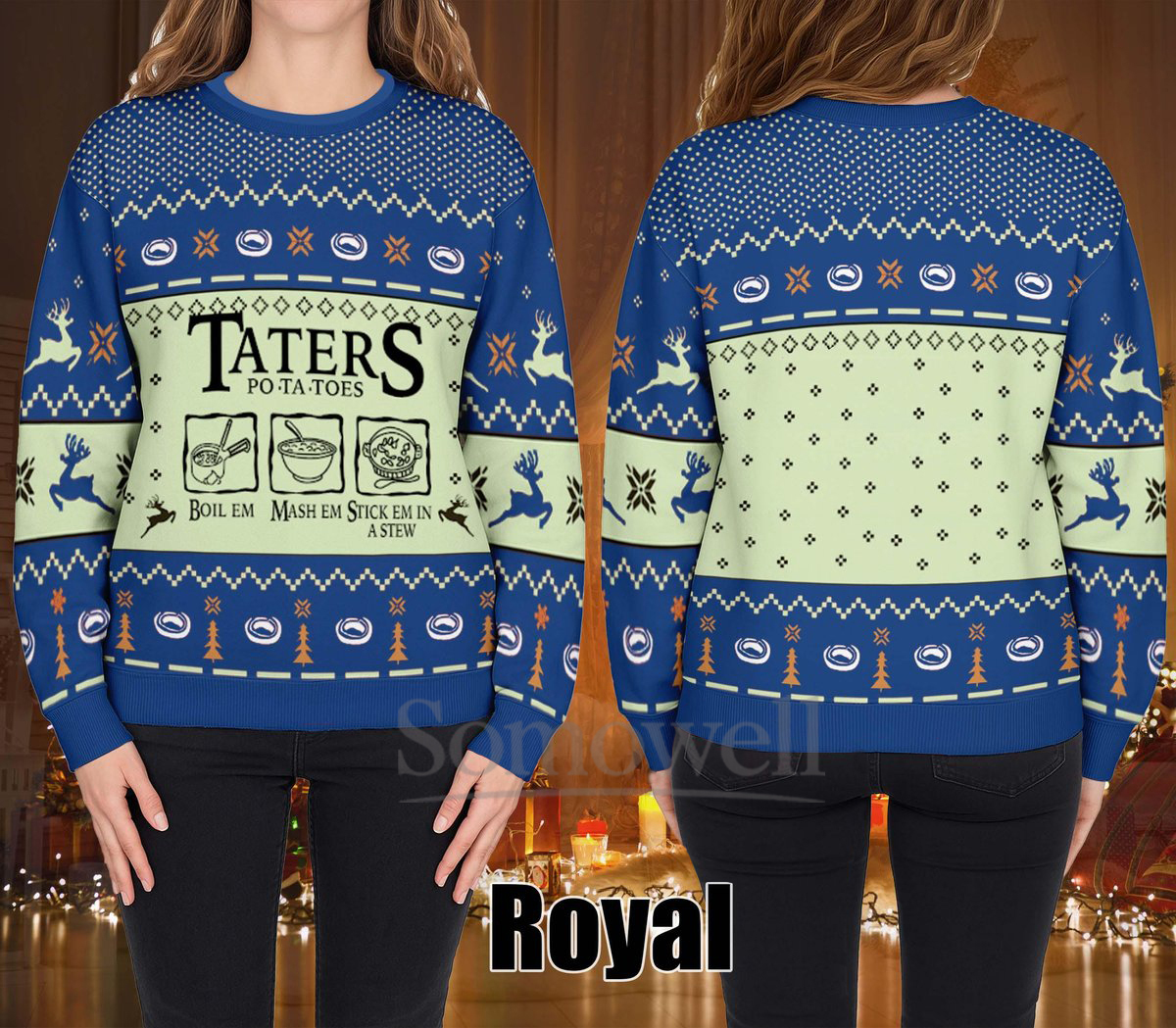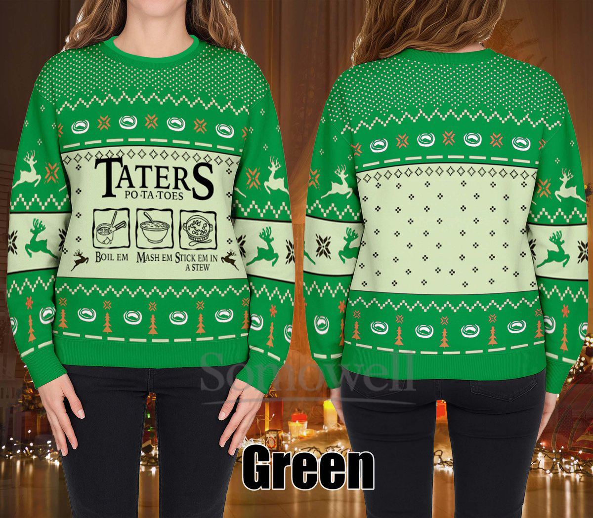 Taters Potatoes Red Ugly Christmas Sweater Funny LOTR Quote Holiday Knit Jumper