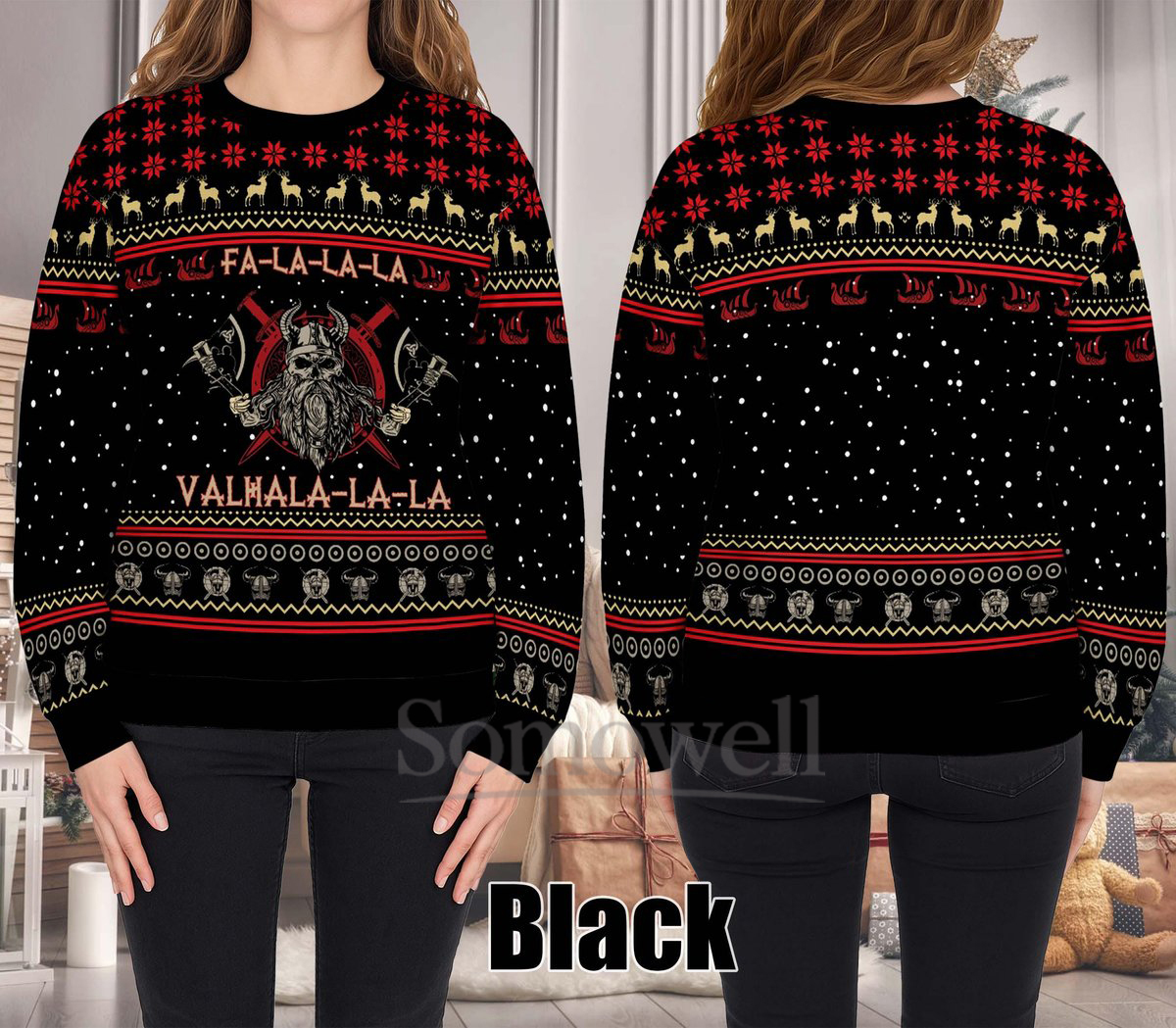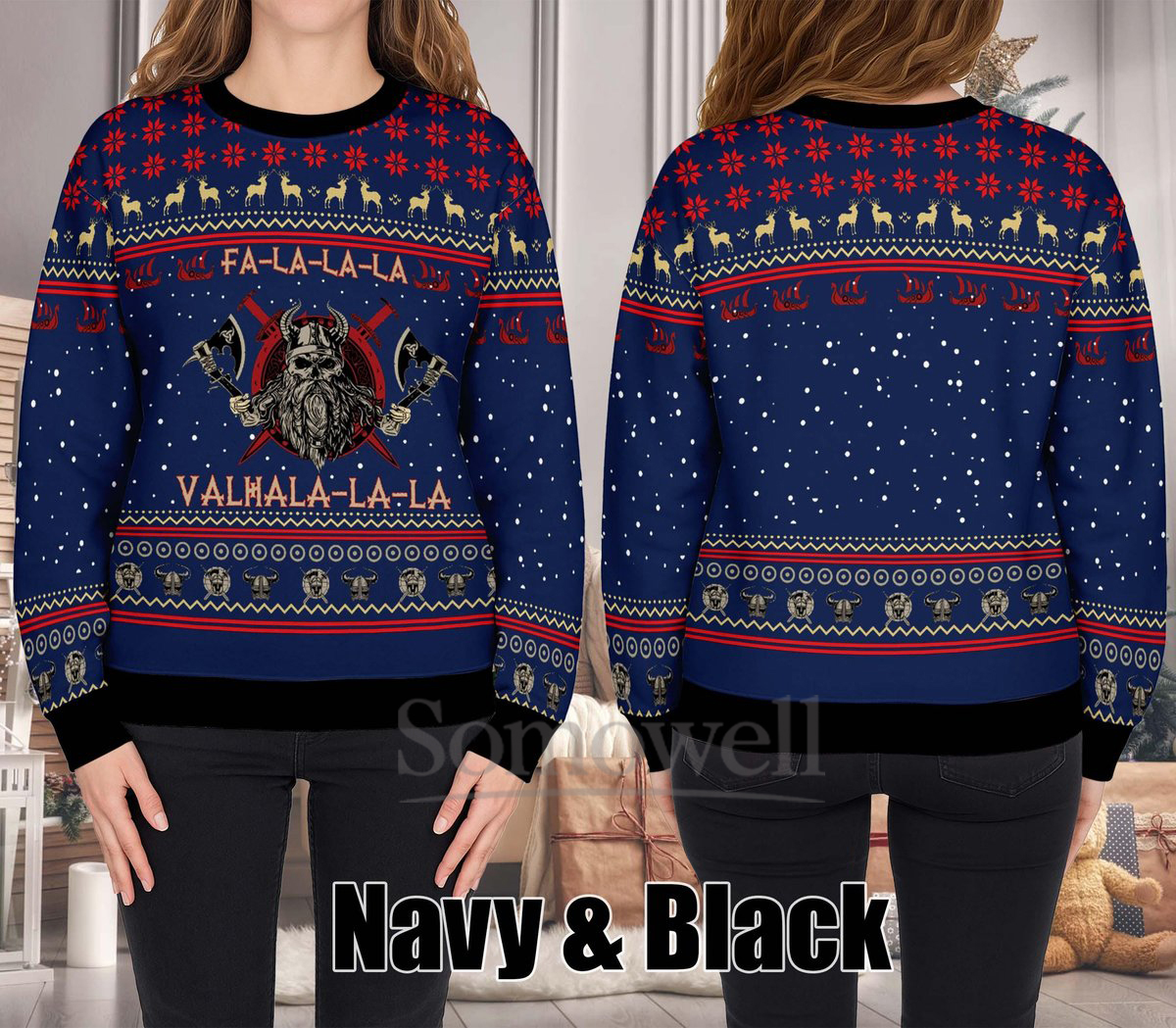 Valhalla La La Viking Ugly Christmas Sweater Funny Warrior Dark Heather Holiday Knit Jumper