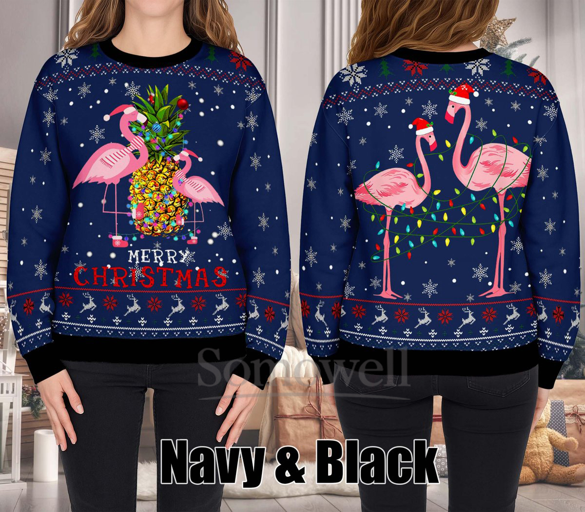 Tropical Flamingo Pineapple Ugly Christmas Sweater Funny Merry Christmas Knit Jumper