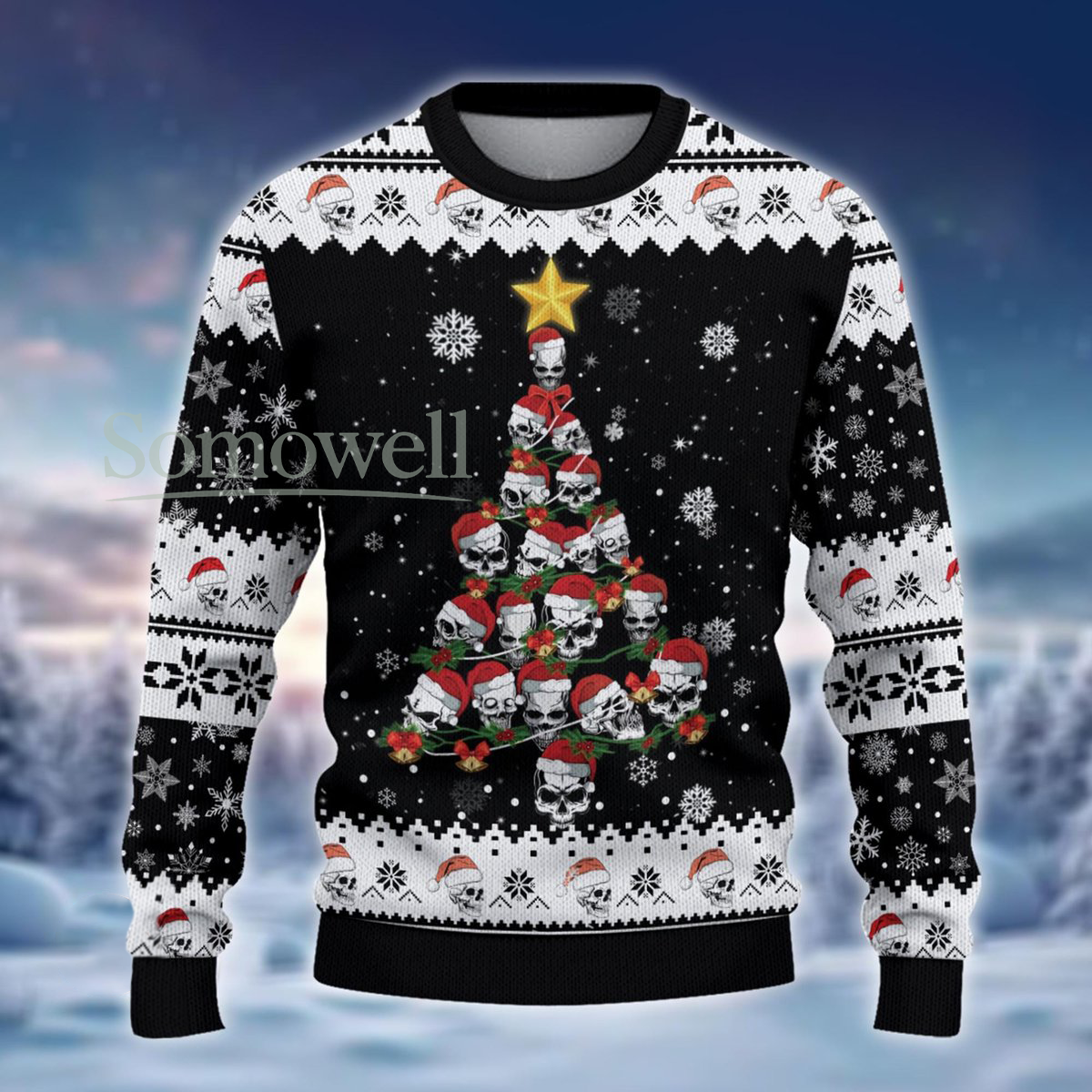 Skull Christmas Tree Black Ugly Sweater Funny Gothic Holiday Knit Jumper
