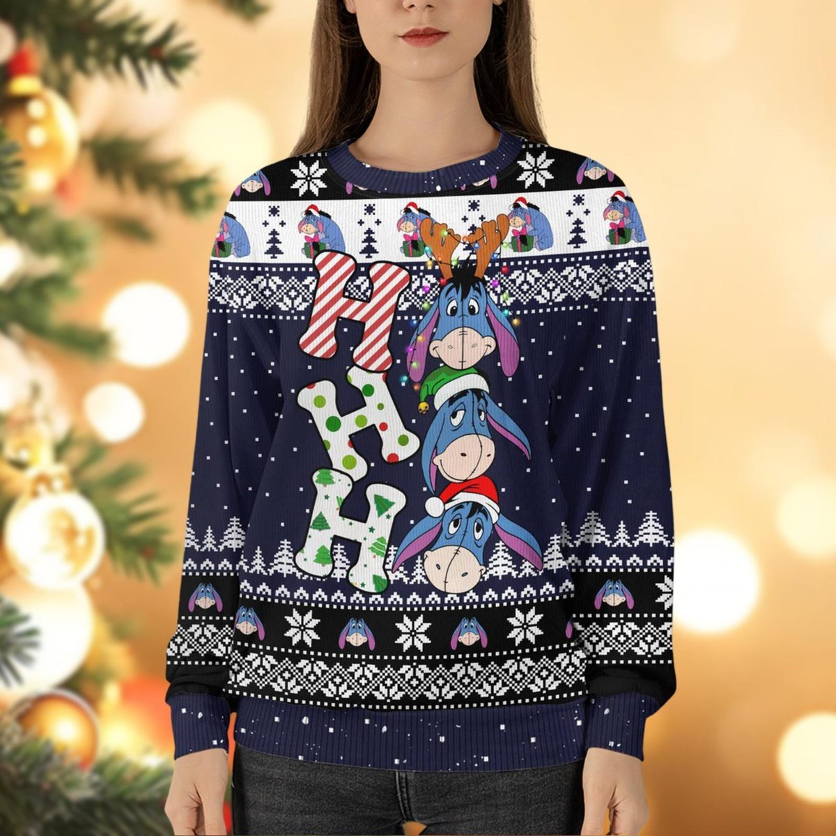 Blue Donkey Ho Ho Ho Custom Name Ugly Christmas Sweater Funny Holiday Gift