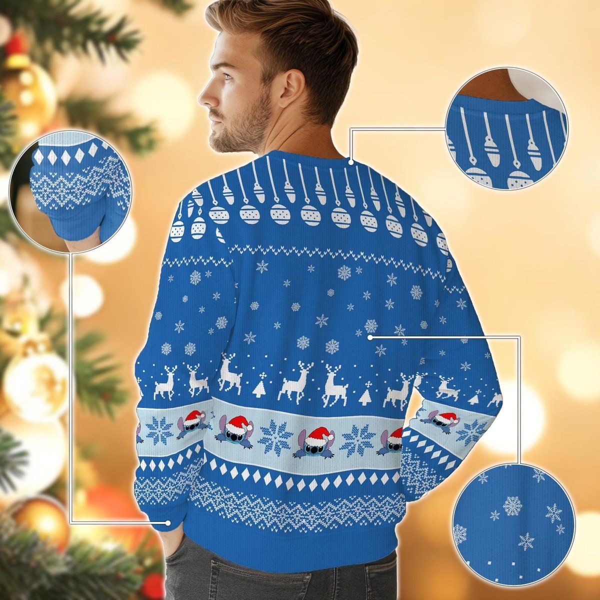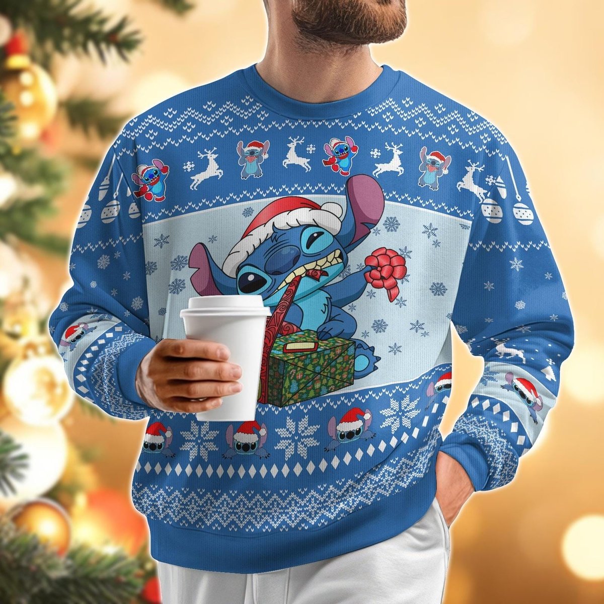 Blue Stitch Gift Box Ugly Christmas Sweater Cute Holiday Pullover Winter Knit