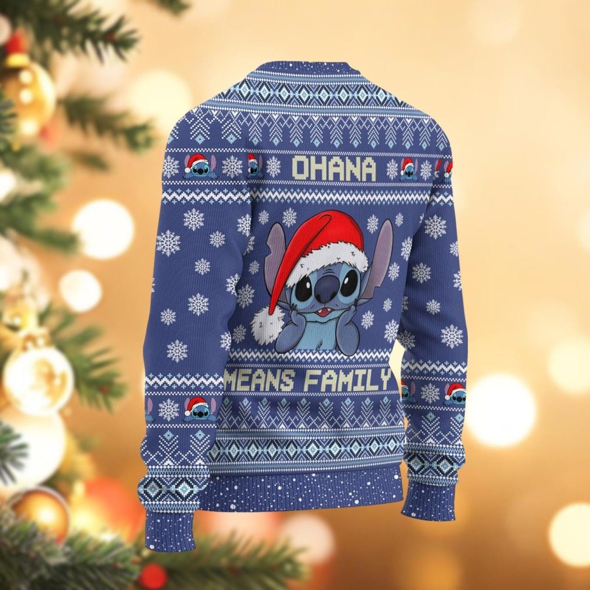 Blue Stitch Ohana Means Family Ugly Christmas Sweater Holiday Pullover Gift