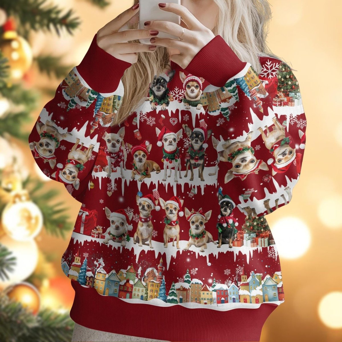 Chihuahua Red Ugly Christmas Sweater Cute Small Dog Lovers Holiday Knit Jumper