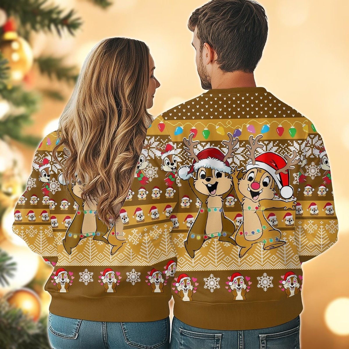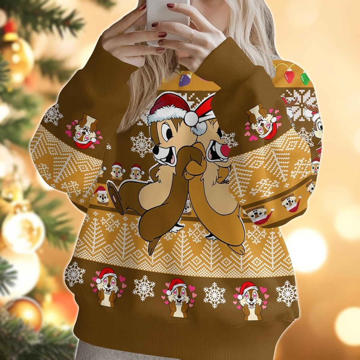 Chip and Dale Brown Ugly Christmas Sweater Funny Cartoon Holiday Knit Jumper