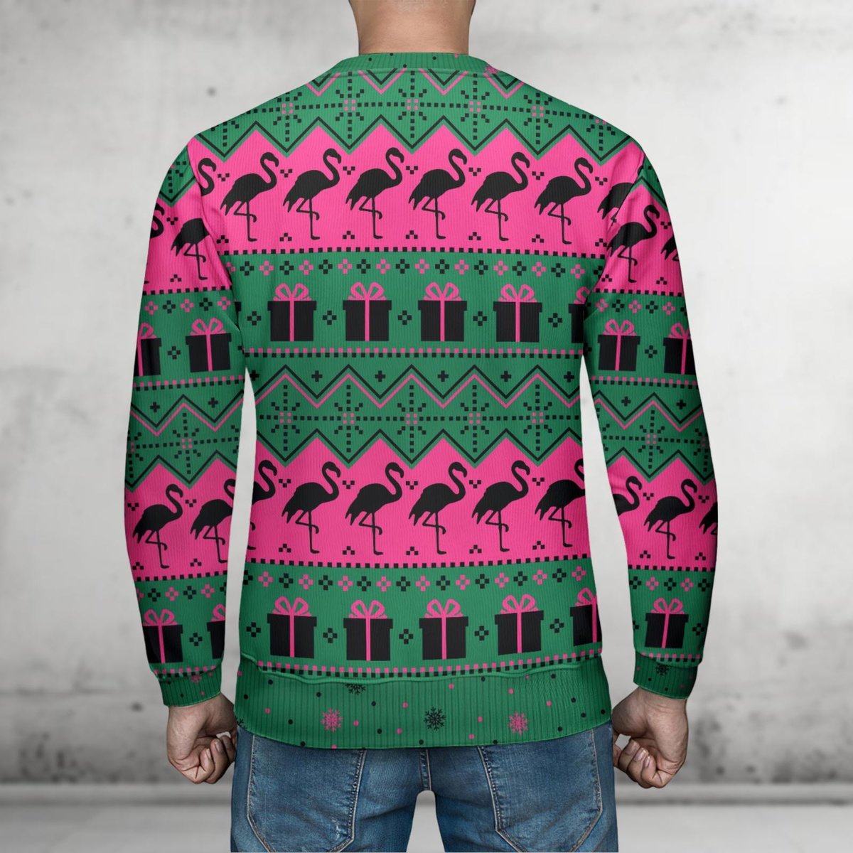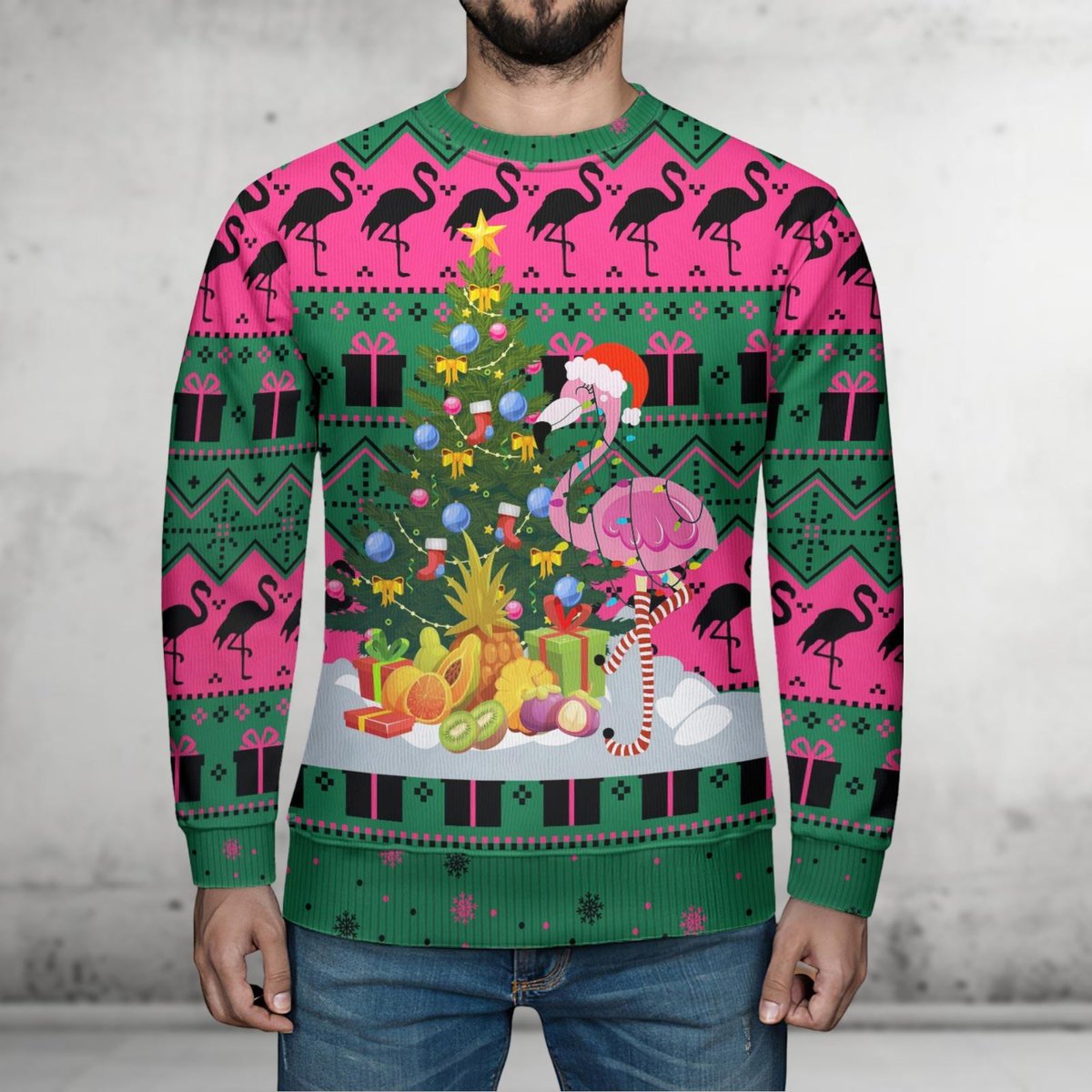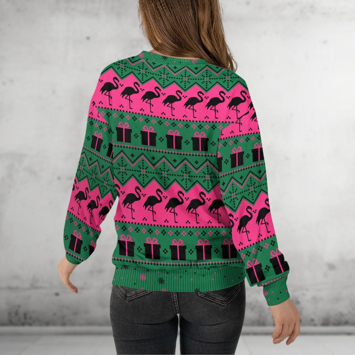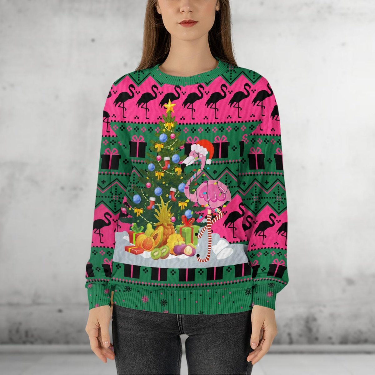 Christmas Flamingo Pink Green Ugly Christmas Sweater Funny Tropical Bird Holiday Knit Jumper