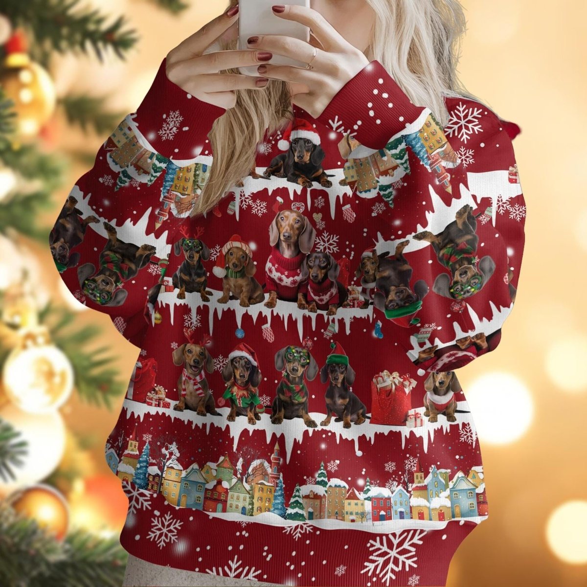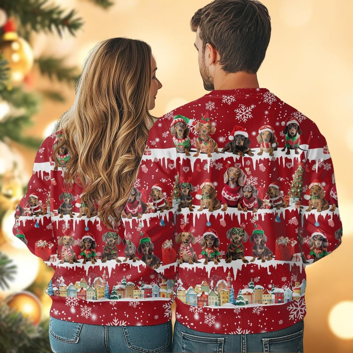 Dachshund Dogs Red Ugly Christmas Sweater Cute Pet Lovers Holiday Knit Jumper