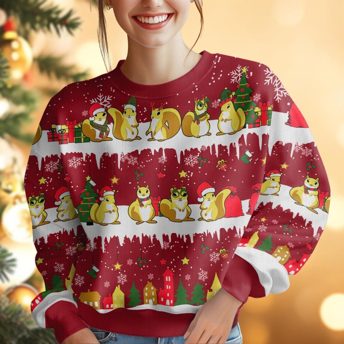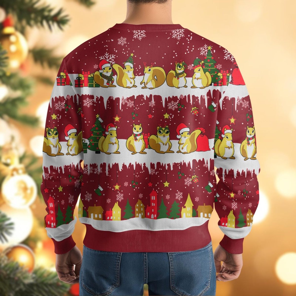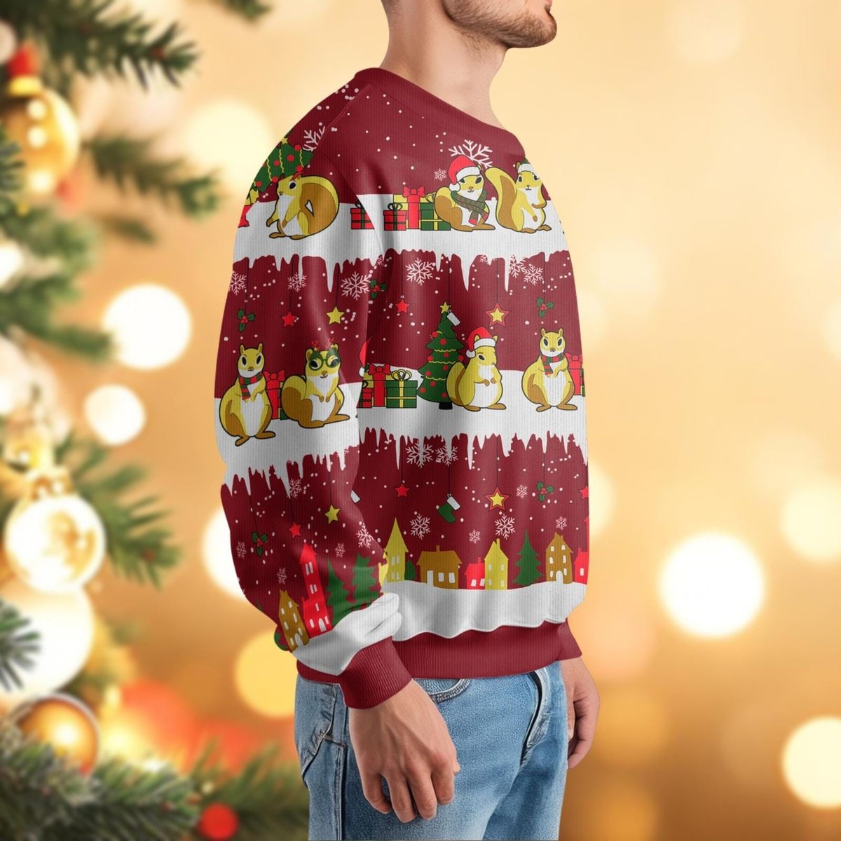 Cute Squirrel Pattern Ugly Christmas Sweater Funny Animal Holiday Pullover Gift