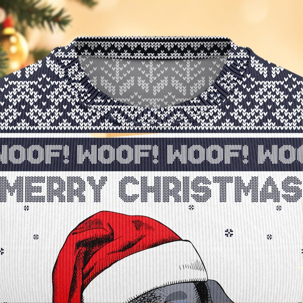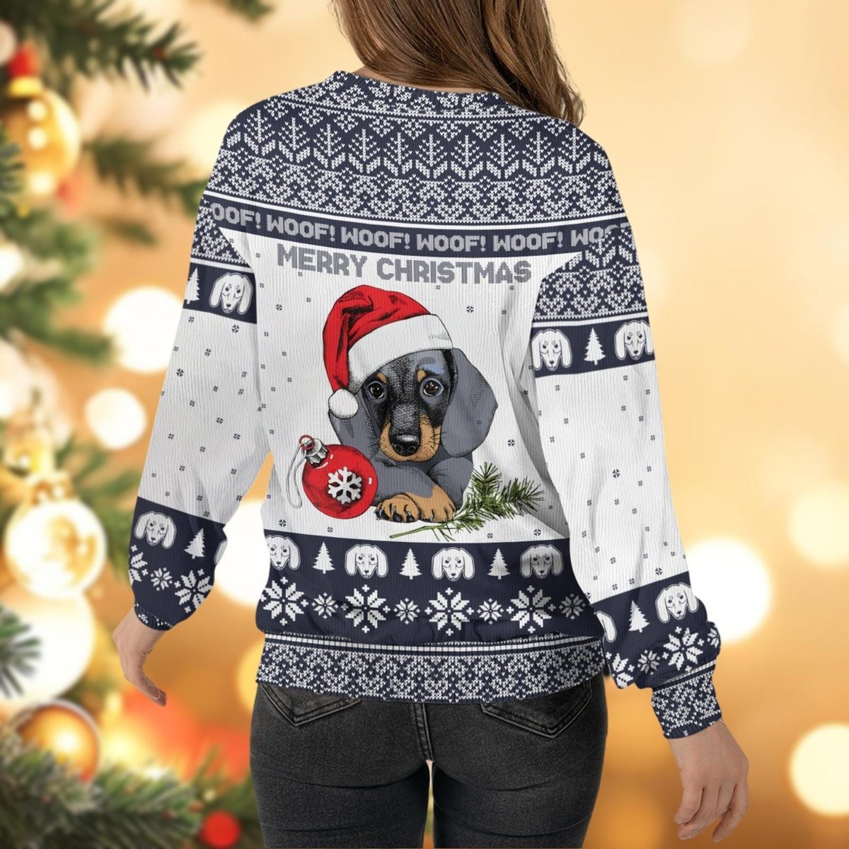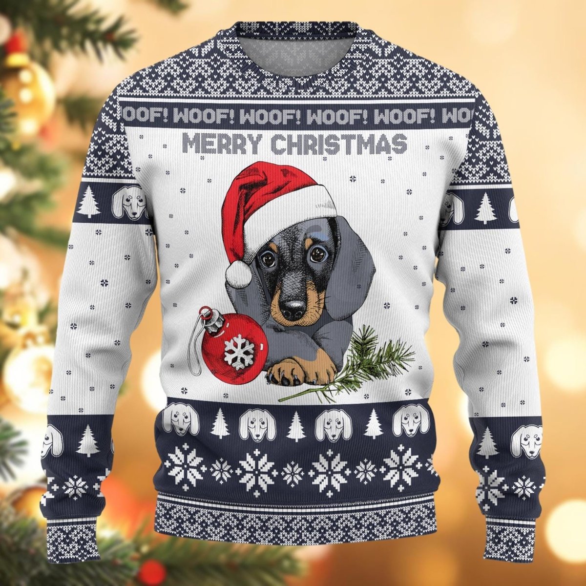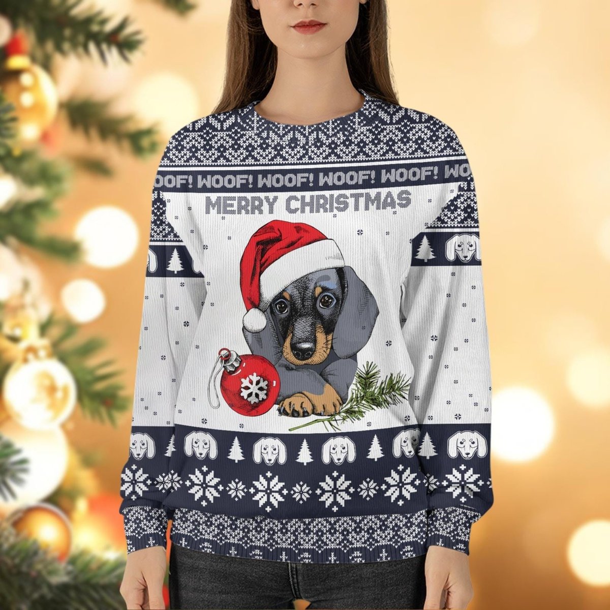 Dachshund Santa Hat White Ugly Christmas Sweater Dog Lover Winter Knit Pullover