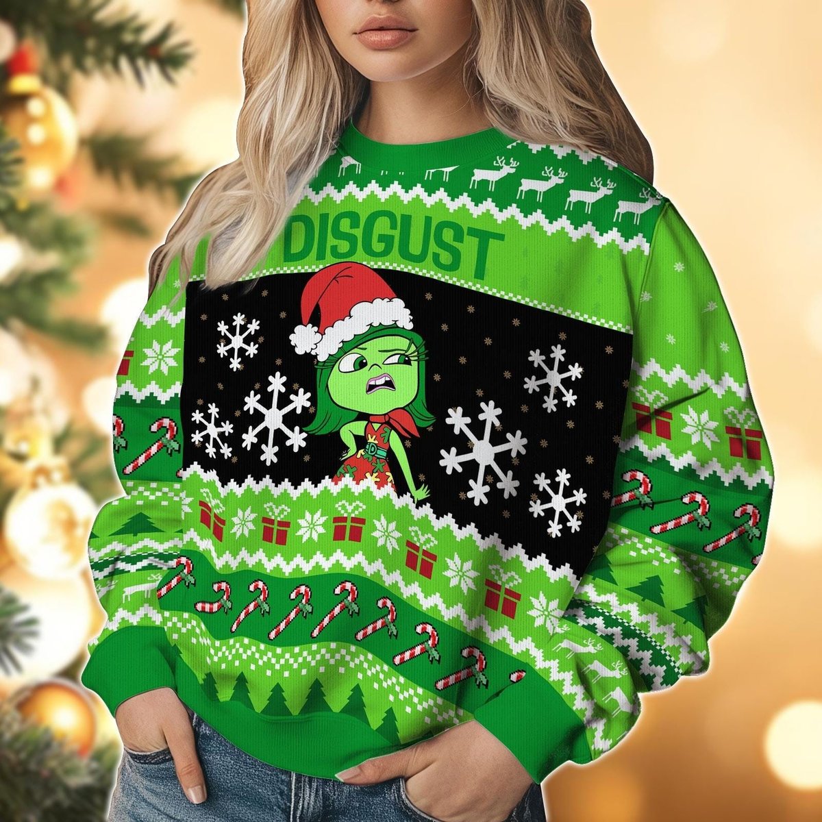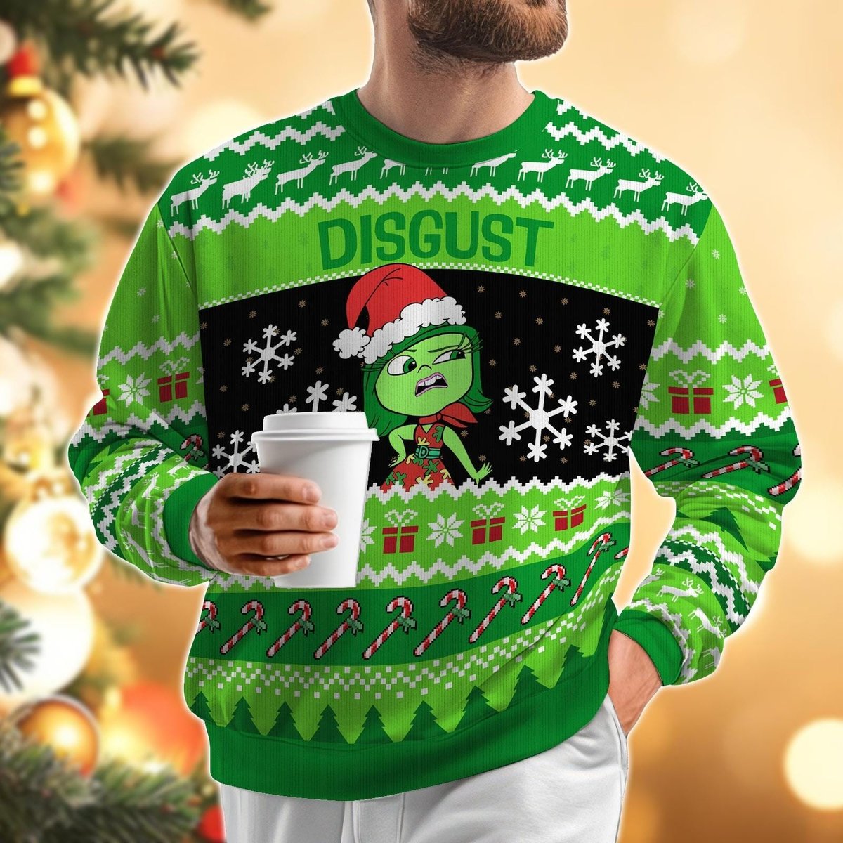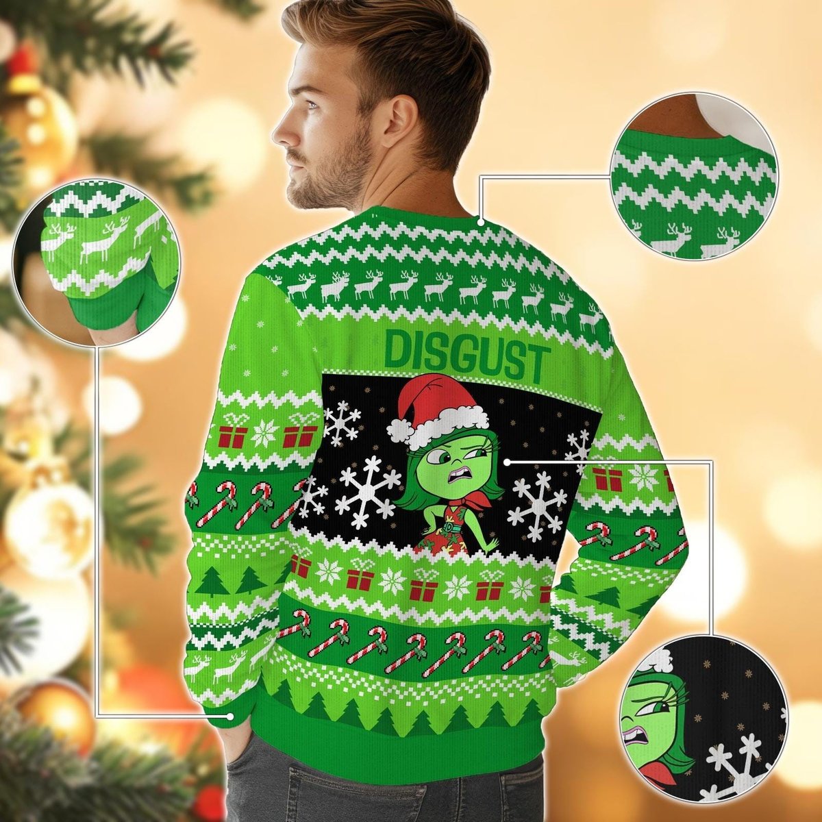 Disgust Inside Out Ugly Christmas Sweater, Funny Green Holiday Knit Jumper