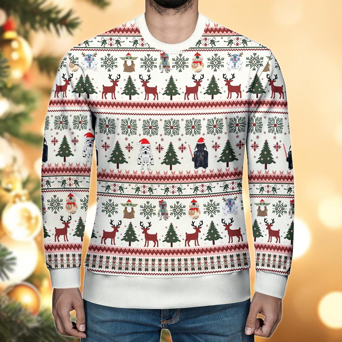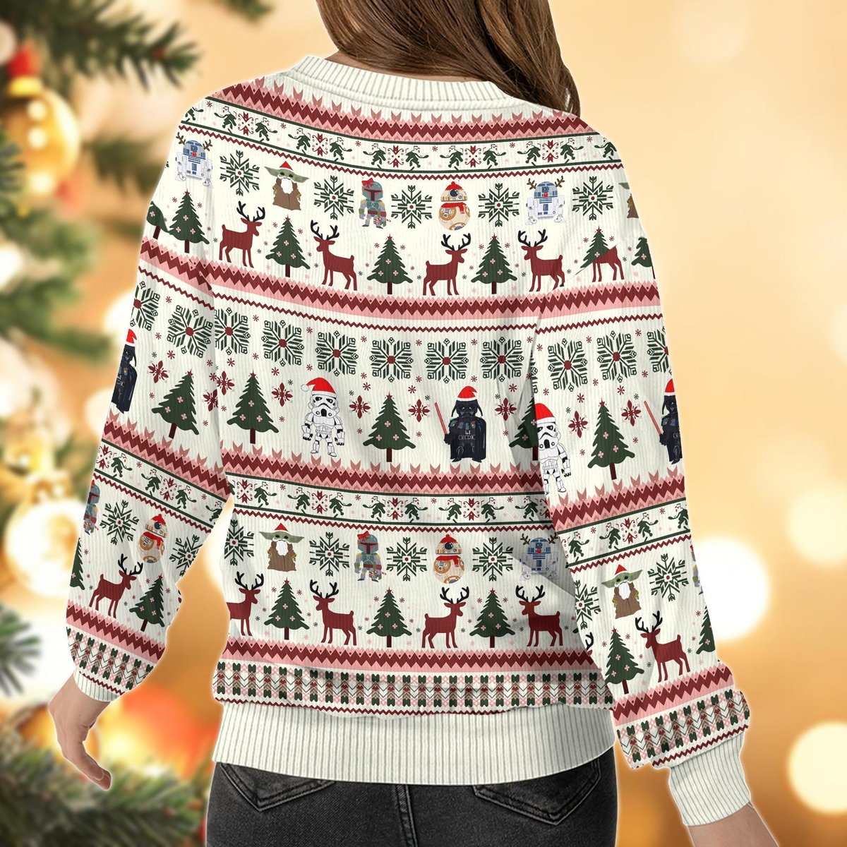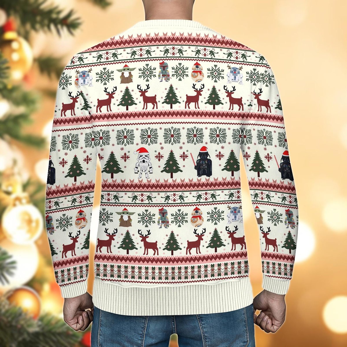 Disney Star Wars Ugly Christmas Sweater, White Reindeer Tree Holiday Knit Jumper