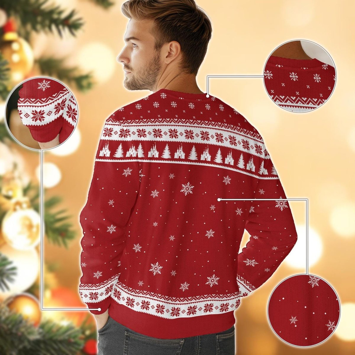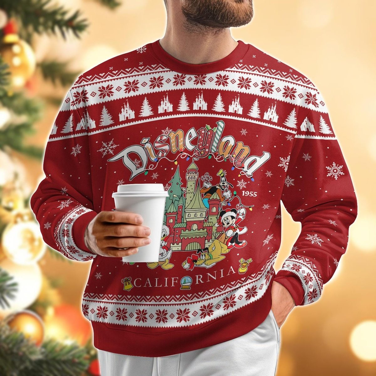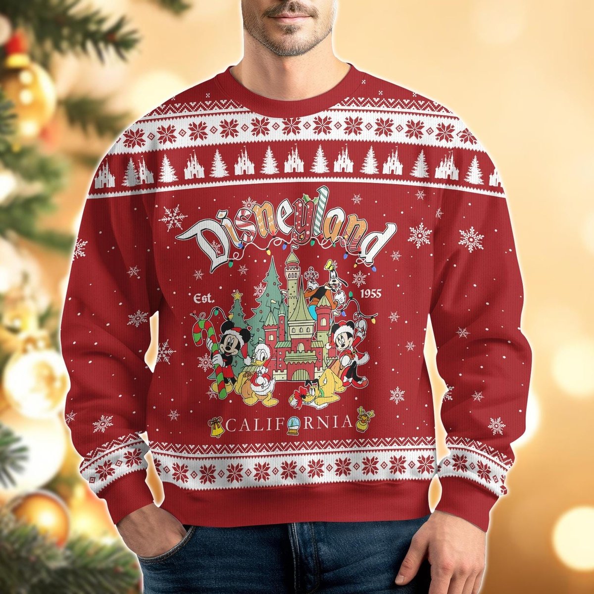 Disneyland California Christmas Sweater, Red Mickey and Friends Holiday Knit Jumper