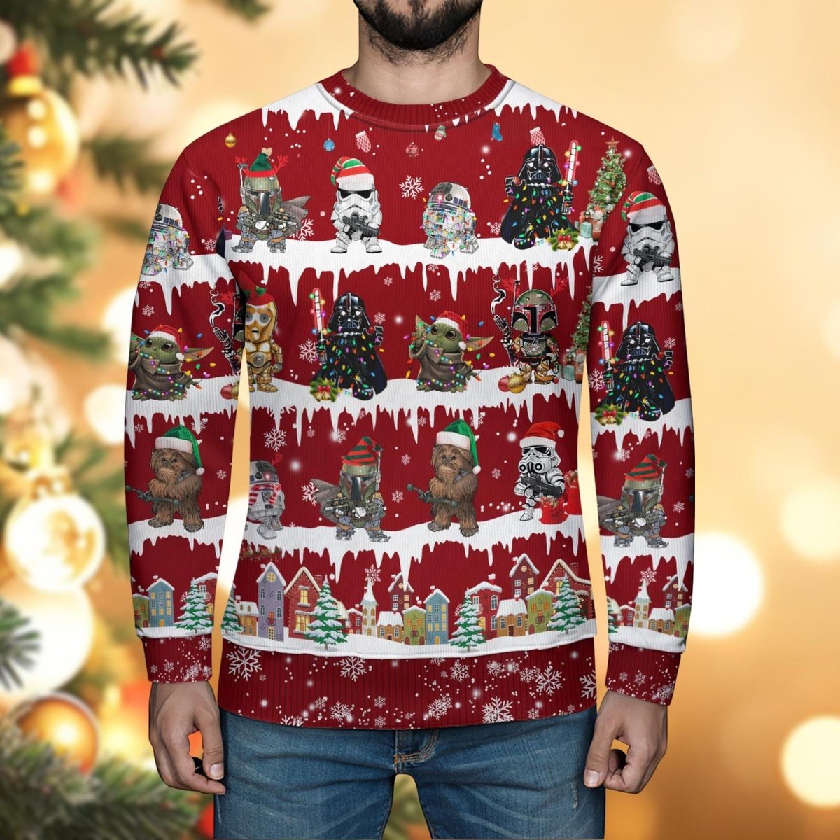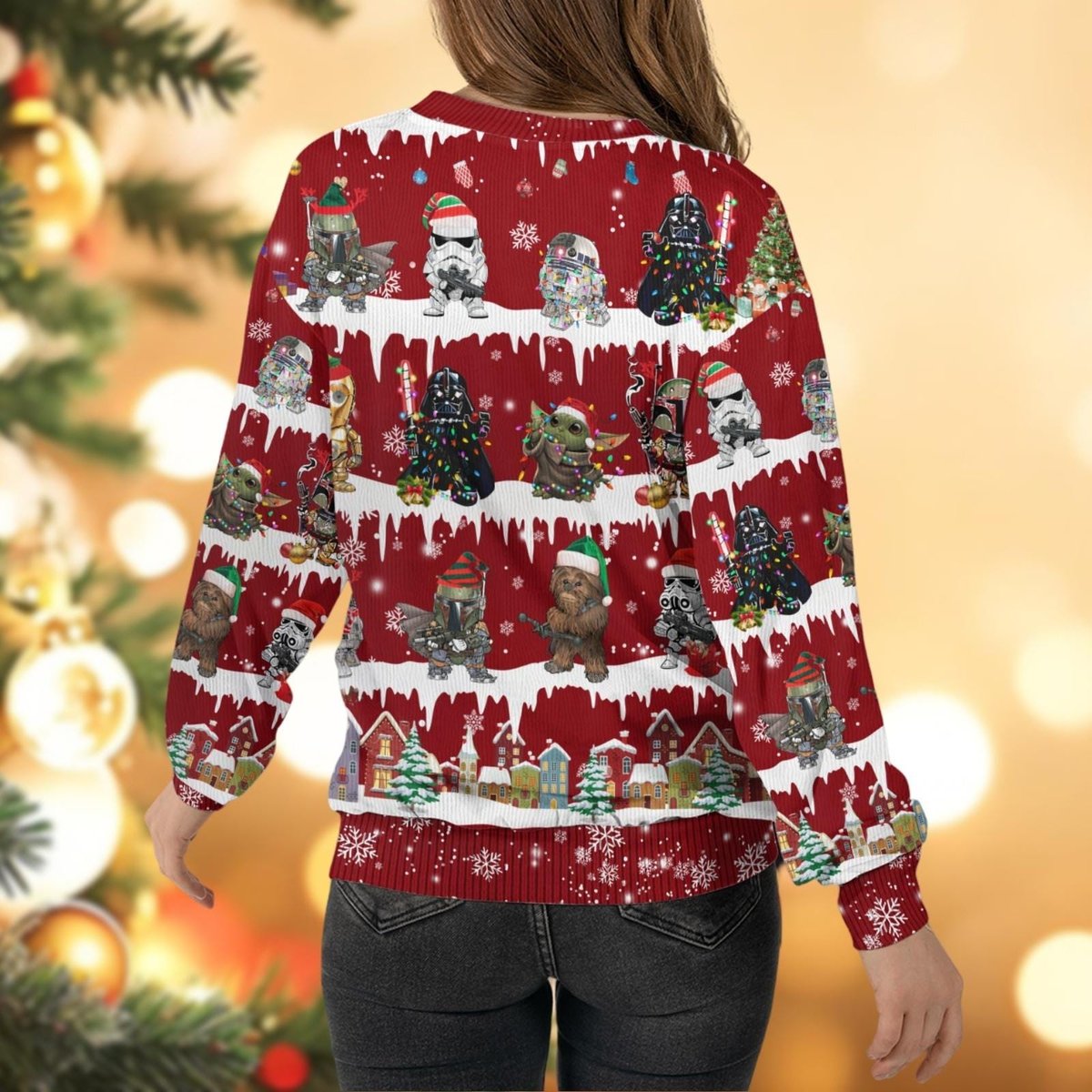 Funny Galactic Character Ugly Christmas Sweater Red Holiday Gift Pullover