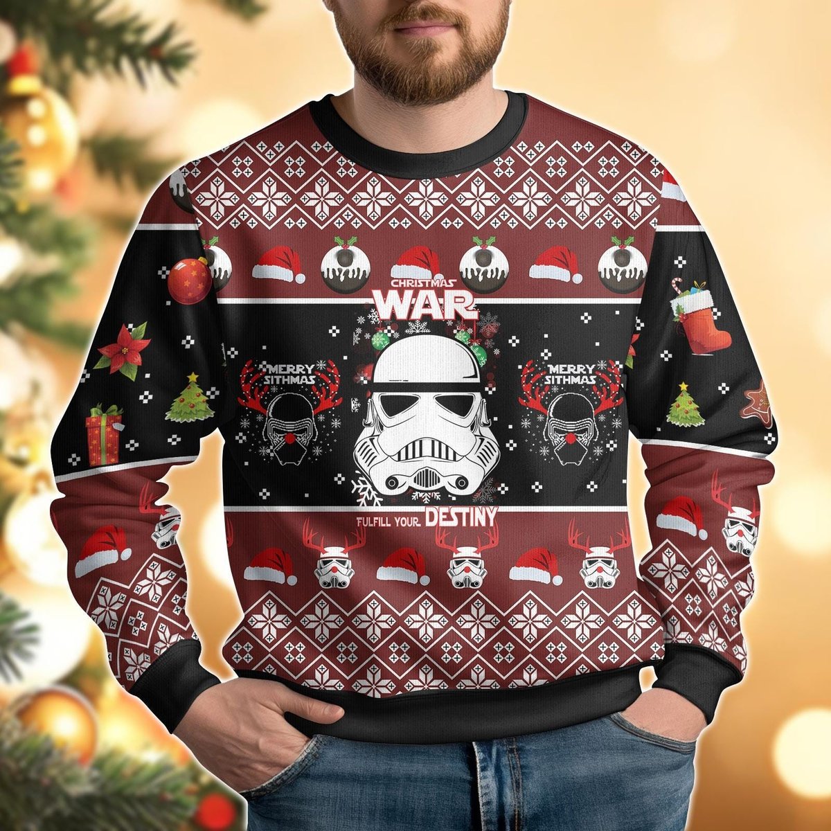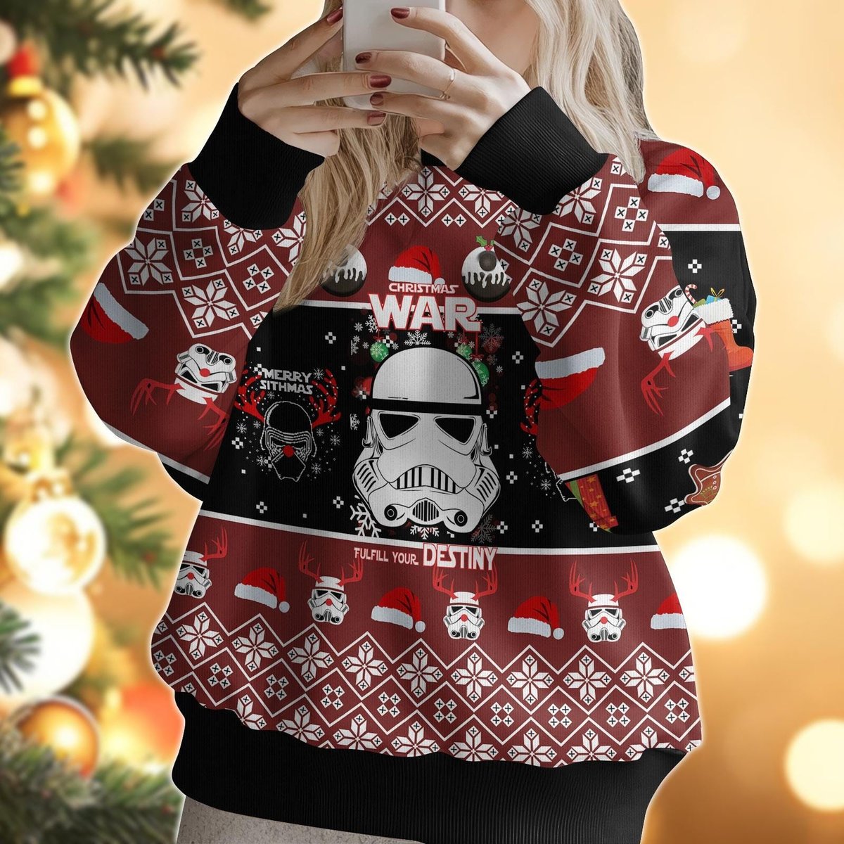 Funny Storm Trooper Christmas War Ugly Sweater Black Red Holiday Pullover