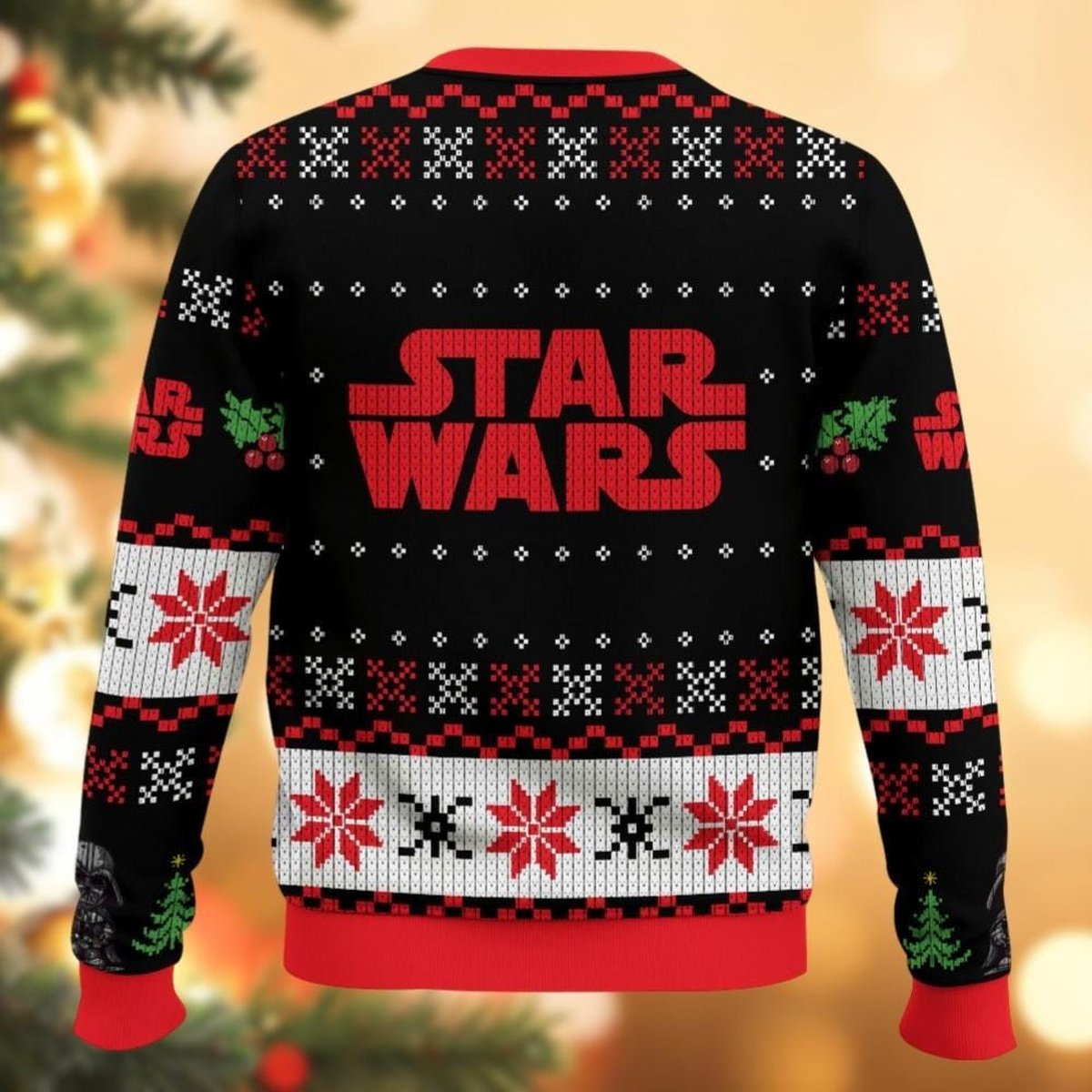 Ho Ho Ho Darth Helmet Ugly Christmas Sweater Black Red Funny Holiday Pullover