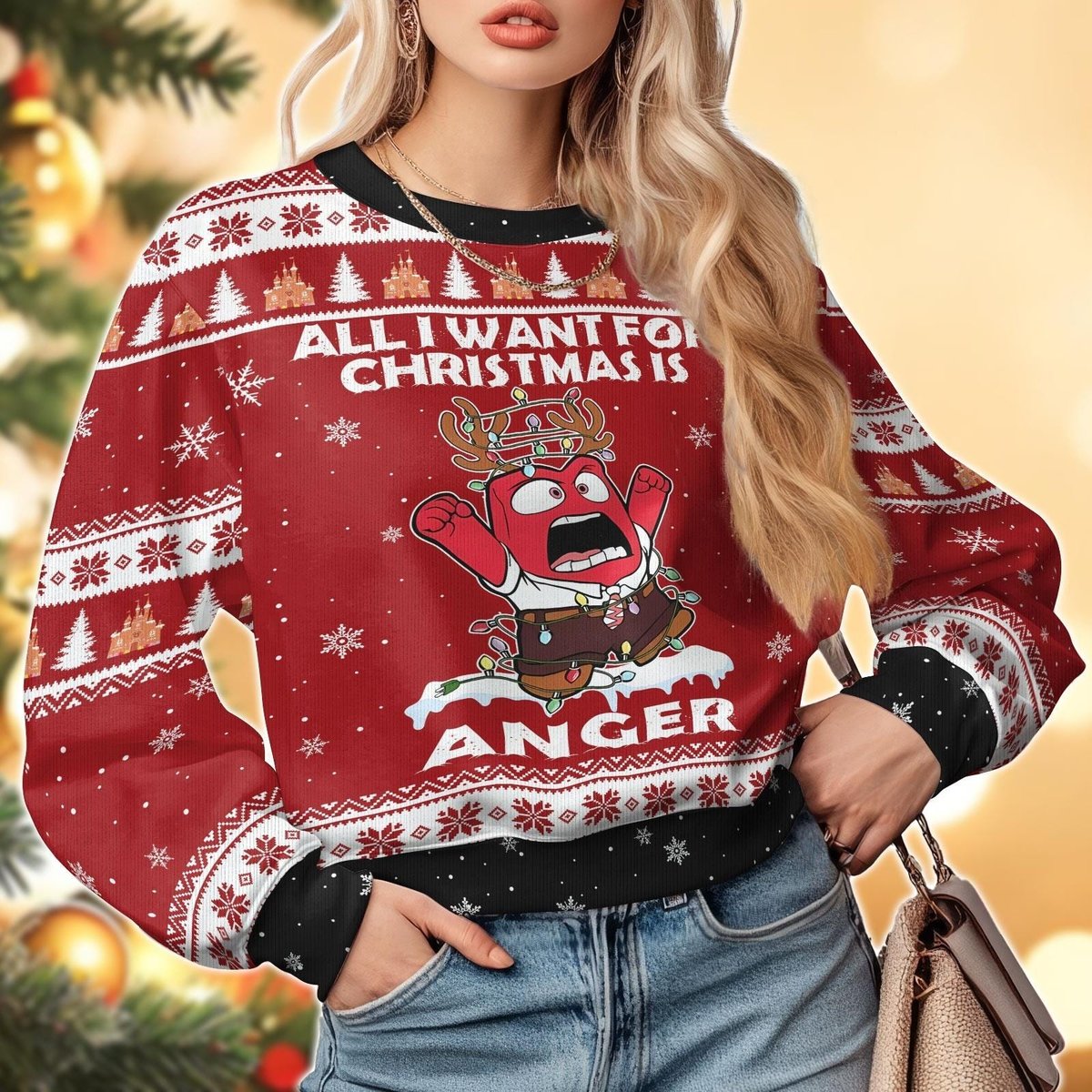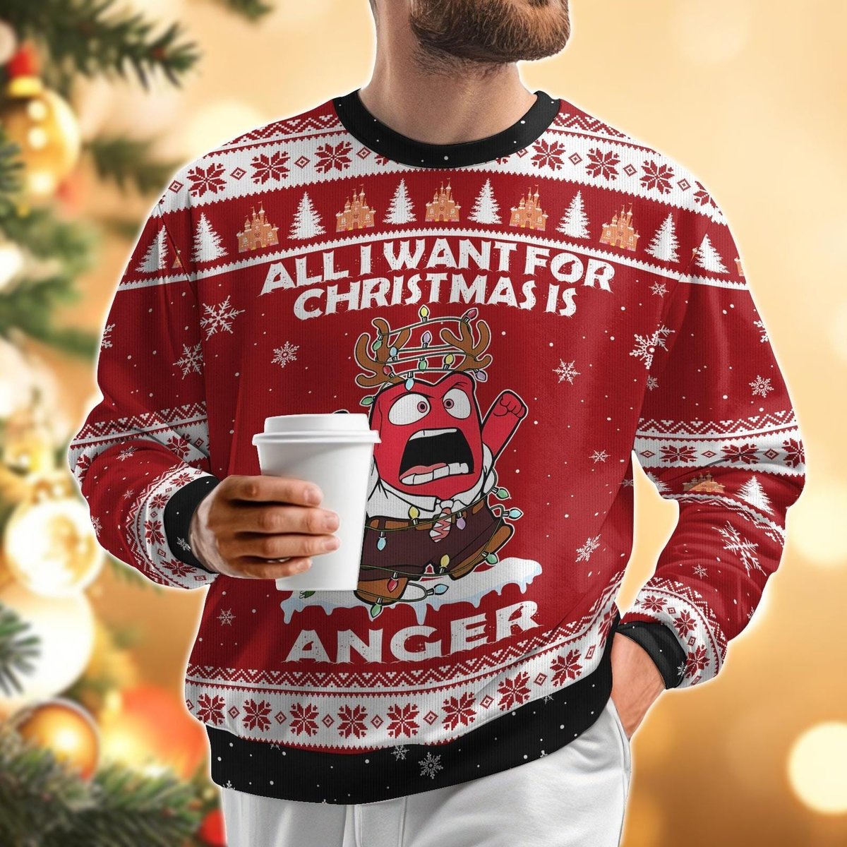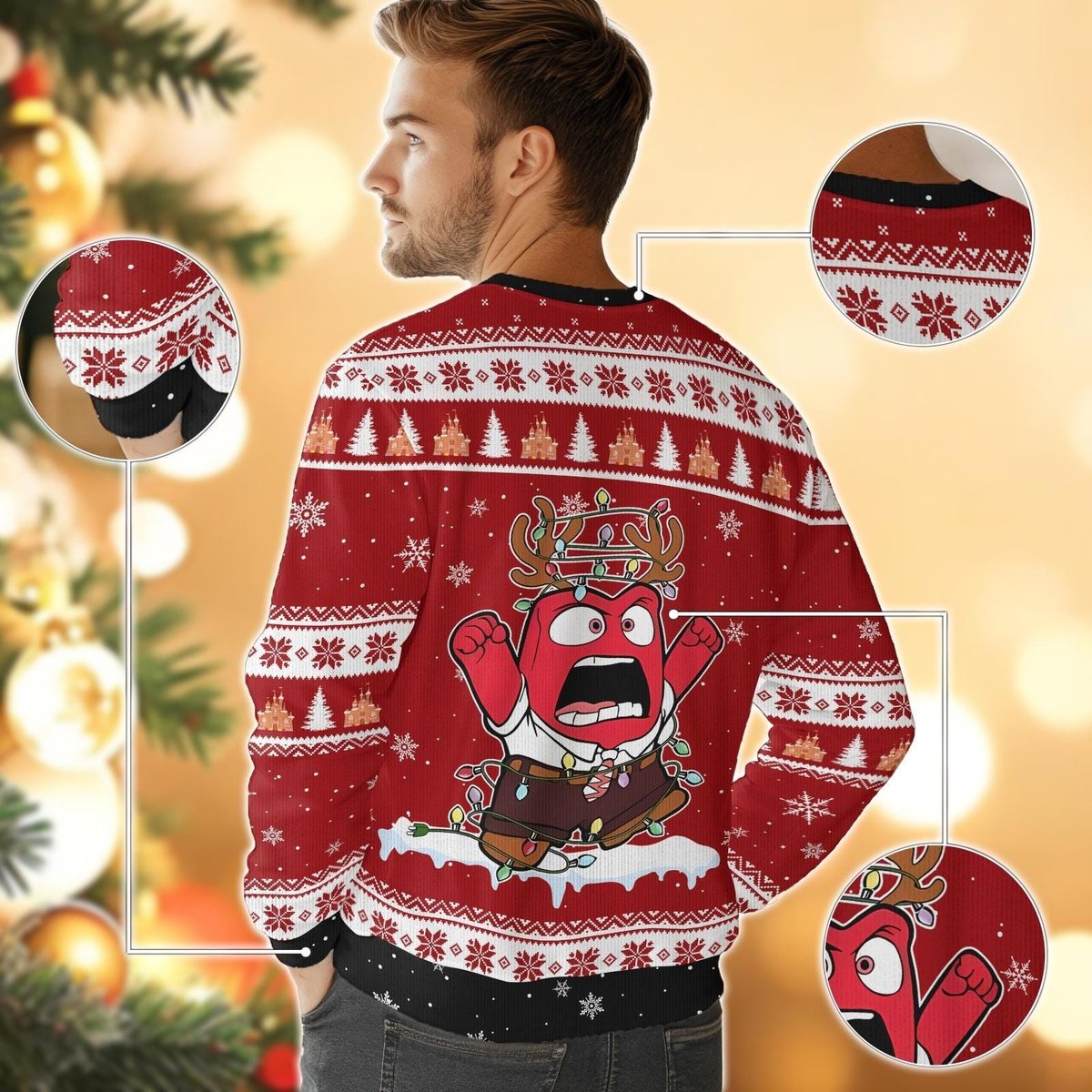 Inside Out Anger Christmas Red Ugly Sweater Holiday Lights & Snow Knit Jumper