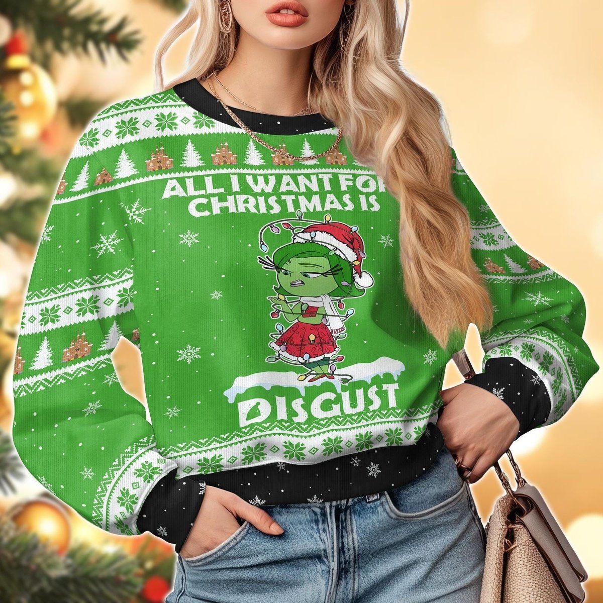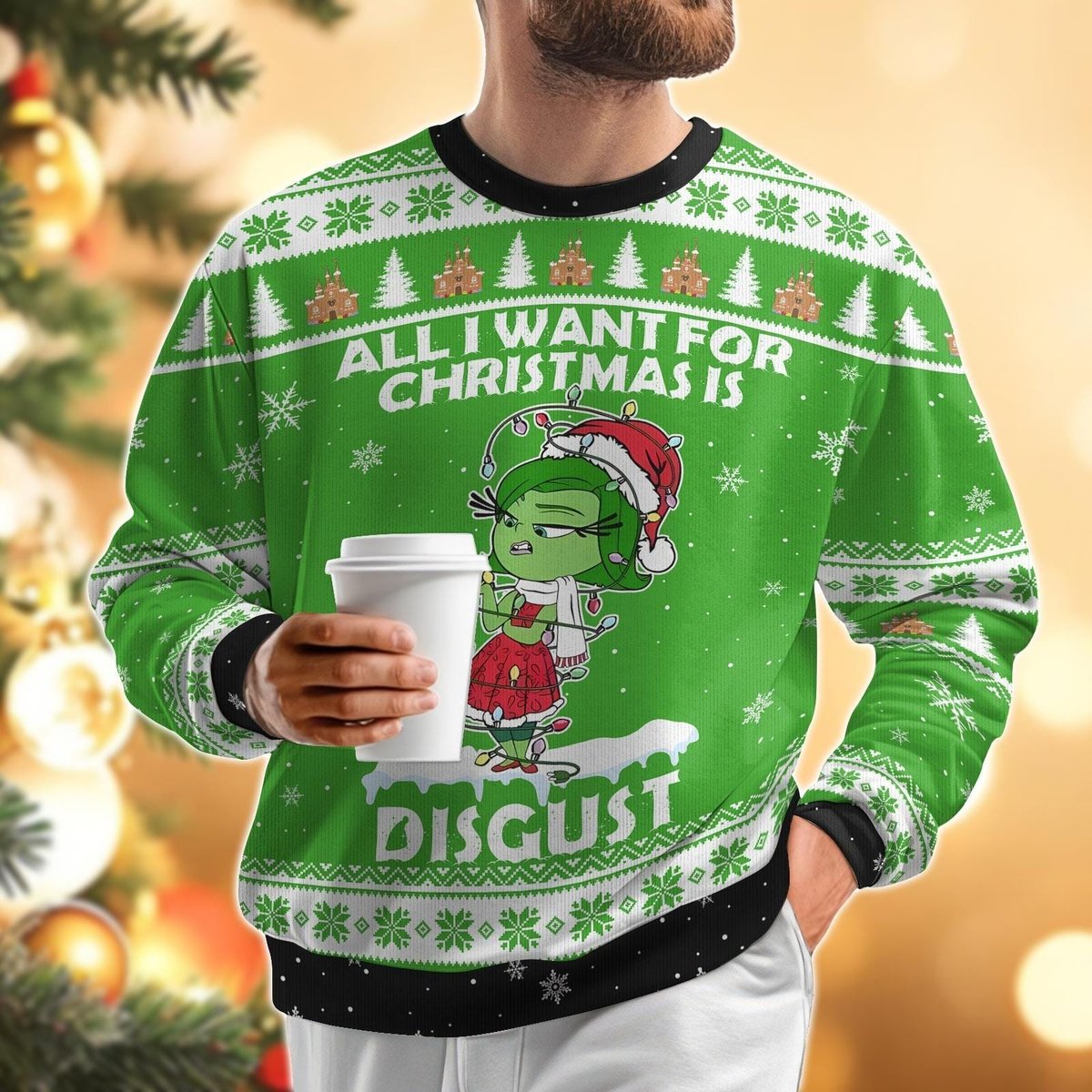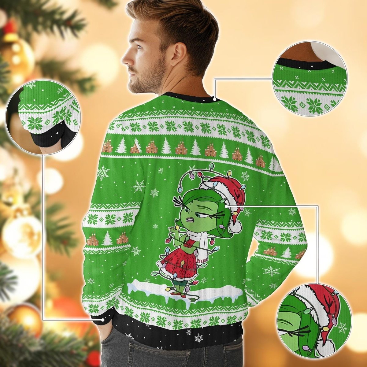 Inside Out Disgust Christmas Green Ugly Sweater Holiday Lights Character Knit Jumper