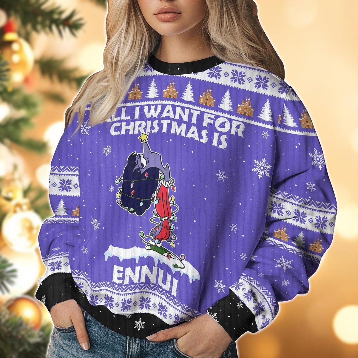 Inside Out Ennui Purple Ugly Christmas Sweater Funny Holiday Winter Pullover