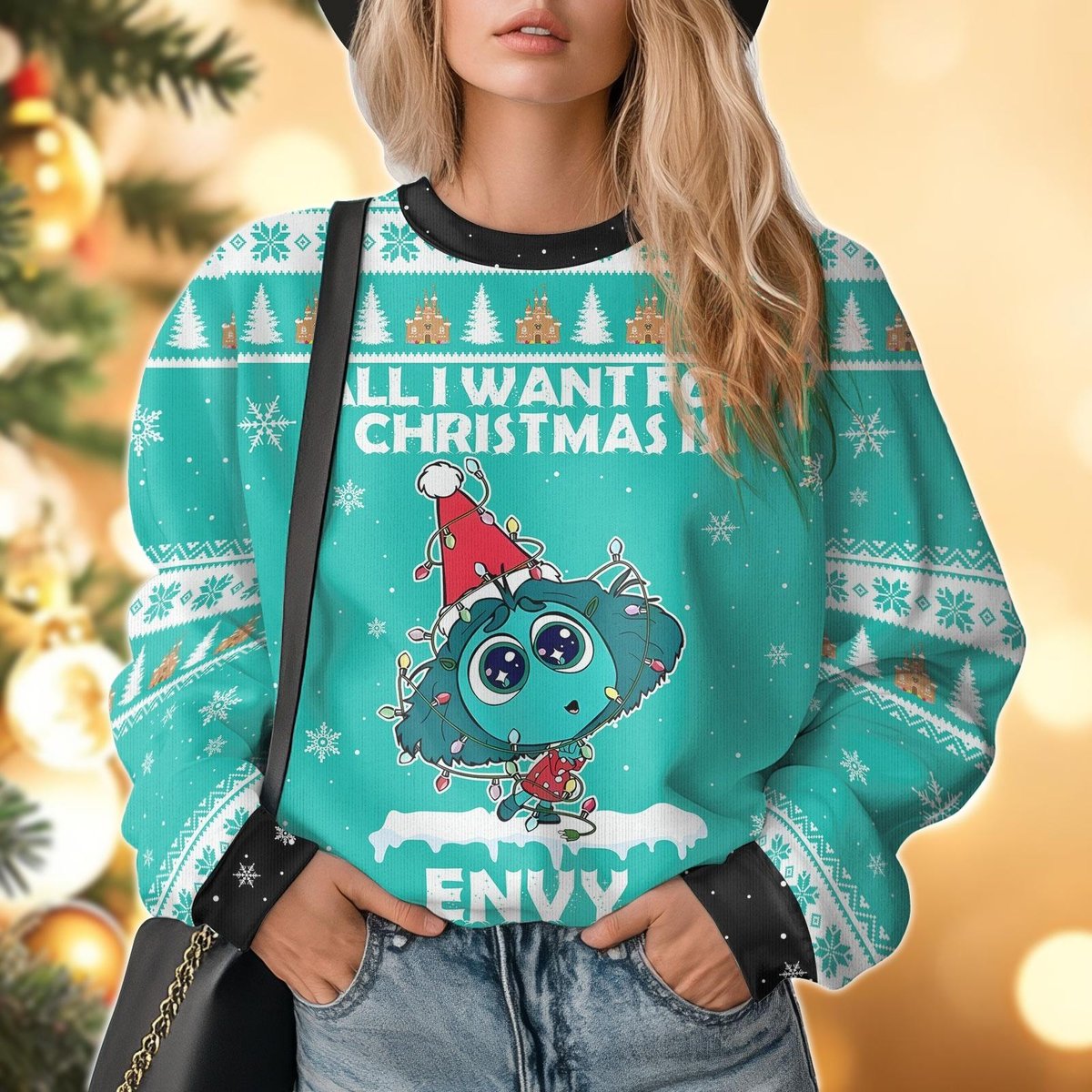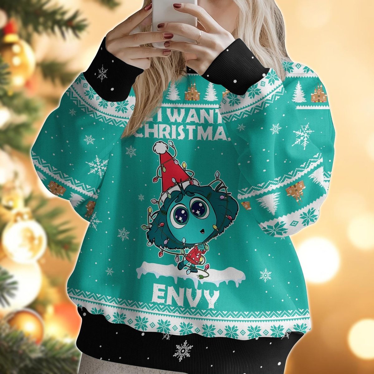 Inside Out Envy Green Ugly Christmas Sweater Cute Holiday Pullover Gift Idea