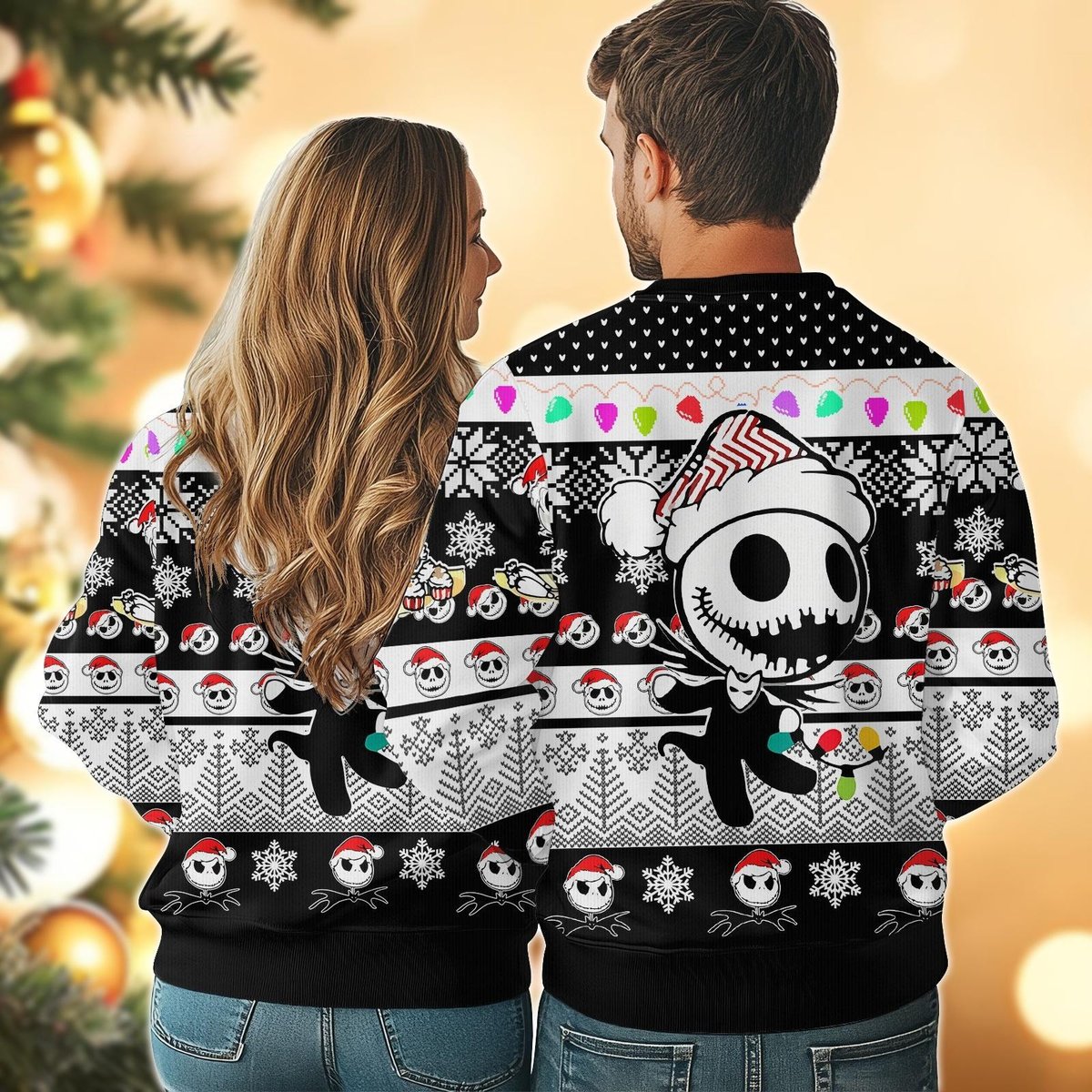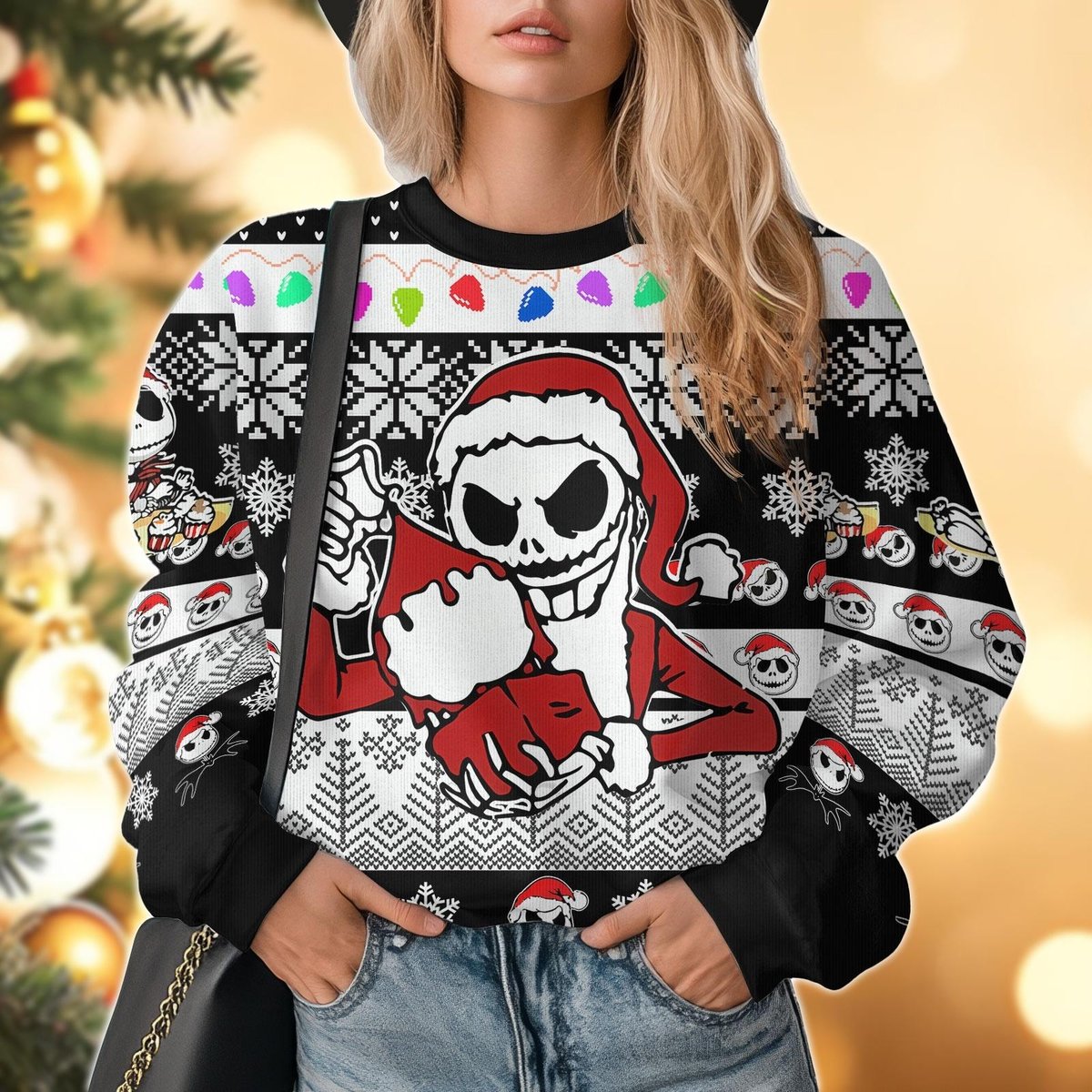 Jack Skellington Santa Lights Black Ugly Christmas Sweater Funny Holiday Pattern Knit Jumper