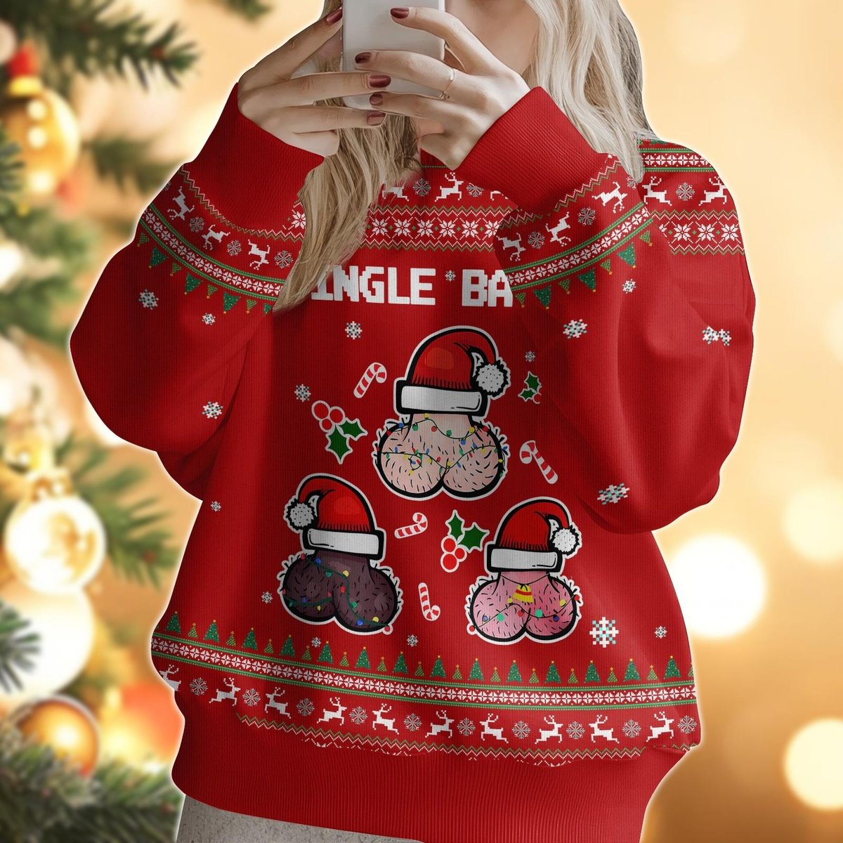 Jingle Balls Christmas Red Ugly Sweater Funny Adult Humor Holiday Novelty Knit Jumper