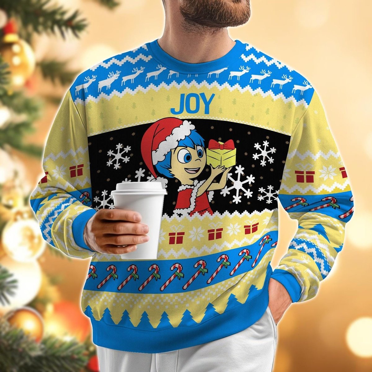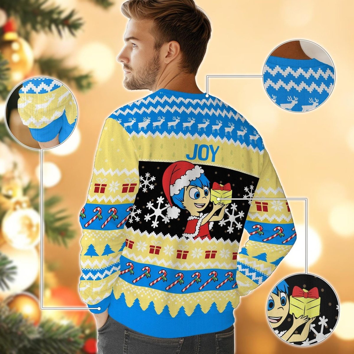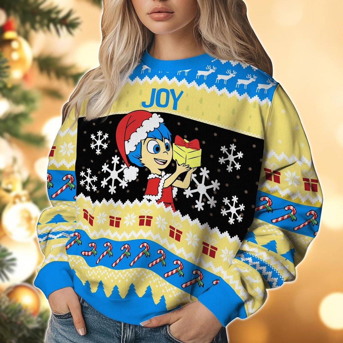 Joy Inside Out Christmas Blue Ugly Sweater Cartoon Character Gift Holiday Cozy Knit Jumper