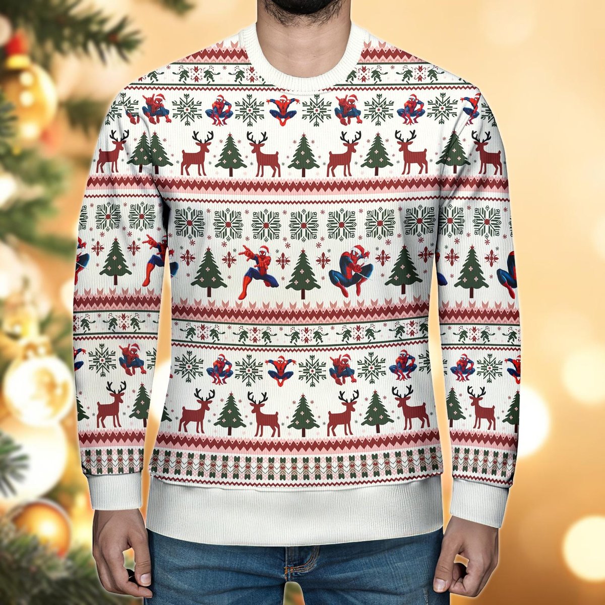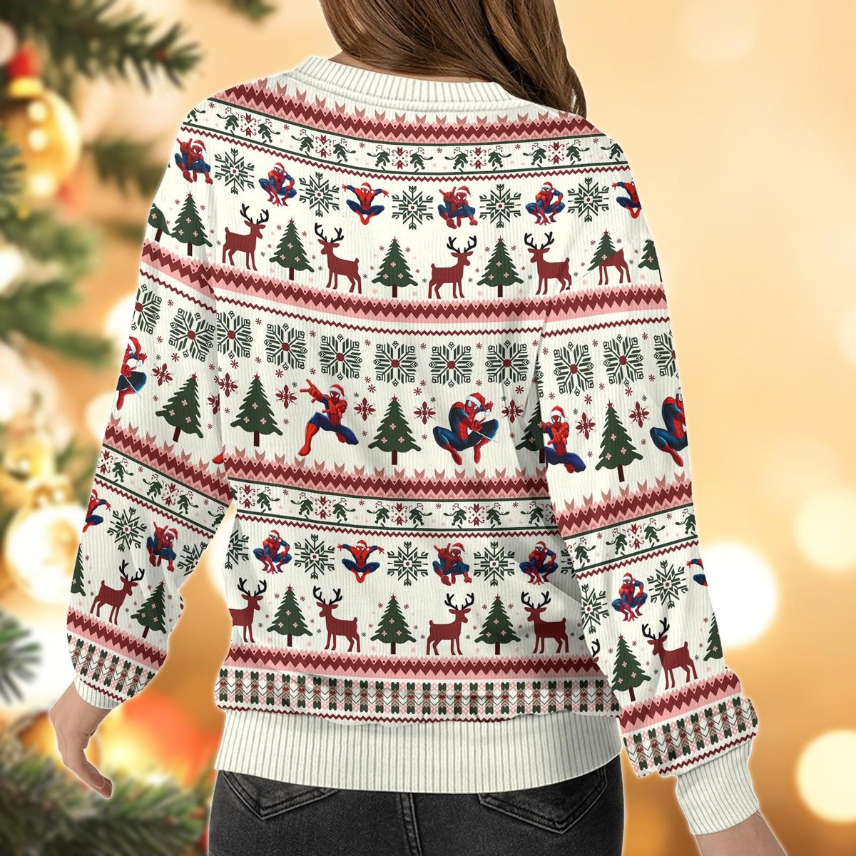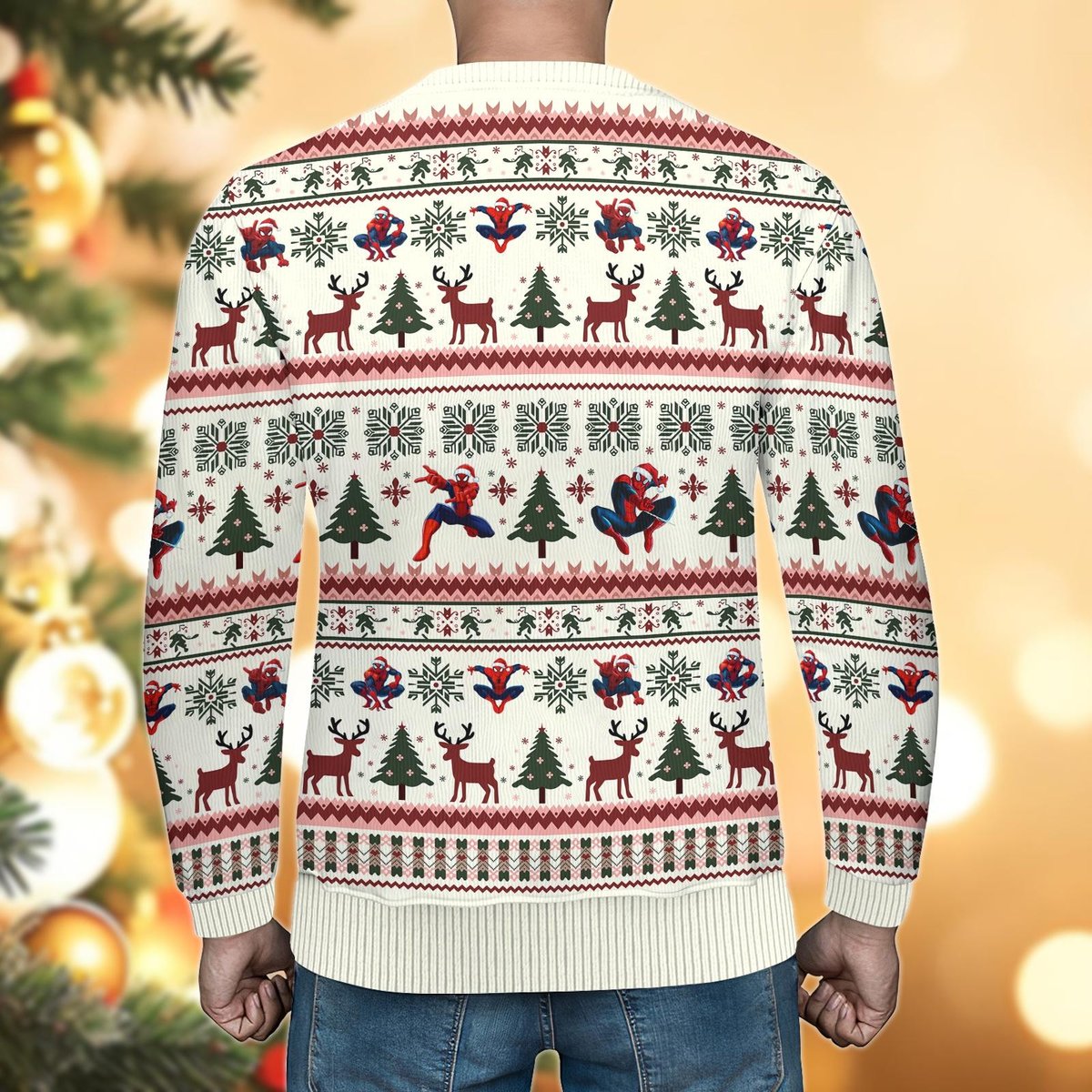 Marvel Spiderman Ugly Christmas Sweater, White Red Hero Holiday Knit Jumper