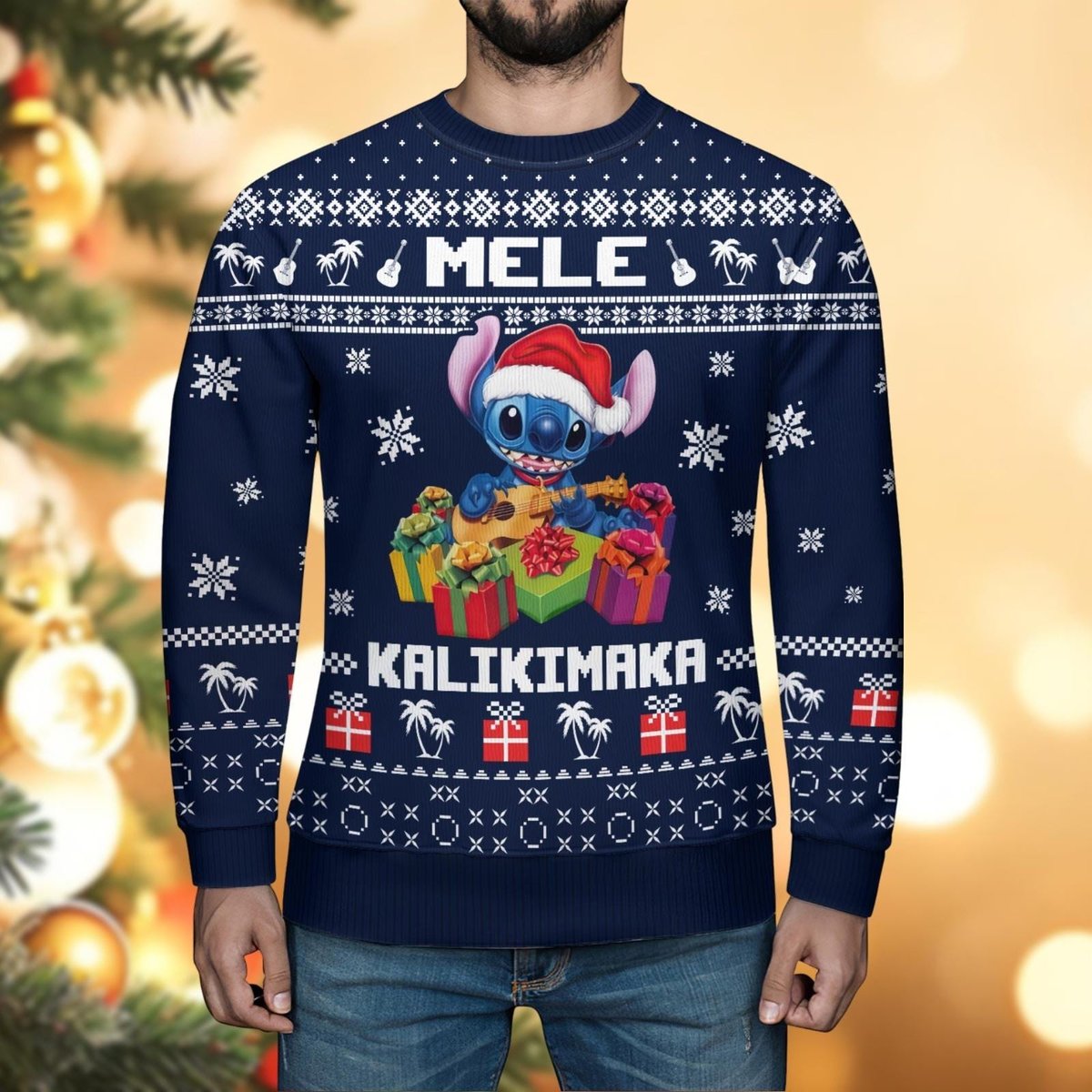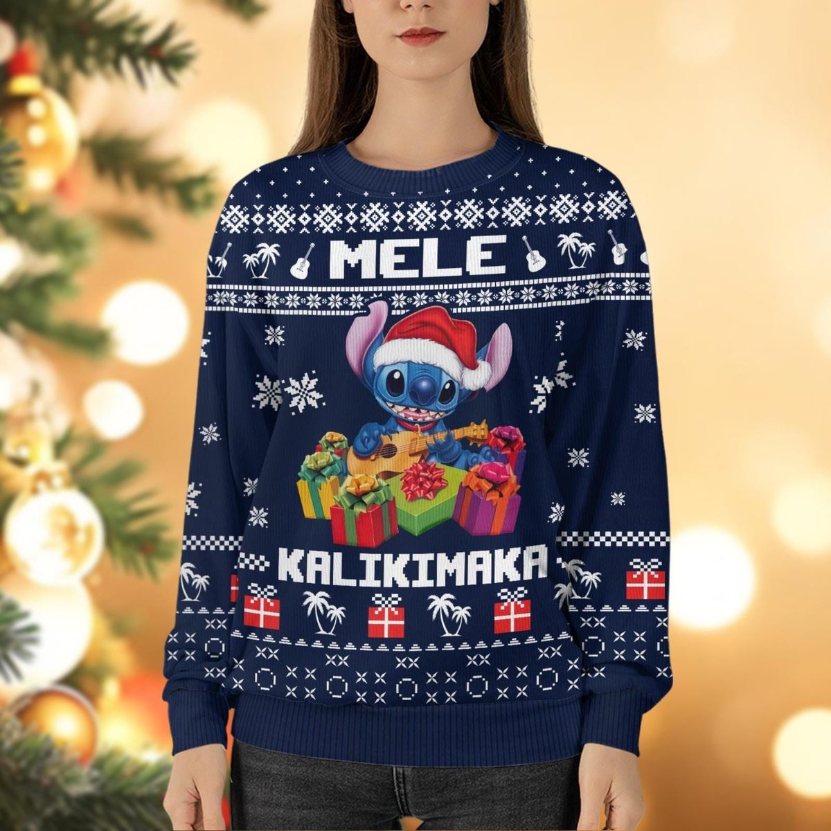 Mele Kalikimaka Stitch Gifts Blue Ugly Christmas Sweater Funny Holiday Knit Gift