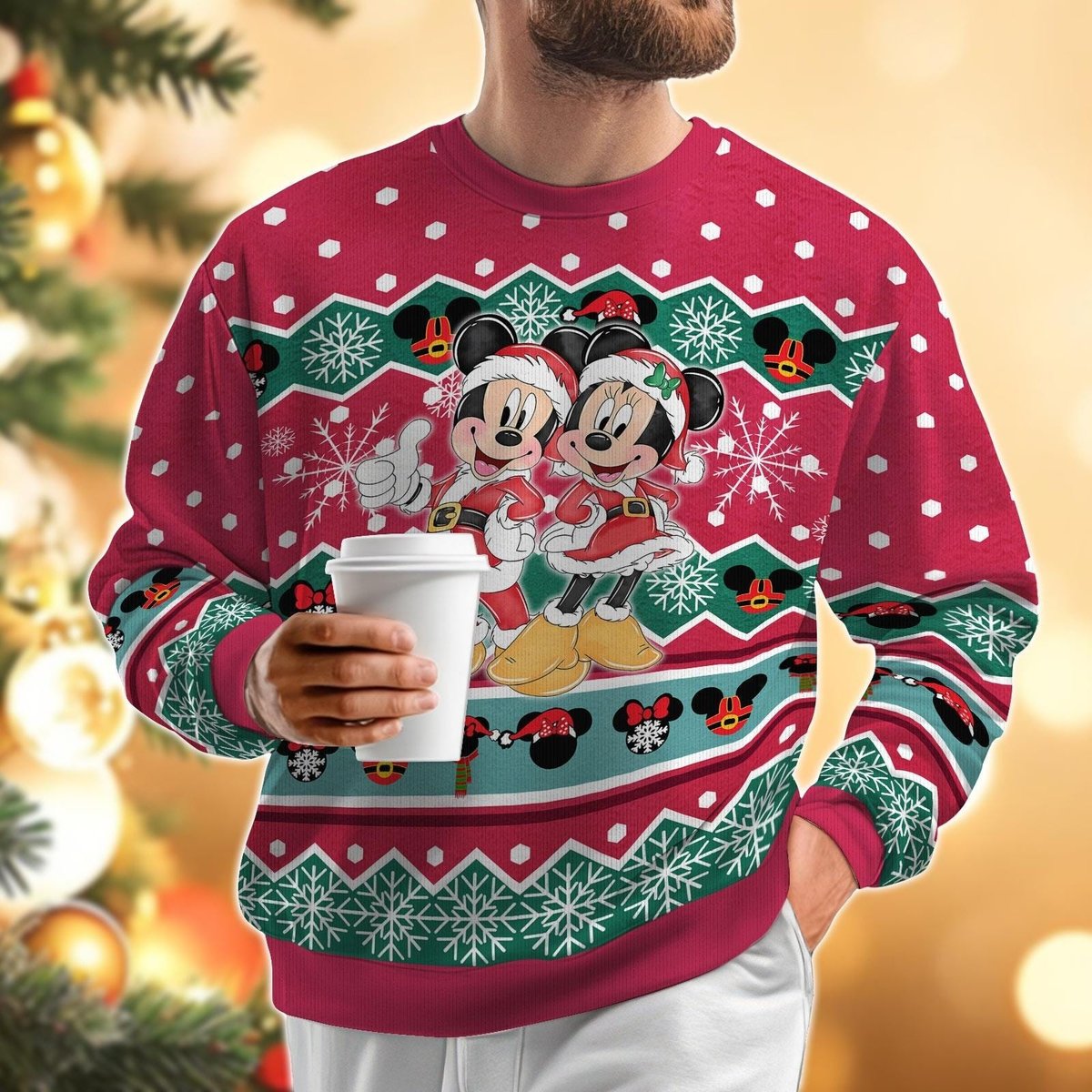 Mickey Minnie Christmas Red Ugly Sweater Festive Couple Snowflake Holiday Knit Jumper