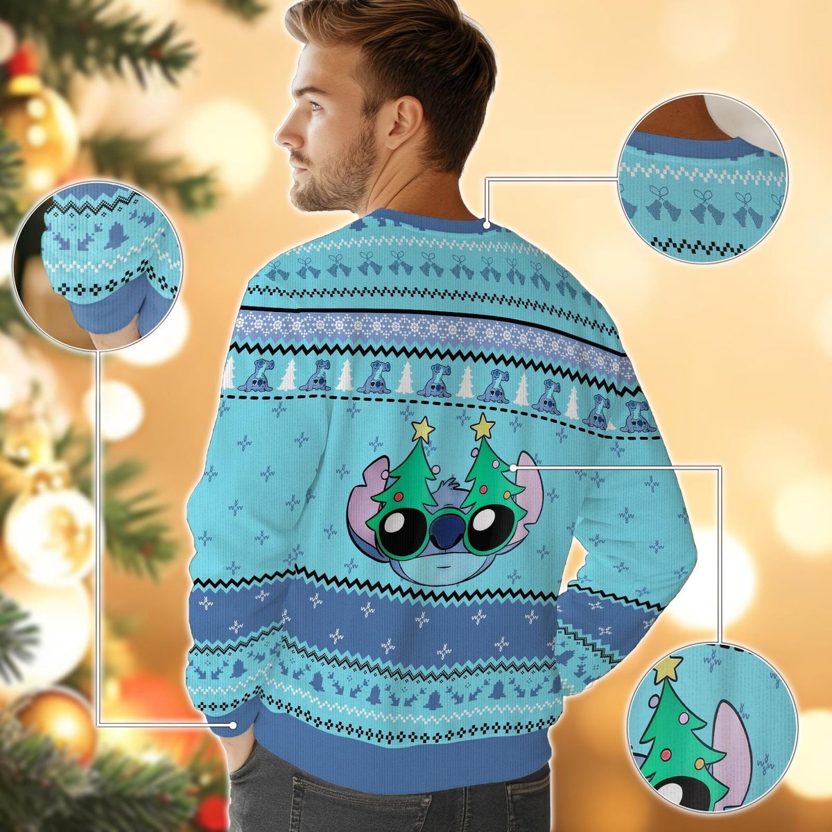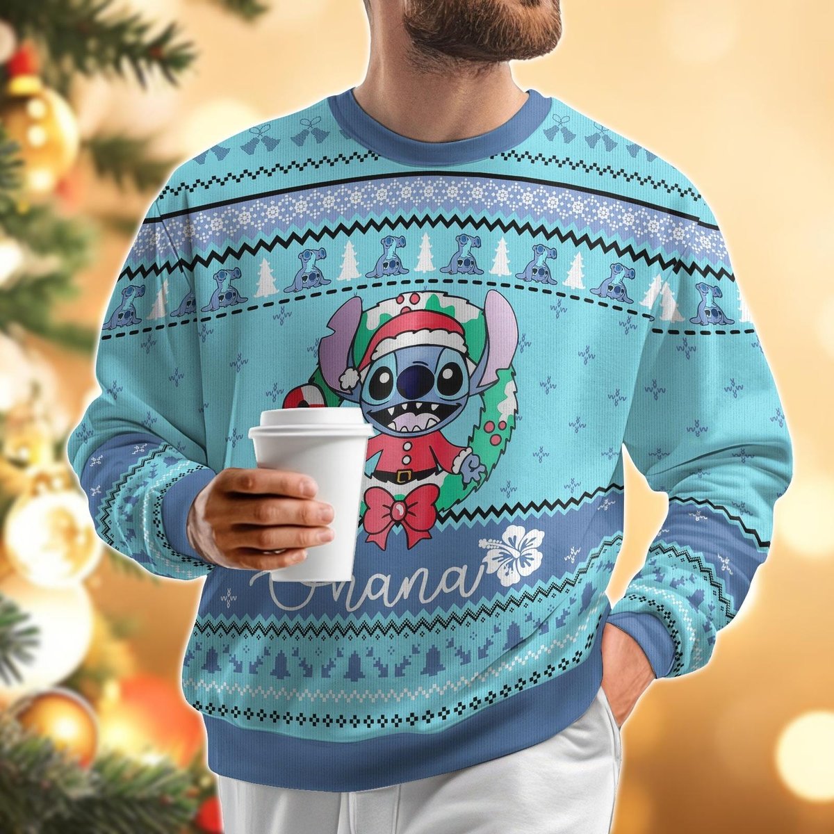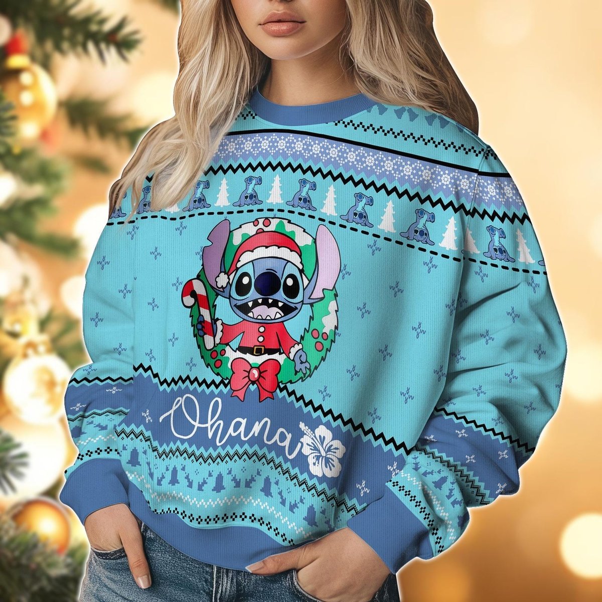 Ohana Wreath Stitch Light Blue Ugly Christmas Sweater Funny Holiday Knit Gift