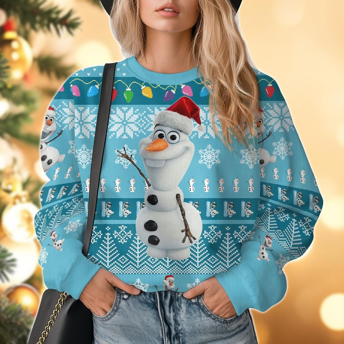 Olaf The Snowman Blue Ugly Christmas Sweater Funny Frozen Winter Knit Gift