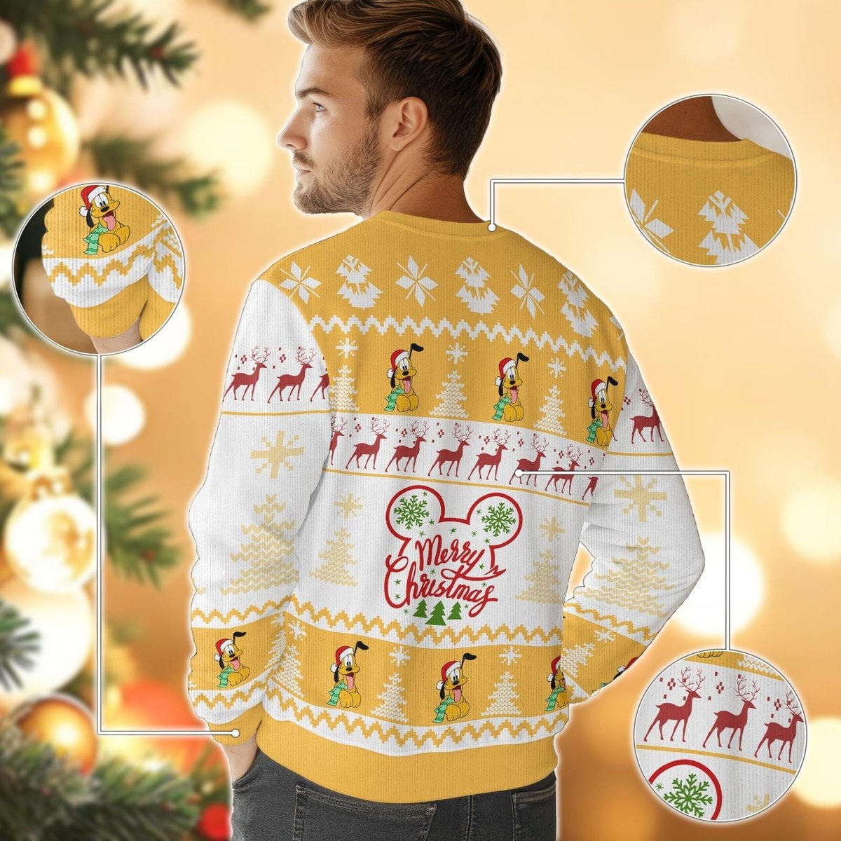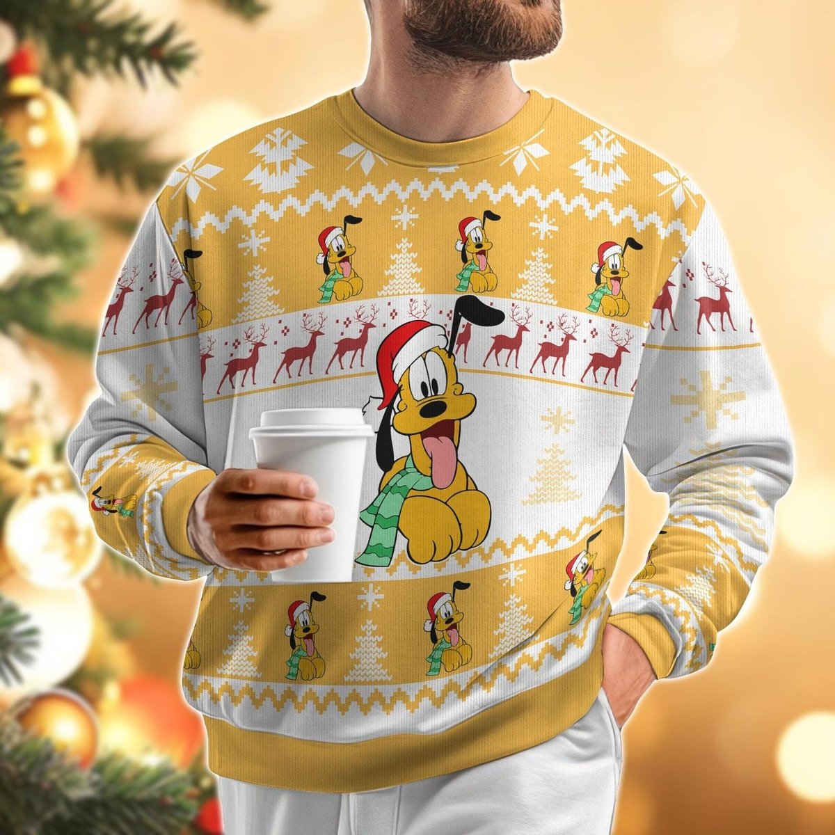 Pluto Dog Santa Hat Yellow Ugly Christmas Sweater Funny Holiday Knit Pullover