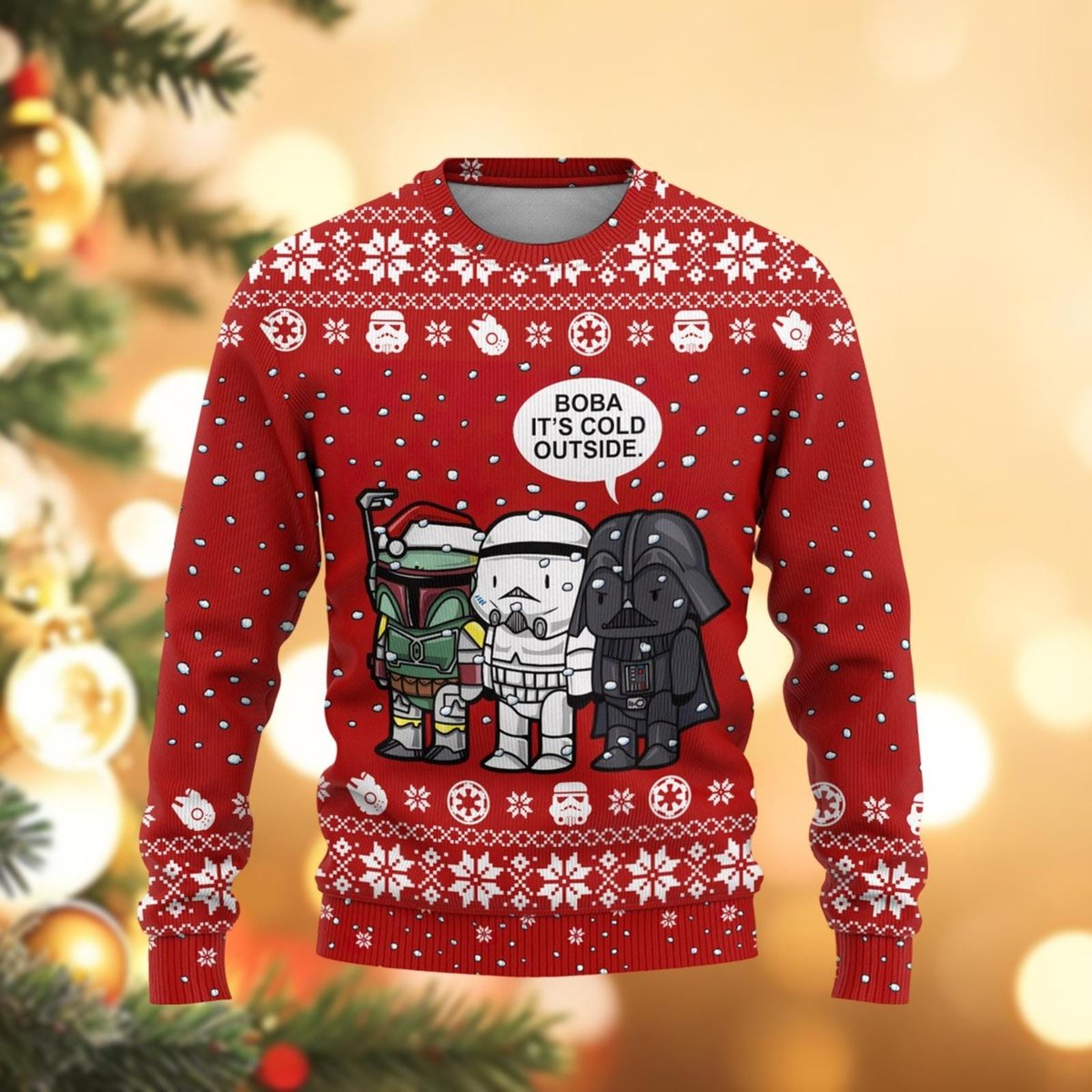 Red Boba It’s Cold Outside Funny Ugly Christmas Sweater Galactic Holiday Gift