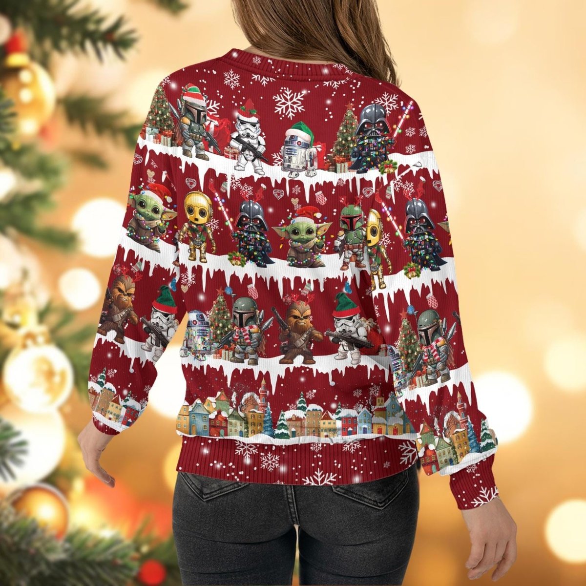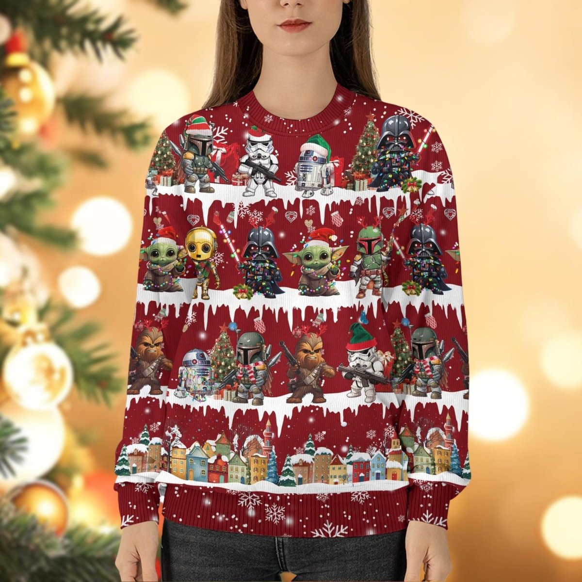 Red Galactic Character Pattern Ugly Christmas Sweater Funny Holiday Pullover
