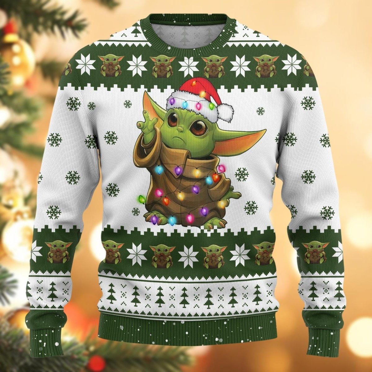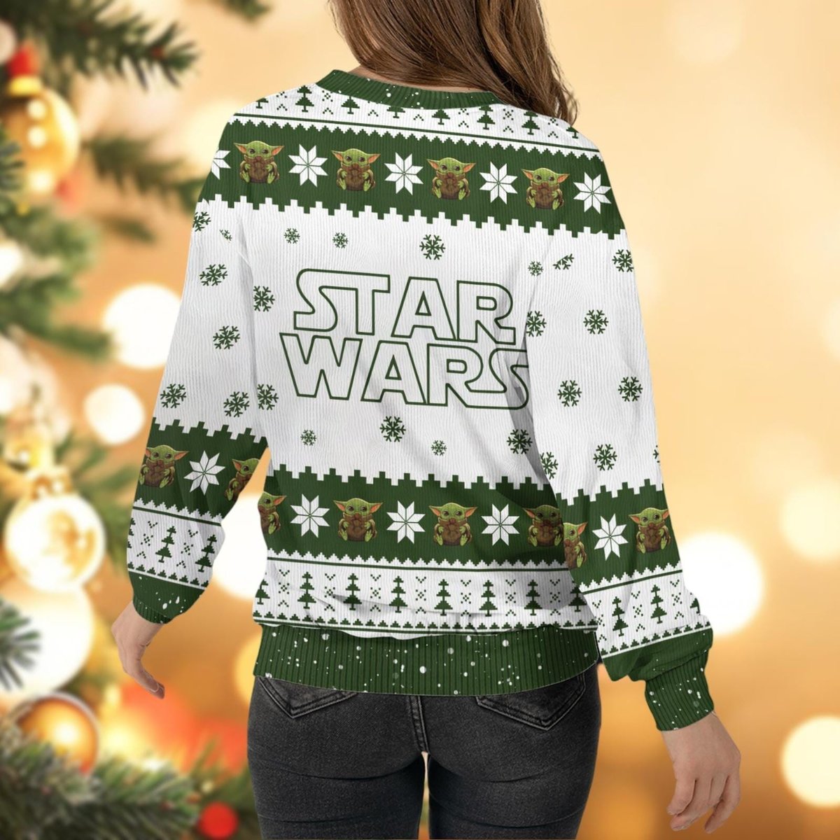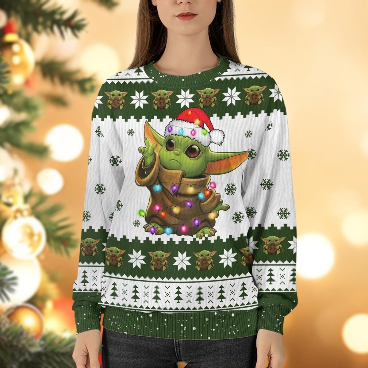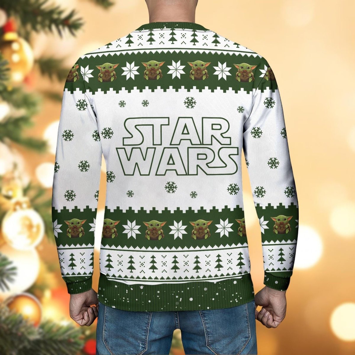 Star Wars Baby Yoda White and Green Ugly Christmas Sweater Cute Holiday Knit Jumper